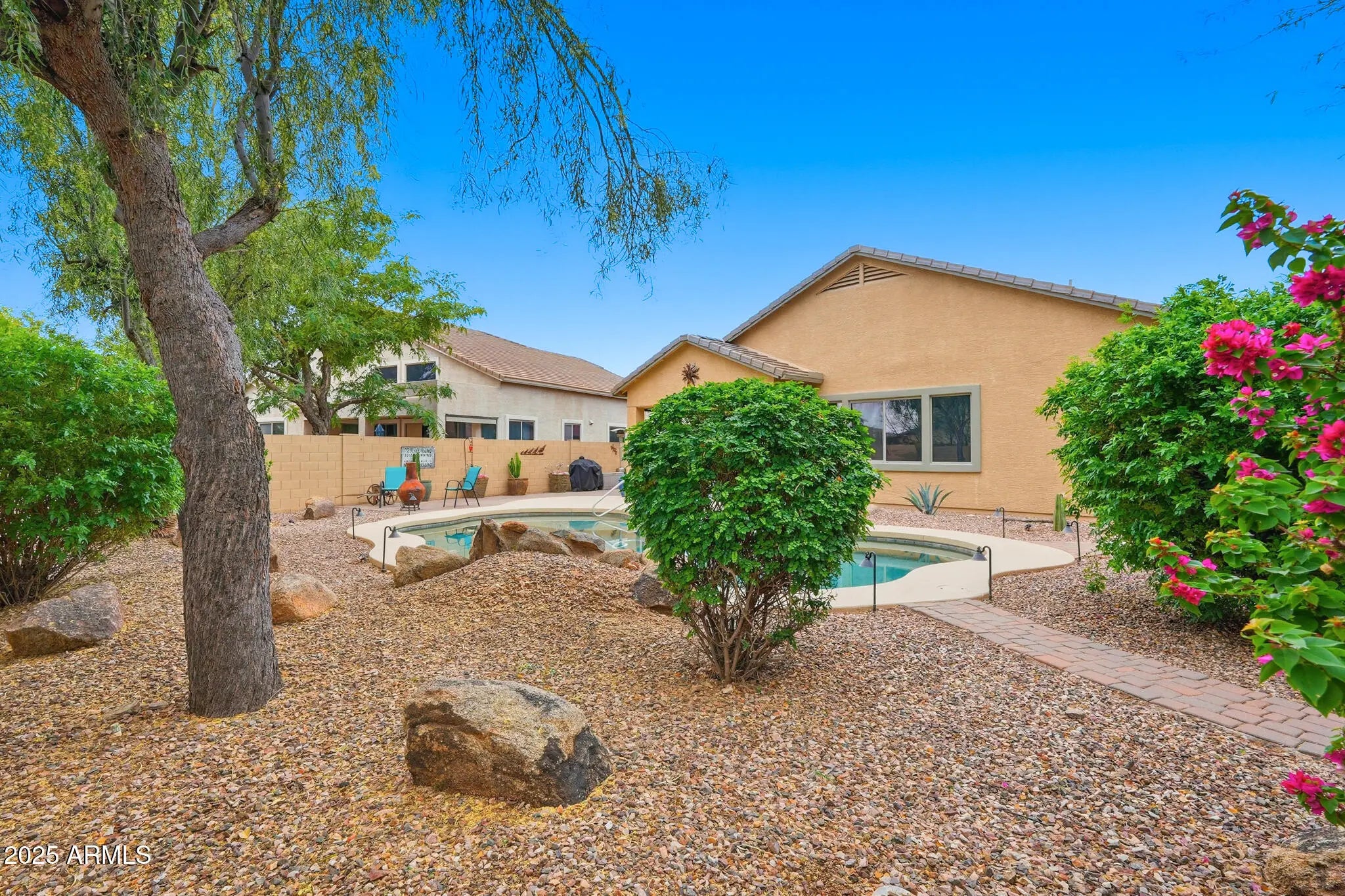 WELCOME HOME! THIS PROPERTY HAS IT ALL AND IS READY FOR NEW OWNERS. 3 CAR GARAGE WITH 220V & CABINETS, OVERSIZED LOT WITH RV GATE AND RESORT STYLE BACK YARD. THE HEATED POOL WITH TRANQUIL WATER FEATURE ALLOWS FOR ENDLESS SWIM DAYS. THE EXTENDED PATIO/PAVERS OFFERS PLENTY OF ROOM TO ENTERTAIN AND EXPERIENCE THE ARIZONA OUTDOORS. ENJOY CUSTOM LANDSCAPING WITH CITRUS TREES, ADVANCED LIGHTING FEATURES AND HIGH PRESSURE MISTING SYSTEM . INSIDE YOU'LL APPRECIATE AN OPEN FLOOR PLAN WITH A GORGEOUS KITCHEN INCLUDING GRANITE COUNTER TOPS, PULL OUT SHELVING IN THE CHERRY CABINETS, GORGEOUS HARDWOOD FLOORS AND CUSTOM UPGRADED TILE WORK. GUEST BATH INCLUDES A DOUBLE VANITY FEATURE. MASTER BATH FEATURES SEPARATE TUB AND SHOWER AND LARGE WALK IN CLOSET. ADDL' BEDROOMS ALSO FEATURE WALK IN AND SPACIOUS CLOSETS. DONT MISS THIS AMAZING OPPORTUNITY FOR HOME OWNERSHIP IN ENTRADA DEL ORO