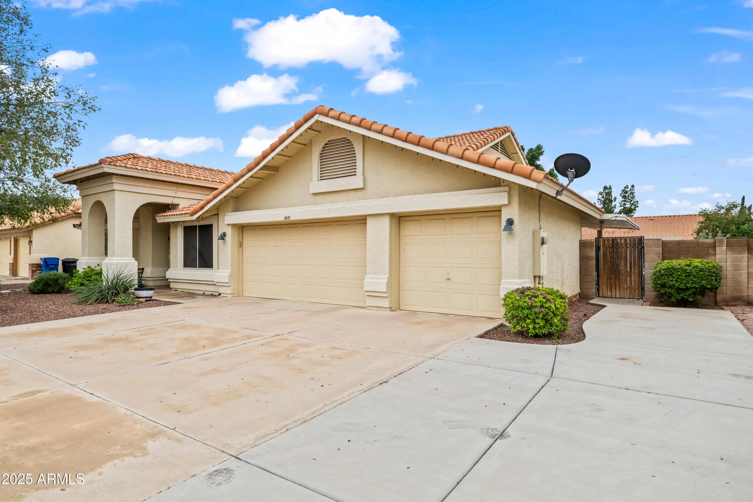 No HOA with 3 car garage + expanded slab parking! Whole home freshly painted! Updated kitchen with an open concept floorplan. Features white, soft-close cabinets, granite counters & a large pantry. A covered hot AND cold spa with a lap swim setting provides year-round recreation! Lush, relaxing backyard features a large, covered patio, expansive pavers, newer shed, and built-in entertaining area that can be fitted with a grill. Vaulted ceilings and a fireplace make the home feel spacious and warm. Master and 2nd bedroom feature walk-in closets. Master suite bathroom has a dual sink vanity plus a newly remodeled walk-in shower! Front rooms can be formal or converted to home office / flex space. Near Stapley pool, a 10 min drive to Mesa Riverview!