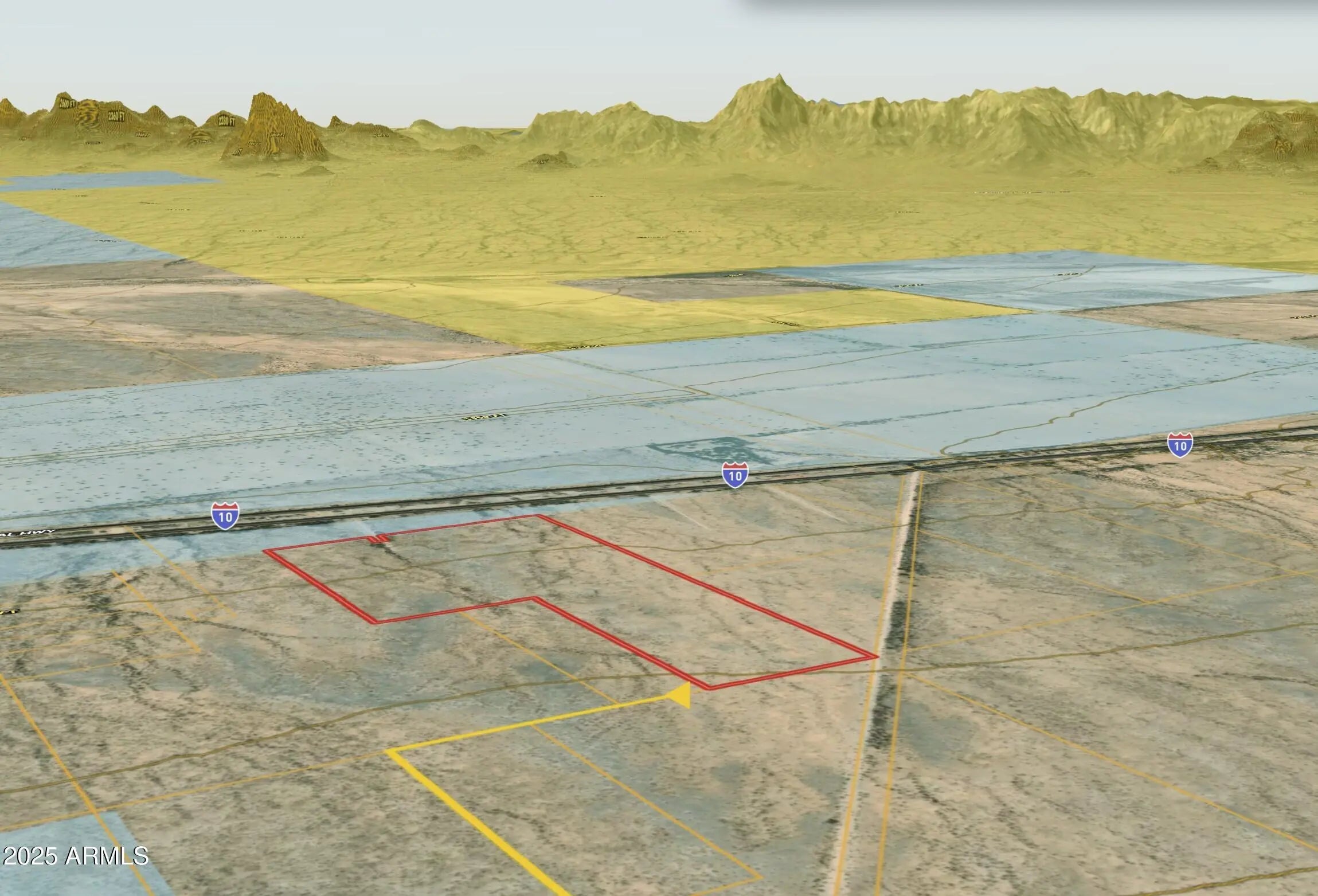 Positioned at the strategic intersection of I-10 and Avenue 75E in Centennial Flats, this expansive 60-acre parcel offers exceptional highway frontage and unmatched access—critical for large-scale land banking or master-planned development. The predominantly flat terrain provides an ideal blank slate to envision residential, commercial, or mixed-use projects aligned with regional growth. Currently zoned agricultural, the property presents a unique opportunity to engage early in the land entitlements process and shape future use, leveraging its direct adjacency to a major transportation corridor. With utilities limited today, savvy developers can capitalize on this blank canvas to design infrastructure from the ground up while benefiting from competitive pricing in a rapidly developing market. Whether your strategy is long-term land banking or initiating phased development, this tract's location next to I-10 ensures market relevance, growth potential, and logistical convenience. Investigate zoning options and entitlement pathways to unlock the full value of this rare Centennial Flats offering.