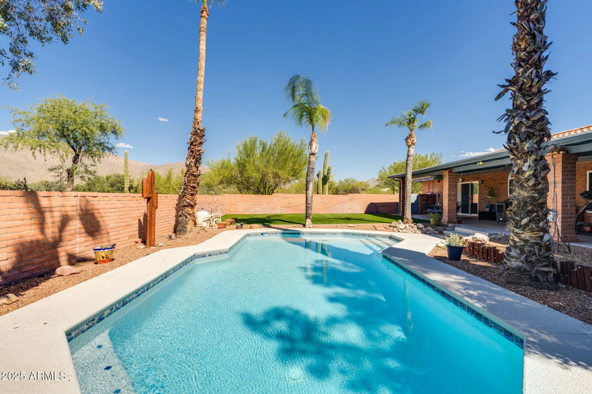 Priced below appraised value. Tanque Verde Valley home with mountain views and modern updates. This home offers the perfect blend of modern comfort and timeless charm. Situated on just over an acre with mountain views and expansive night skies, this home is a peaceful desert retreat that doesn't compromise on convenience or style. Thoughtfully designed, the home features 3 generously sized bedrooms and 2.5 well-appointed bathrooms, this home welcomes you. The vaulted ceilings and flowing floor plan create a sense of space and ease throughout. The living, family, and dining areas are thoughtfully designed for everyday living and entertaining, offering both flexibility and versatility. The inviting family and dining space features a cozy wood-burning fireplace and views of the backyard oasis, creating a warm and welcoming atmosphere for gatherings both large and small. The spacious galley-style kitchen is both functional and stylish, complete with granite countertops, stainless steel appliances, and ample cabinetry- perfect for any culinary enthusiast. The primary suite offers a tranquil retreat with a large footprint and an updated ensuite bathroom, featuring an oversized tile shower and modern finishes. All bedrooms are comfortably sized, some with walk-in closets providing plenty of storage. Step outside into your private backyard sanctuary, where you'll find a sparkling resurfaced pool with new tile, a relaxing above-ground hot tub, and lush new turf with an upgraded irrigation system- all surrounded by a fully fenced yard for privacy. This exceptional property offers unparalleled access to a wide array of outdoor recreation. Whether you're an avid hiker, cyclist, or equestrian, the surrounding area provides endless opportunities to explore and enjoy the natural beauty of the desert landscape. Just a short drive away, Mount Lemmon offers a cool escape during the summer months and transforms into a winter retreat with opportunities for skiing and snow play. Experience the best of Southern Arizona living with a perfect balance of adventure, tranquility and convenience.
