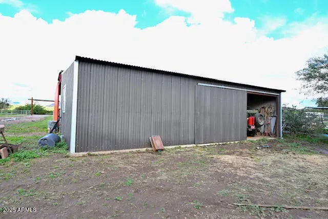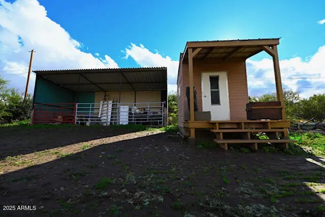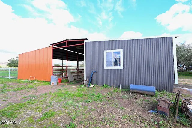 Perfect purchase for renovation or equestrian living! This fully fenced 1.25-acre horse property offers endless potential. Featuring horse stables with irrigated turnout, a tack room, workshop, hay barn, storage shed, and a covered private well with an electric auto-control system with variable volume pump, it's ready to support your rural lifestyle. The property includes a home in need of repair along with a separate trailer, giving buyers flexibility for future use. With plenty of space and infrastructure already in place, this is an ideal opportunity for those looking to create their dream ranch or invest in a renovation project. Seller is offering the property as-is.