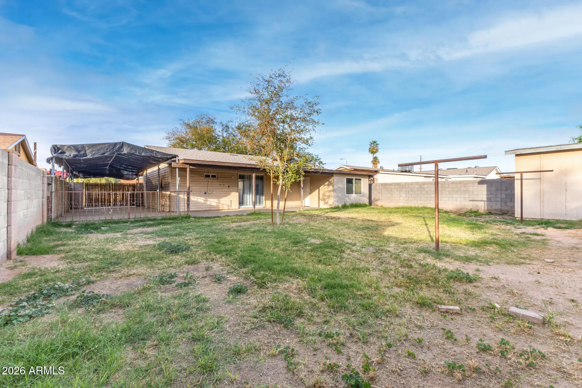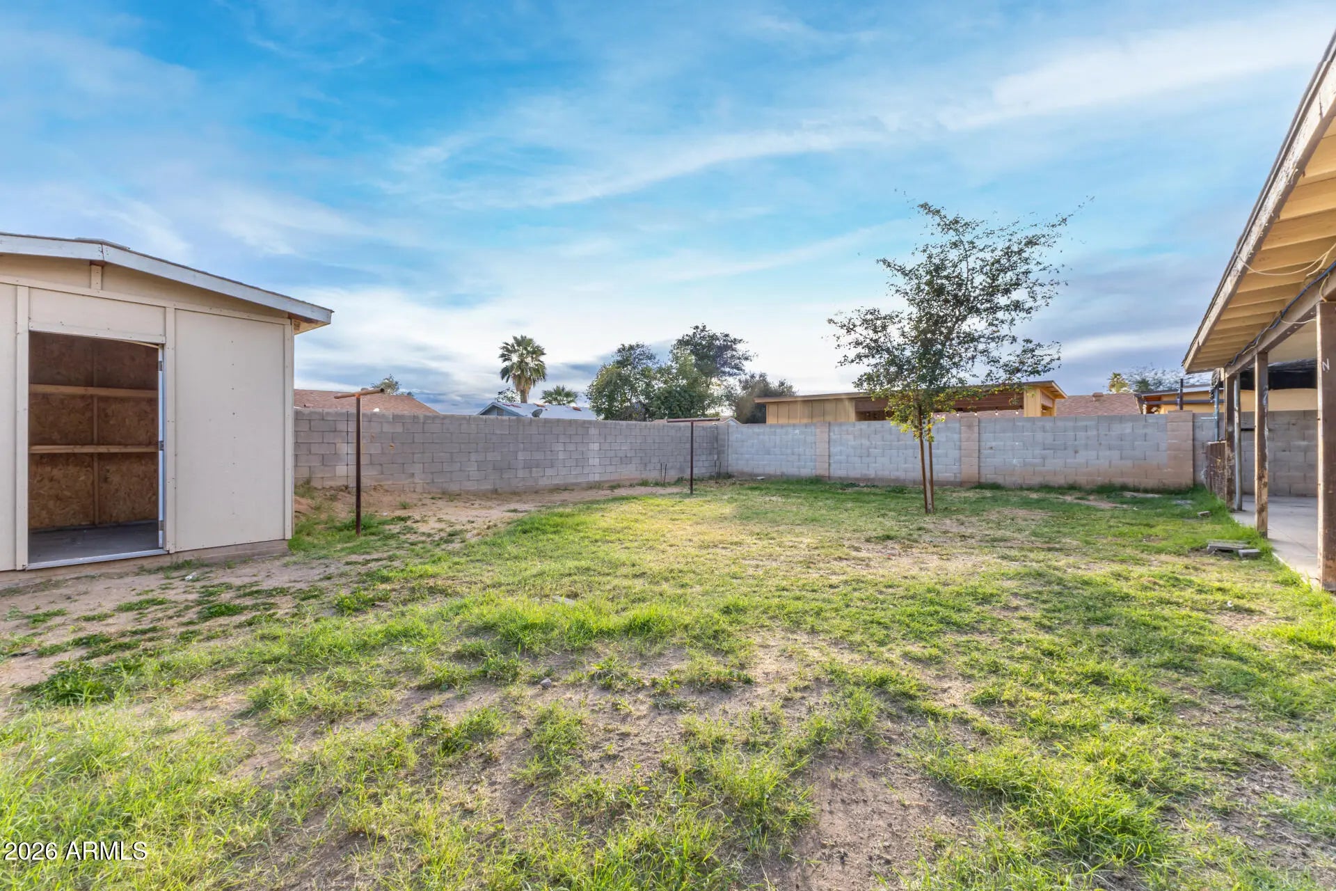 Don't miss the opportunity to own this charming 3-bed, 2-bath home in a great Phoenix location! Conveniently close t to schools, shopping, dining options, and freeway access. The inviting interior showcases a neutral palette, tons of natural light, tile flooring in common areas, and soft carpet in bedrooms. The eat-in kitchen comes with an elec range, granite counters, track lighting, and wood cabinetry. Sliding doors merge the inside & outside activities! Enter the primary bedroom to find a private bathroom for added comfort. Check out the spacious backyard with a covered patio, and so much room for your creative ideas! The attached storage room can be a workshop, and the storage shed ensures tools are organized. PLUS! Plenty of parking spaces with RV gate & large carport. Make it yours!
