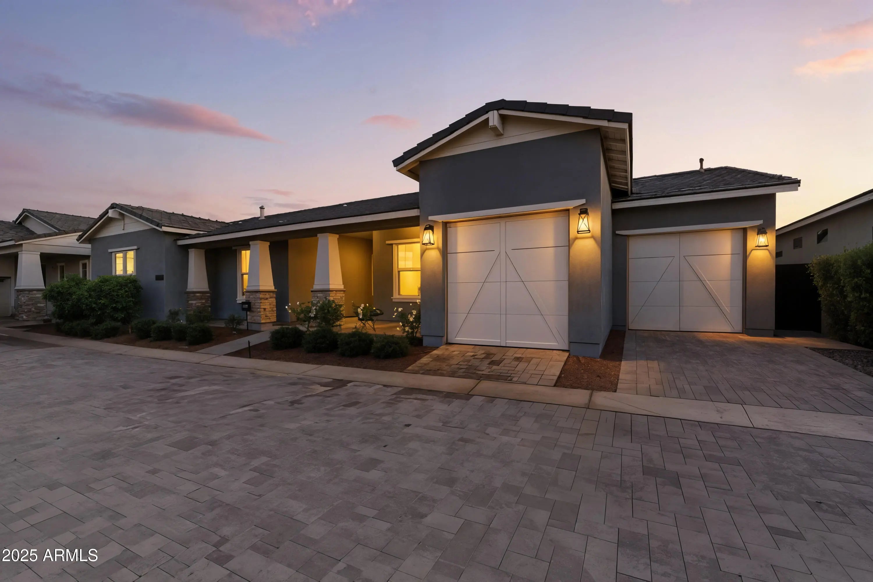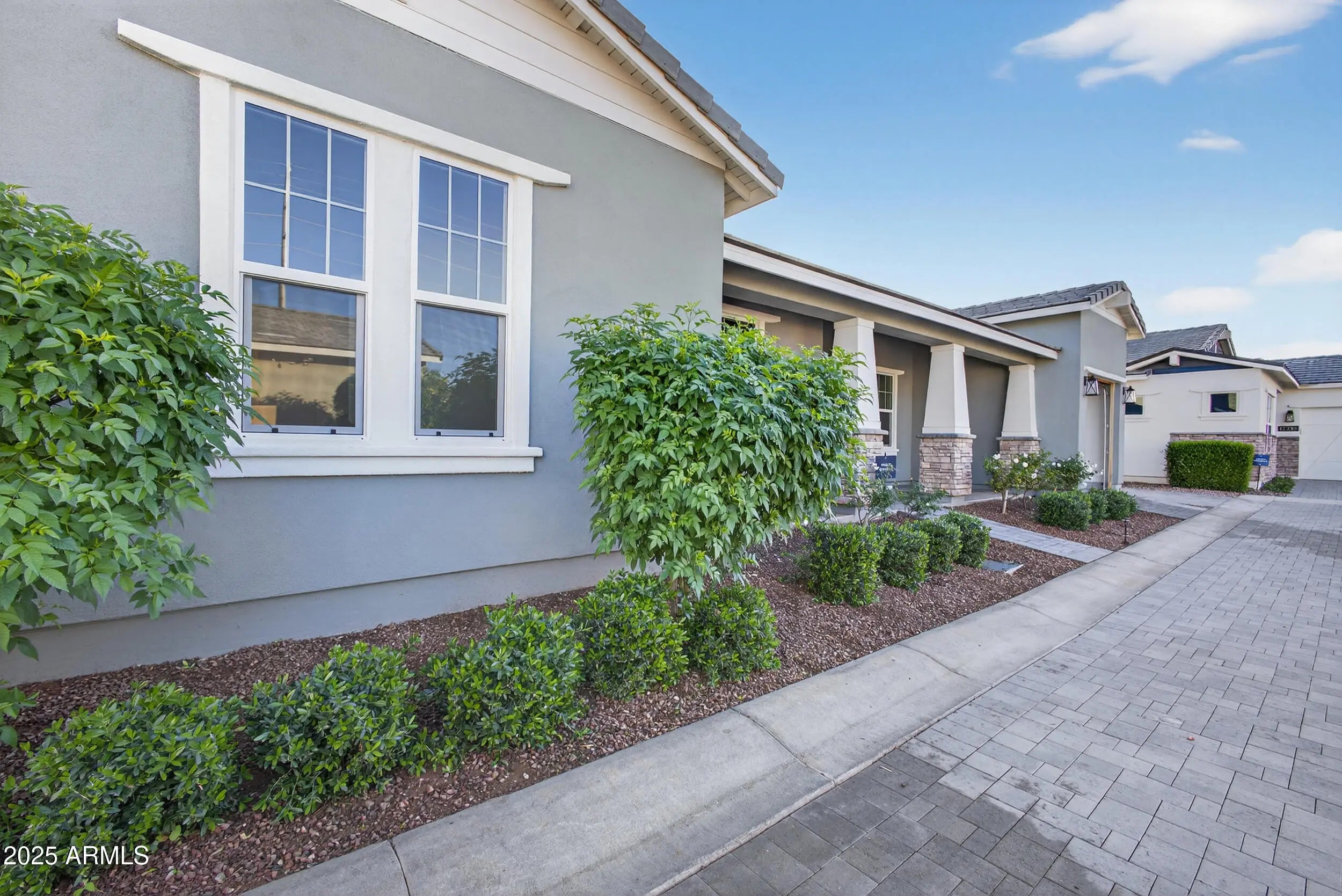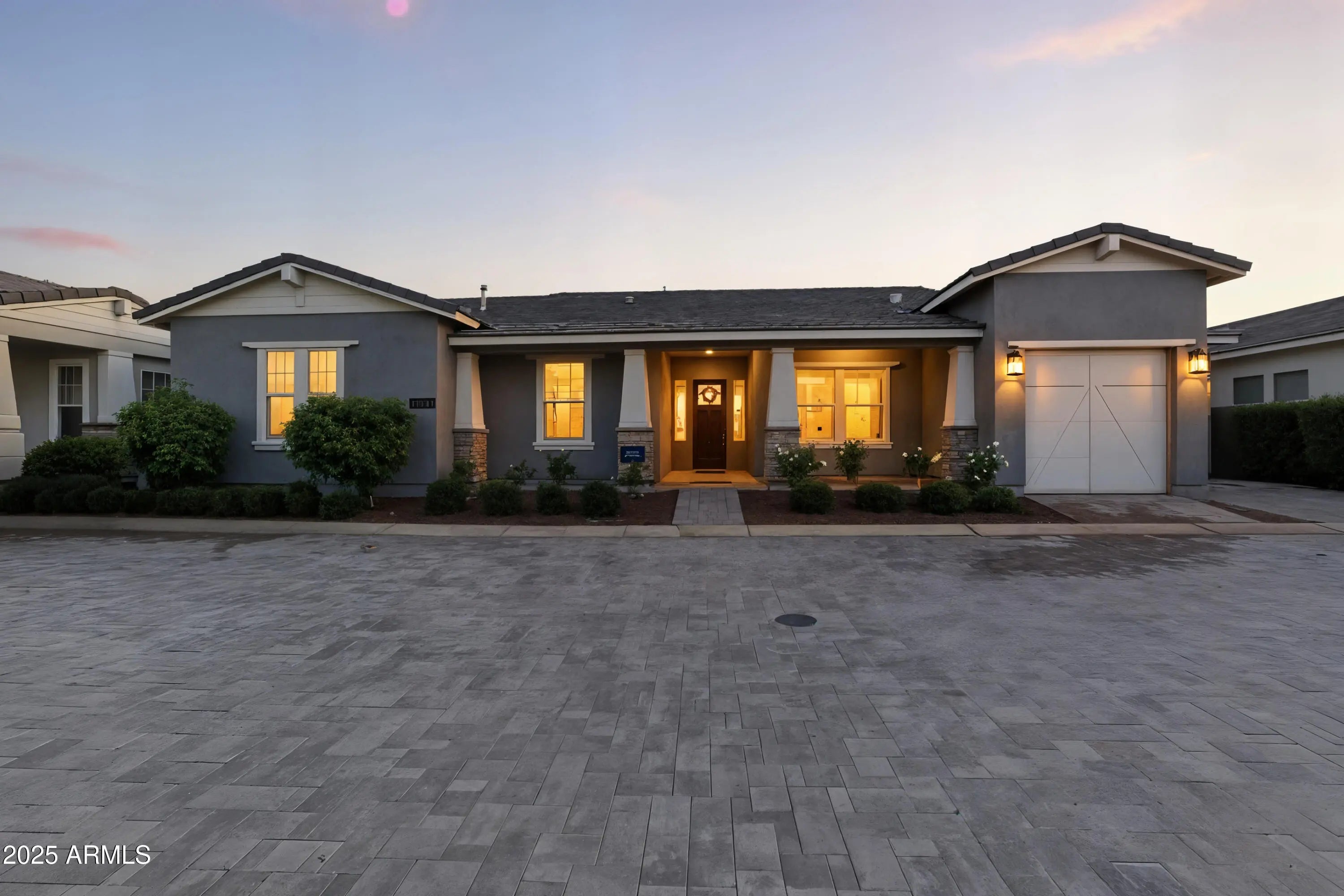Luxury living awaits in the gated Sterling Grove community. This beautifully designed 3-bed, 3-bath home offers an open, light-filled floor plan with a gourmet kitchen featuring quartz counters and tile flooring throughout. The primary suite includes an oversized walk-in shower and spacious closet, while Bedroom Two offers its own en-suite and walk-in closet. Enjoy upgrades like soft-close cabinets, walk-in pantry, laundry room with sink, garage epoxy floors, and storage racks. The low-maintenance backyard is ready to enjoy or customize. Community amenities include a championship golf course, resort-style pools, clubhouse, fitness center, dining, tennis, pickleball, walking paths, playgrounds, and 24/7 gated security. Minutes from the 303 and Village at Prasada.
