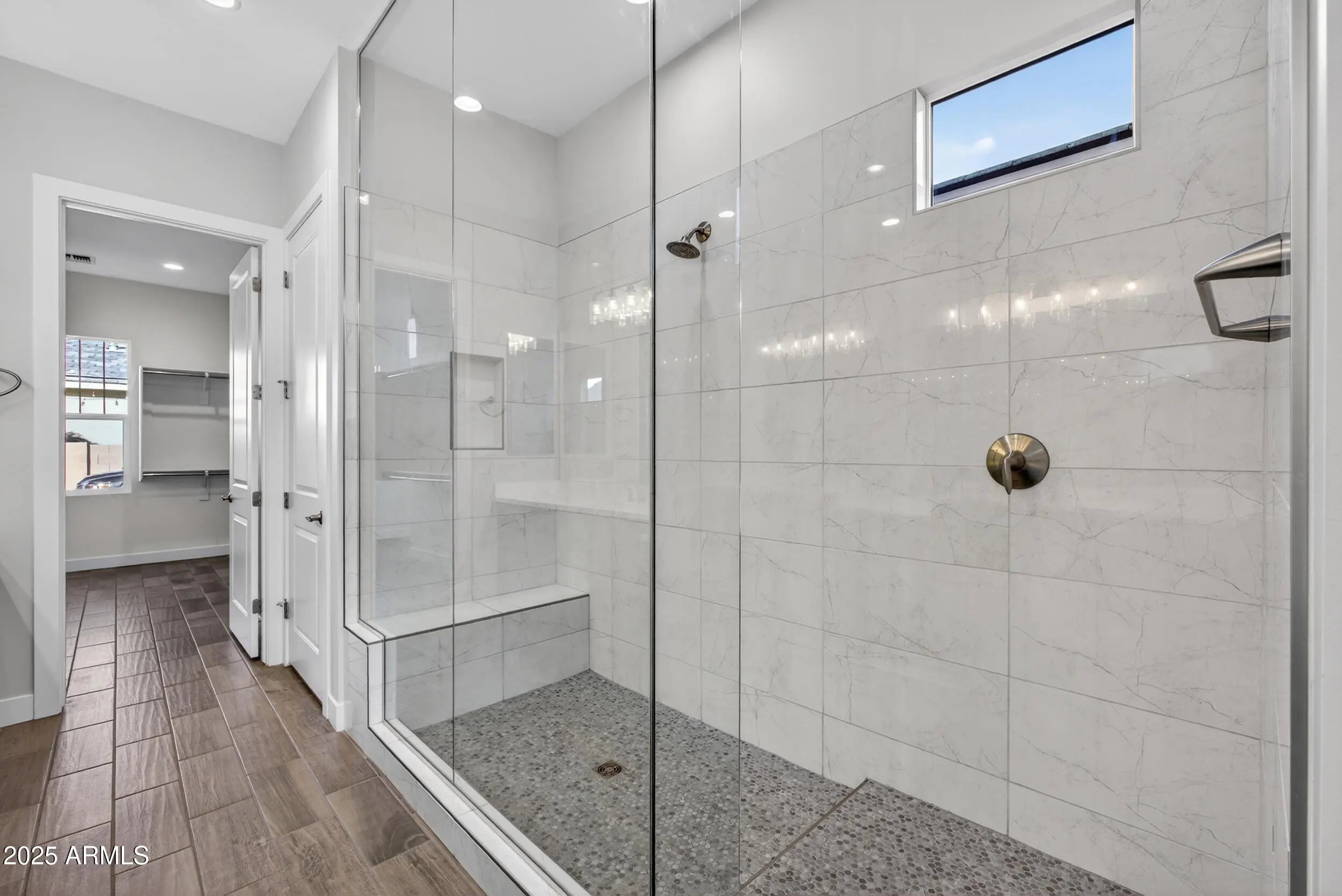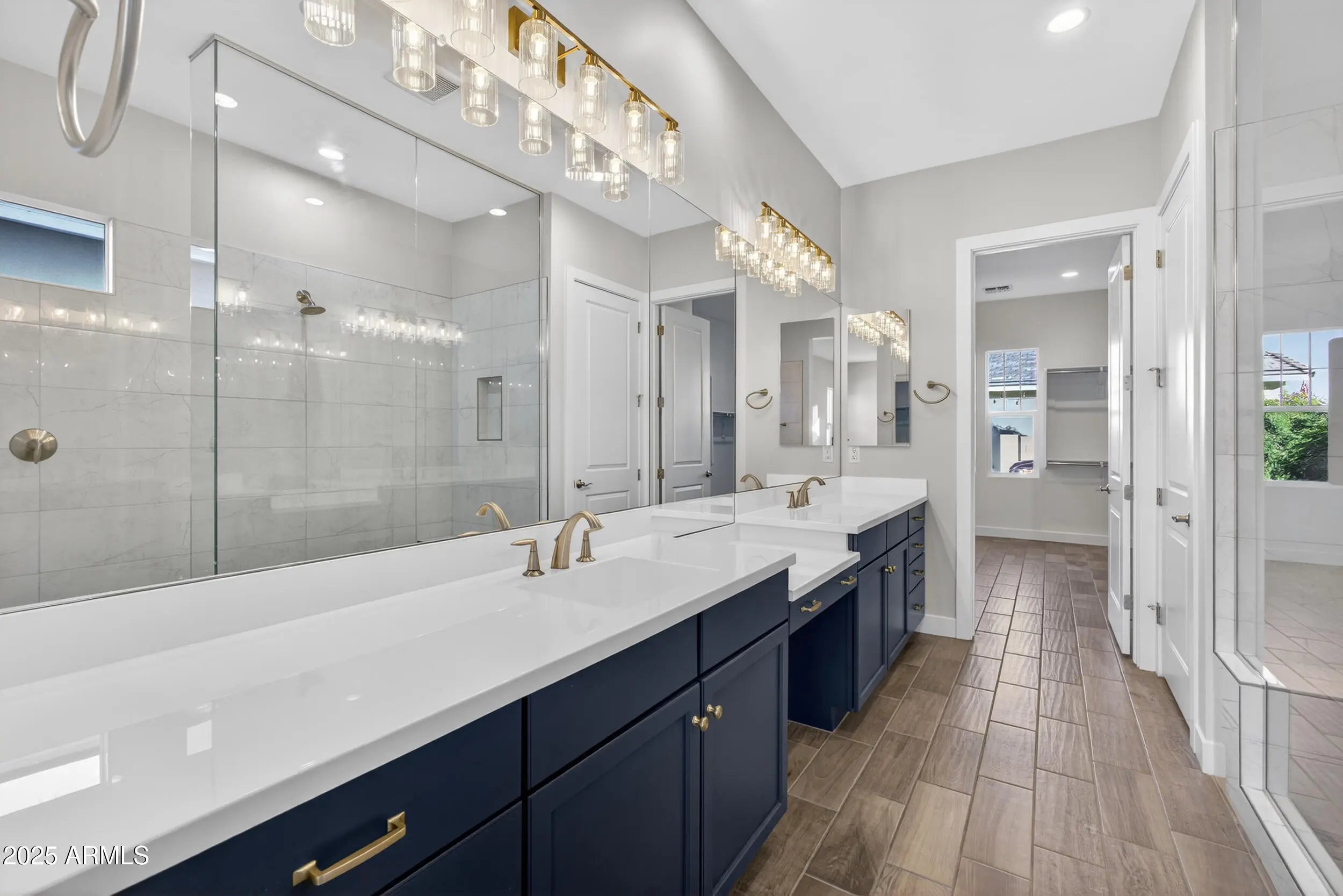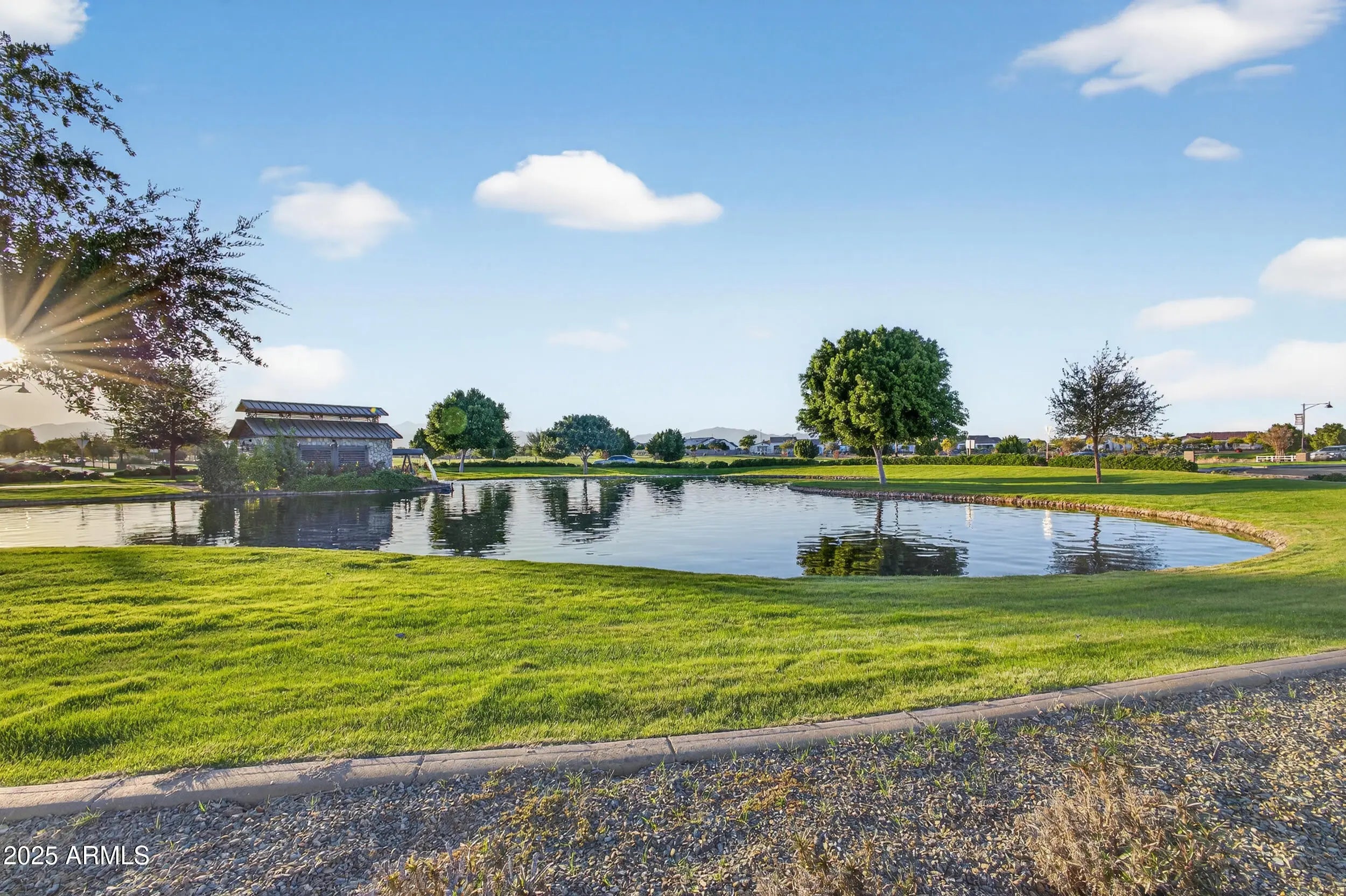 Luxury living awaits in the gated Sterling Grove community. This beautifully designed 3-bed, 3-bath home offers an open, light-filled floor plan with a gourmet kitchen featuring quartz counters and tile flooring throughout. The primary suite includes an oversized walk-in shower and spacious closet, while Bedroom Two offers its own en-suite and walk-in closet. Enjoy upgrades like soft-close cabinets, walk-in pantry, laundry room with sink, garage epoxy floors, and storage racks. The low-maintenance backyard is ready to enjoy or customize. Community amenities include a championship golf course, resort-style pools, clubhouse, fitness center, dining, tennis, pickleball, walking paths, playgrounds, and 24/7 gated security. Minutes from the 303 and Village at Prasada.