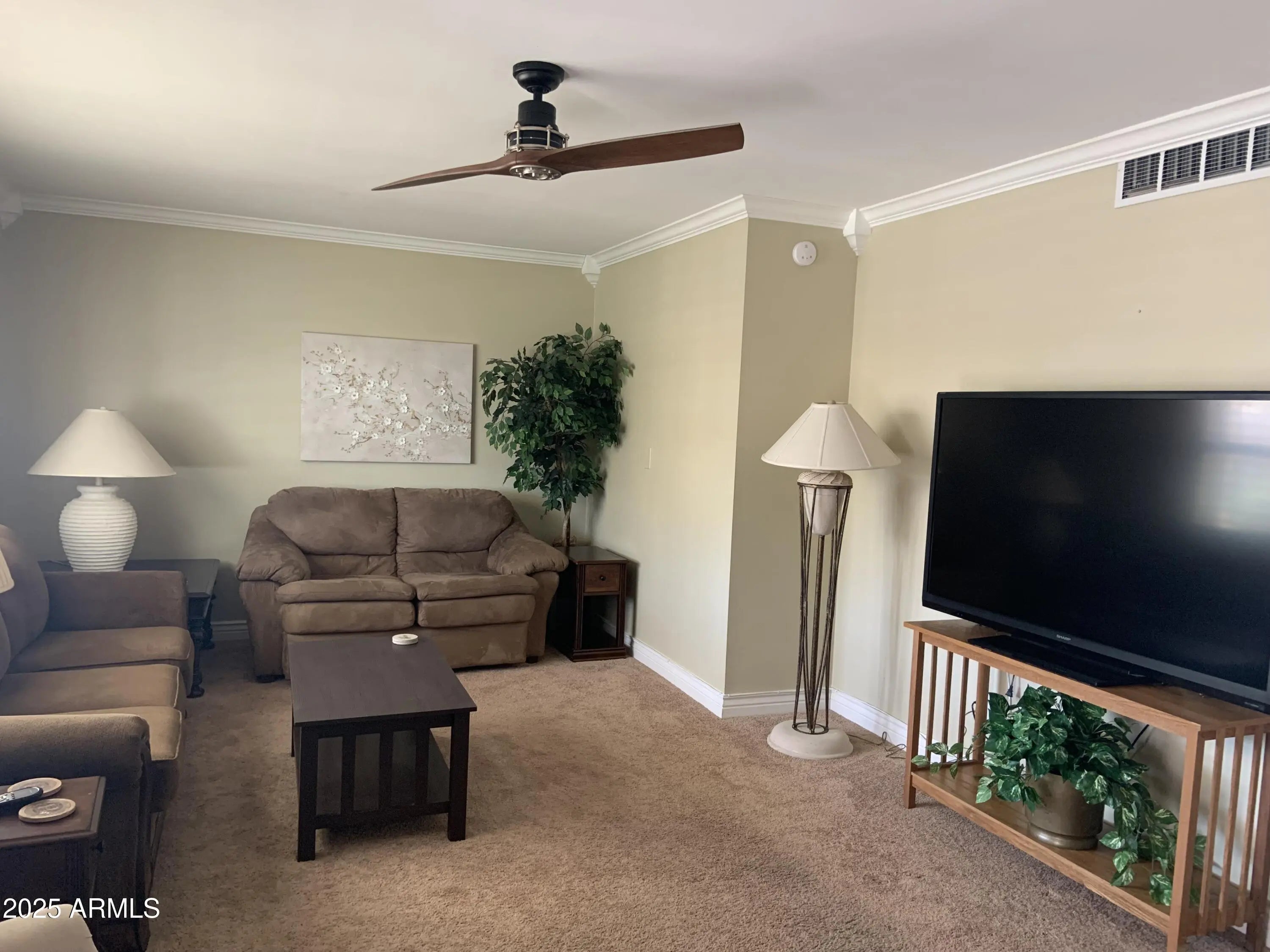 Summer Rate $2000/mo, Fall-Spring $2650/mo! Spacious 2 bedroom comfortably furnished vacation home. Large living room with plenty of seating and 60'' TV. Formal dining room and fully stocked kitchen. Washer and dryer provided along with all the kitchen appliances to make your stay convenient. 2 bedrooms, each with queen beds, 2 baths, plus a den overlooking the backyard and golf course. Covered patio with string lighting, furniture, charcoal BBQ, fruit trees and much more! Garage with extended storage area and work space. 55+ community with multiple recreation centers, pools, numerous golf courses, clubs, events, and much more! Enjoy all the amenities Sun City has to offer with optional membership fee. No pets preferred, but would consider small dog with very well qualified applicant