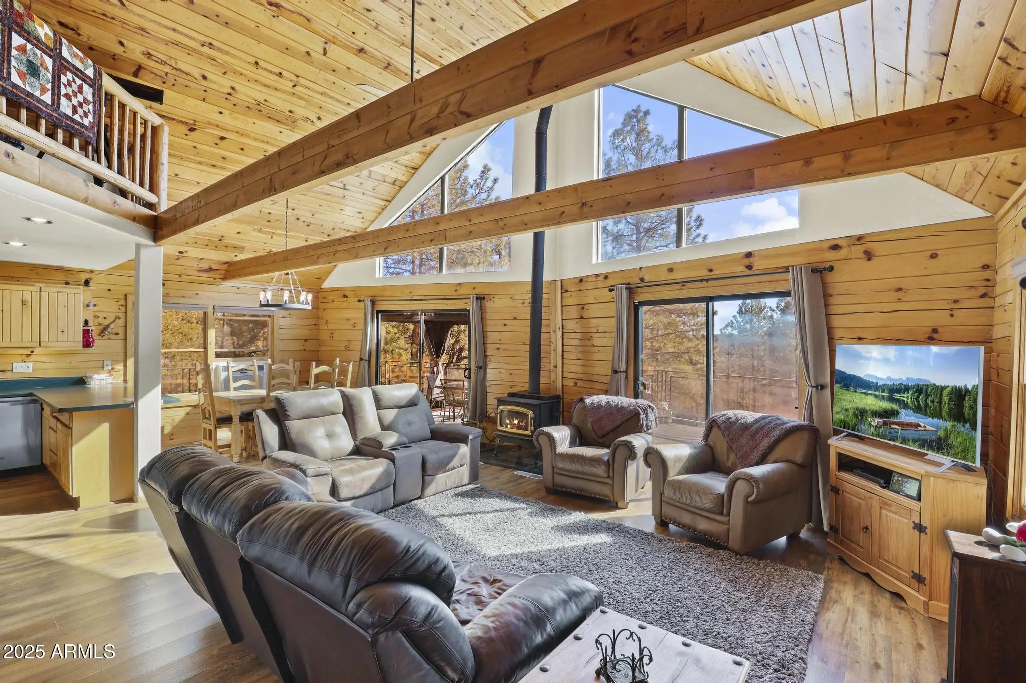 Seize this rare investment opportunity with this spacious 3-bedroom, 2-bath with finished basement, single-family home on over 2 acres with AMAZING views in the gated community of Starlight Ranchettes in Happy Jack. Thoughtfully designed for both comfort and revenue potential, this retreat pairs stunning mountain views with a warm, inviting ambiance—making it a superb choice for short-term rental investors seeking steady guest appeal and memorable vacation experiences, or enjoy it as your full time or vacation home. The masterbedroom suite offers a huge walkin closet, bathroom and balcony to sit and enjoy your morning coffee. The open layout features generous living areas anchored by a cozy wood stove, perfect for gathering after a day of mountain adventures. Large windows and recessed lighting brightens every room, highlighting the home's refined wood finishes and bringing a welcoming glow throughout. The well-appointed kitchen and dedicated laundry room offer maximum convenience for extended stays, while the entertainment-ready game room in the basement elevates guest appeal, could also be used for additional sleeping area, making this property stand out in the rental market. Three spacious bedrooms ensure comfortable sleeping arrangements whether guests arrive for a family getaway or group retreat, and two bathrooms keep routines effortless and private. Outside, the expansive 2-acre lot offers limitless opportunities for relaxation and enjoyment, with panoramic mountain views of the canyon providing a breathtaking backdrop. Guests and owners alike will appreciate the attached 2-car garage, offering secure parking and practical storage for outdoor gear, toys and more. The generous outdoor space is ideal for starlit evenings, barbecues, or simply soaking in the fresh Arizona airturning every stay into an unforgettable escape. With nature at your doorstep and sought-after amenities just a short drive away, this Happy Jack property is perfectly positioned to deliver strong occupancy and repeat bookings year-round. Its size, amenities, and prime location create a versatile investment that effortlessly accommodates gatherings, family trips, or couples looking for peace and privacy. Opportunity and lifestyle combine hereschedule your private showing or request more details today to unlock the full potential of this exceptional mountain retreat. Home has an established VRBO website and is an existing rental with return customers part time and used personally part time.