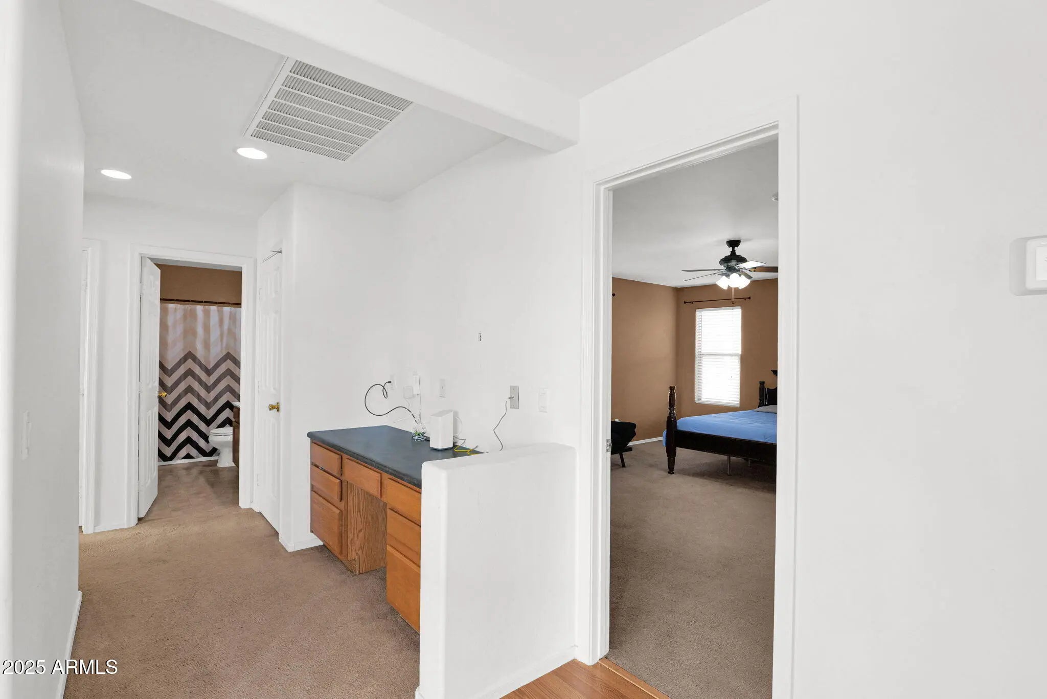 Welcome to this charming 3-bedroom, 2.5-bath home situated on a desirable corner lot in the popular Rancho Gabriela community. Downstairs, the entry welcomes you with a cozy nook & an open staircase that adds character & style. The open-concept living area provides a great flow for gatherings & entertaining. Upstairs, you'll find all three bedrooms, including a spacious primary suite complete with a WIC, double sinks, a separate shower, & a relaxing soaking tub. The upper level also includes a convenient built-in desk area, upstairs laundry w/ washer & dryer included & two add'l bedrooms with a full bathroom. Conveniently located near The Prasada for great shopping and dining options, as well as the new Cactus & 303 shopping area, this home offers easy access to everything you need.