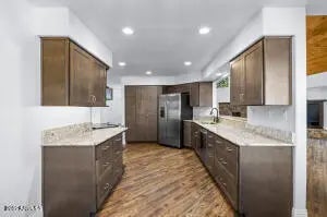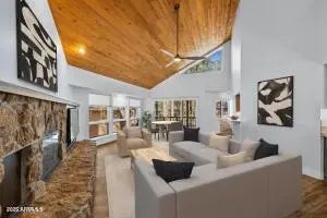 Move right in and enjoy the best of Forest Highlands at 2302 Tom McMIllan, a remodeled and updated 3-bedroom cottage with a primary on the main, golf views, and best of all, a spacious 500 sf finished bonus area - with a bathroom - that you can tailor to your lifestyle. Create a large private game room, media room, second living area or guest suite. It's ready for your imagination! (SF of bonus area is not included in SF of listing). Are you looking for a mountain golf cabin that feels new, open and modern with just the right cozy rustic touches? This is it. The floors, cabinets, counters, fixtures, bathrooms and paint throughout are all brand new. The open greatroom has warm, soaring tongue and groove ceilings, beautiful natural light and a malpais stone fireplace. The newly updated kitchen has a dining nook and large breakfast bar and is open to the greatroom. The primary on the main, two spacious bedrooms above and the newly-finished bonus area below make this a one-of-a-kind Forest Highlands cottage, and best of all, a one-of-a-kind Forest Highlands value! (The sf of the bonus area is not included in the listing.) Walk to and from the Canyon Clubhouse, take in the lush green of the Canyon#2 from your decks, ride your golf cart or bike to the Meadow Clubhouse or pickleball courts only two minutes away. There is even a custom-crafted dog area for your four-legged best friends. This is the perfect Forest Highlands mountain getaway at an exceptional price.