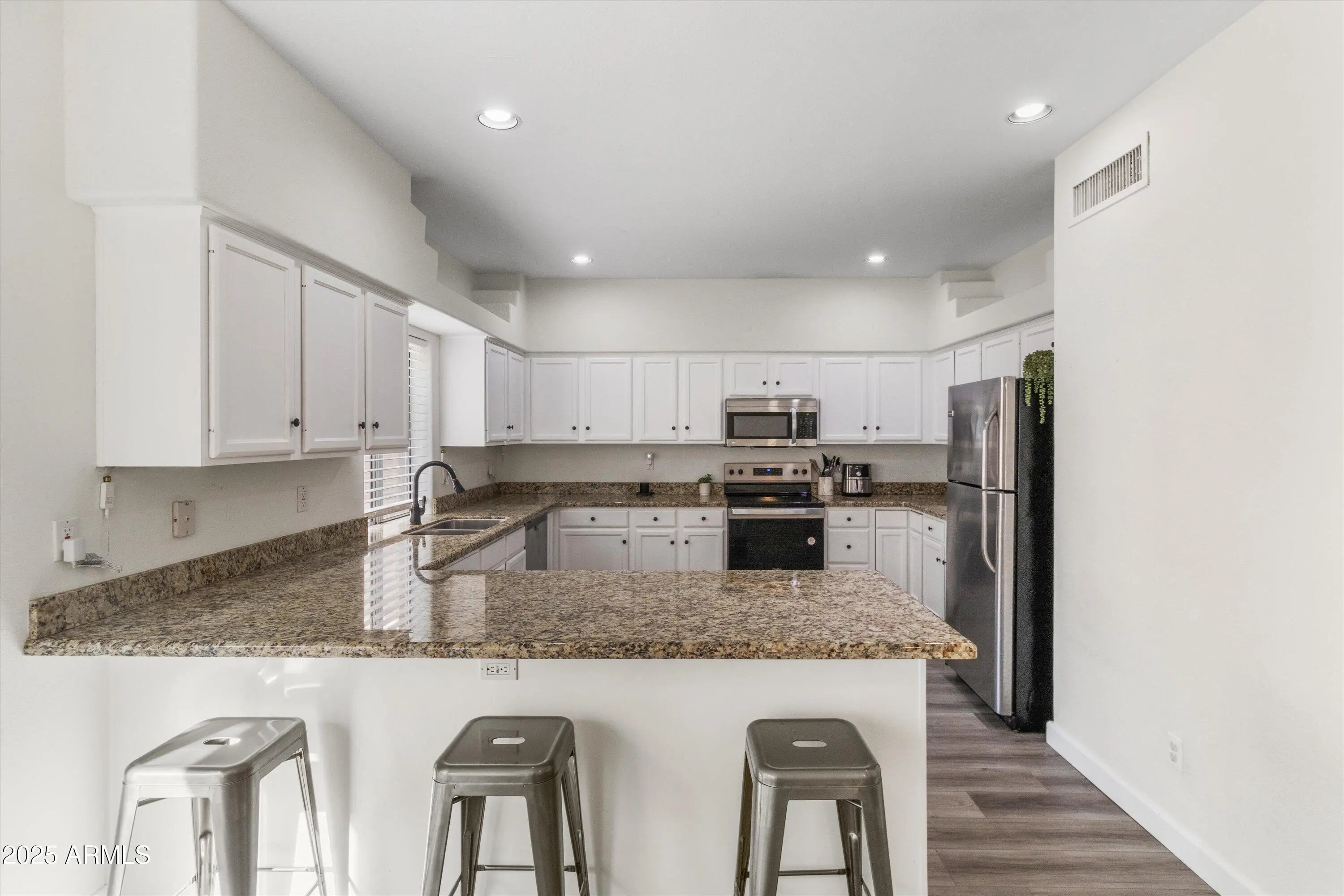 Step into a townhome that truly feels like Fountain Hills living at its best. This 3-bedroom, 2.5-bath home in the peaceful Ohryan Condos community offers 1,937 square feet of inviting space, thoughtfully updated and perfectly positioned near Fountain Park, local restaurants, and the charm of downtown.The moment you walk inside, the natural light catches your attention. The tall vertical window and soaring ceilings make the main level feel open and welcoming, giving the living and dining areas the kind of warmth that instantly feels like home. Whether you're relaxing at the end of the day or hosting friends, the layout makes everything feel effortless.The kitchen is a standout with freshly painted white cabinets, granite counters, stainless steel appliances, and a new electric oven. There's plenty of room to cook, gather, and enjoy. Recent improvements such as new downstairs flooring (2025), interior paint and carpet (2023), and upgraded closet doors add to the clean and refreshing feel of the home.Upstairs, the primary suite offers the kind of space you look forward to coming home to. It features a walk-in closet, dual sinks, and a private balcony where you can take in partial views of the Fountain, an unforgettable place to enjoy quiet mornings or unwind in the evening. Two additional bedrooms provide comfortable space with full closets and share a bathroom updated with freshly painted cabinetry.This home also includes a new A/C installed in 2023, a one-car garage, and a backyard designed for easy maintenance with turf. HOA dues are a low $175 per month.Set within a friendly, well-kept community with gorgeous views and convenient access to parks and amenities, this townhome offers comfort, charm, and a touch of the Fountain Hills lifestyle from the moment you walk in. It's the kind of place that's easy to envision yourself living in and even easier to love.