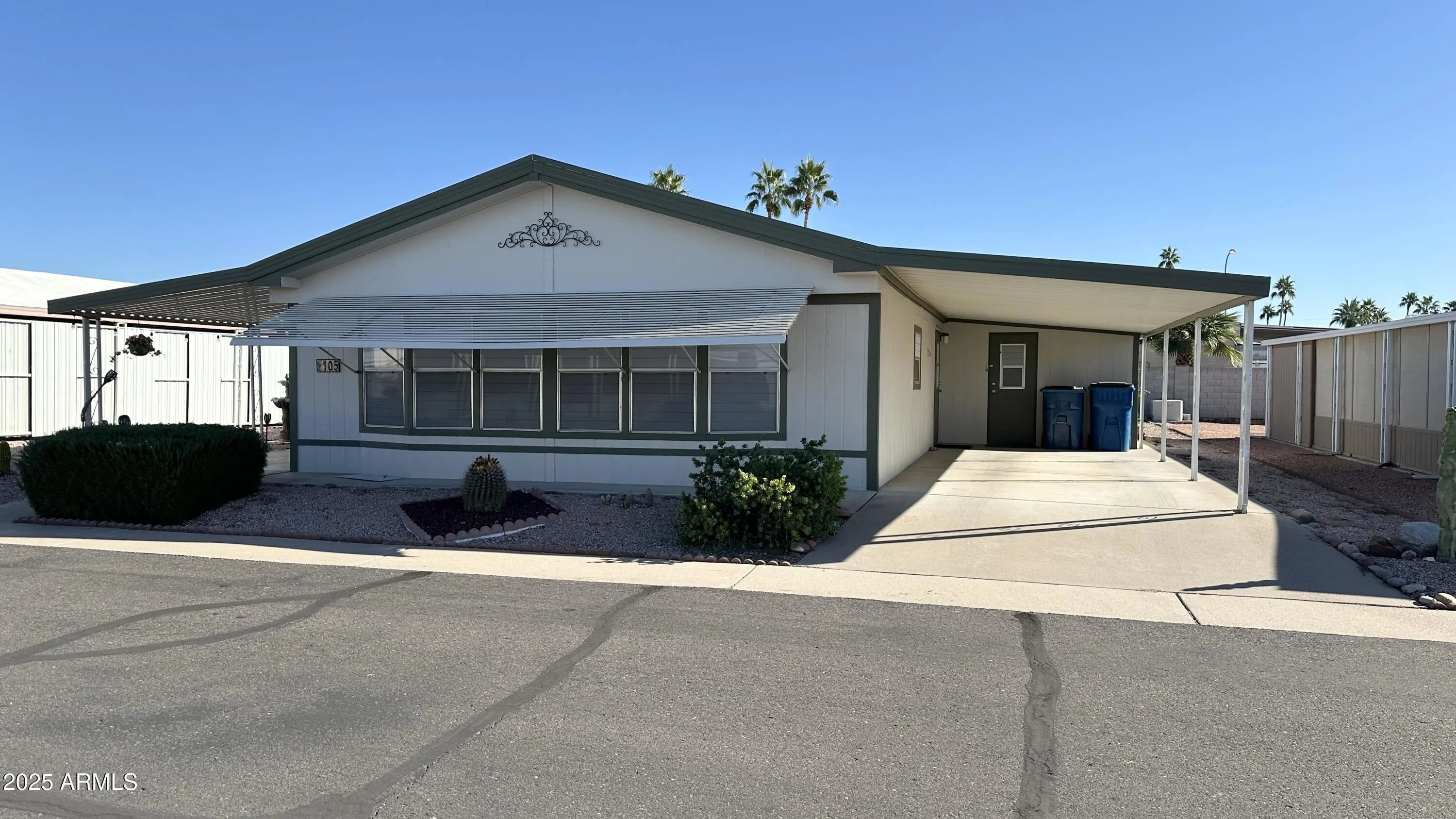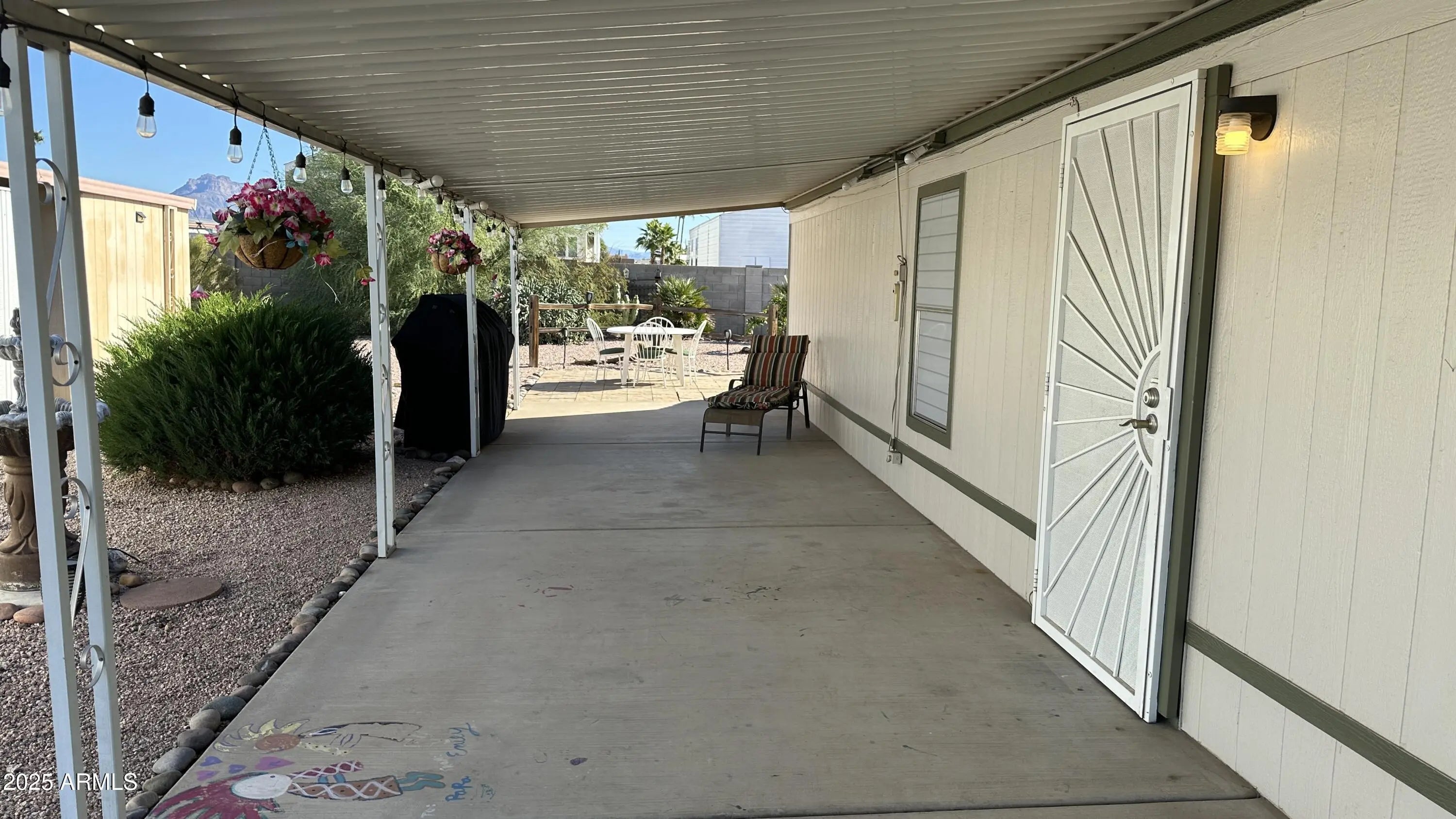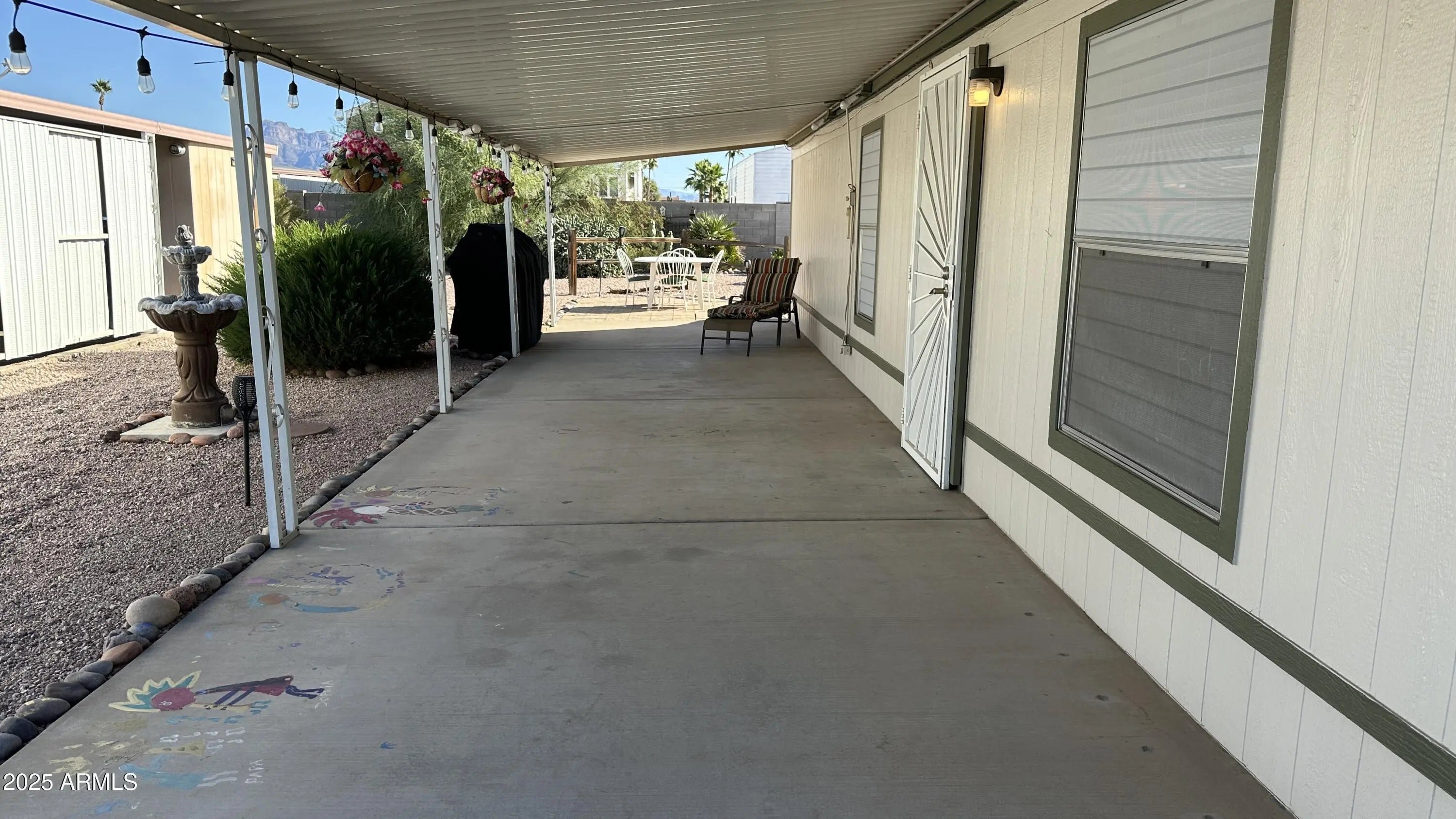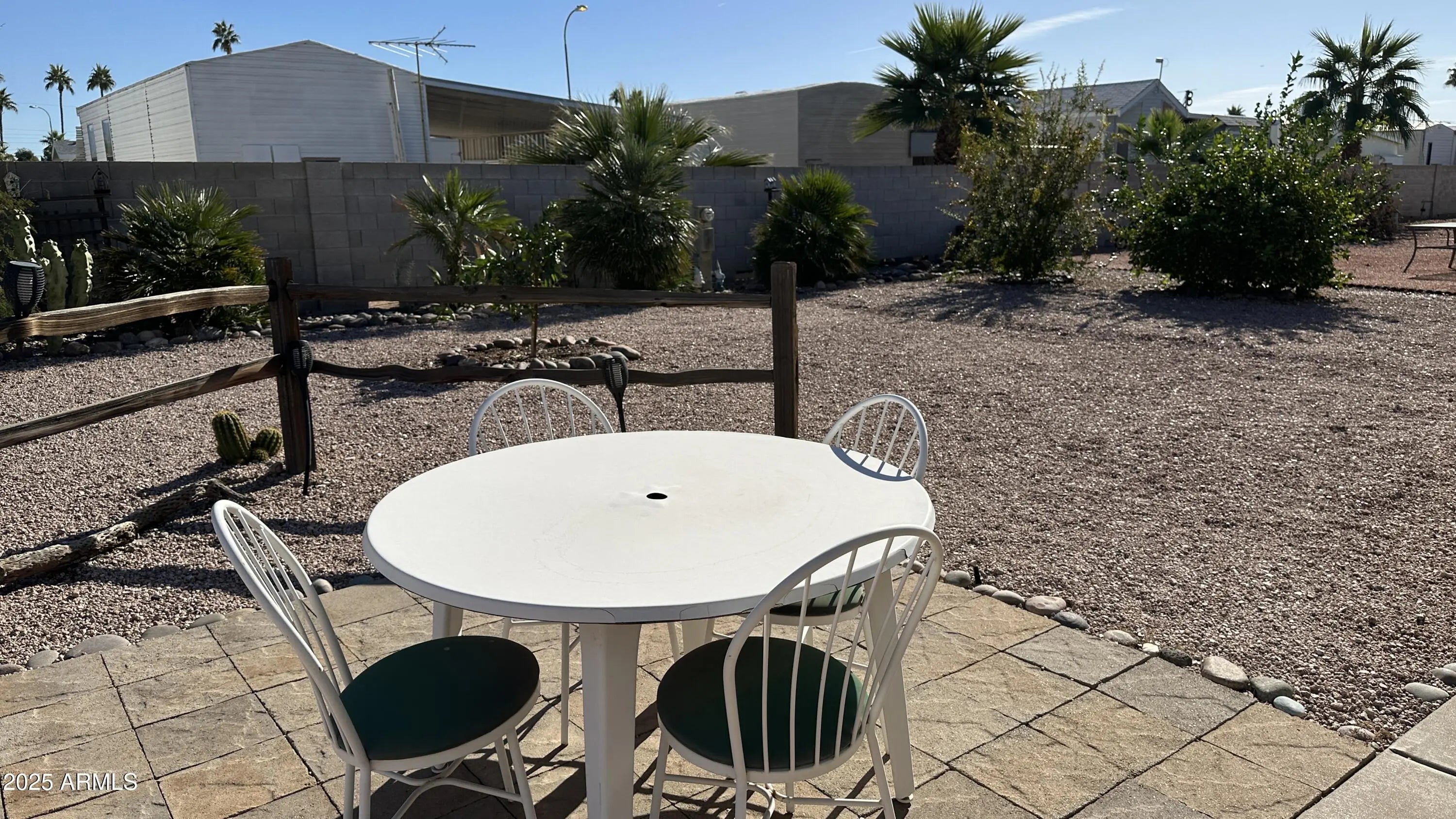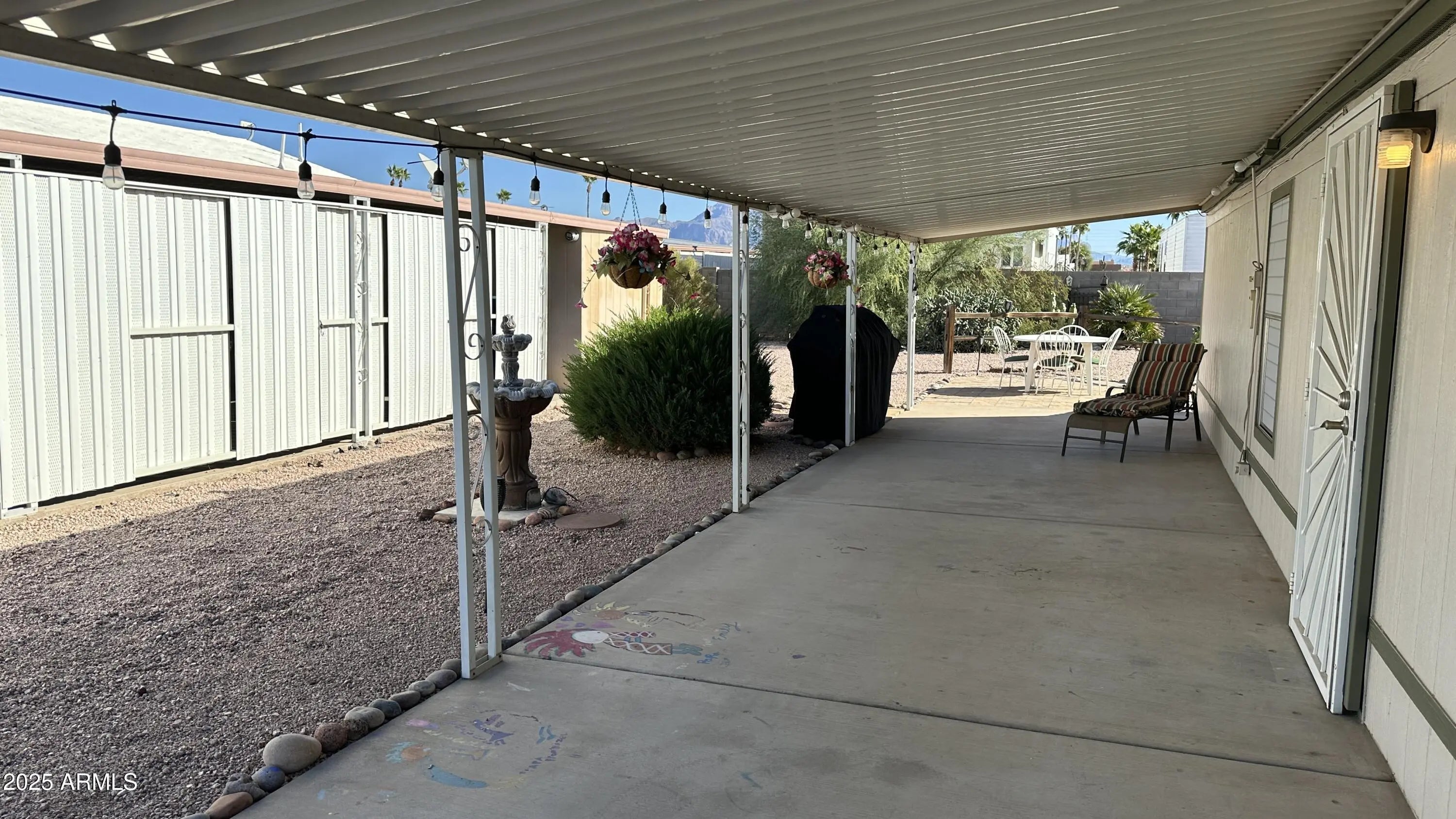 You will be ready to say yes to this address! With 1056 sq ft you will be ready to entertain inside and out. The covered patio has lot of room to be outside and shaded also! The primary bedroom with primary bath and walk in closet is an oasis of privacy. There is a great workshop all set up also to work on all those projects you have planned! 55 + community gives you peace and quiet also when you want it! Community is active so you have so many chances to meet new friends at the pool or in the rec center Back yard is walled and has a great amount of room for entertaining with an Orange Tree, Lemon Tree and Pomegranate Tree.