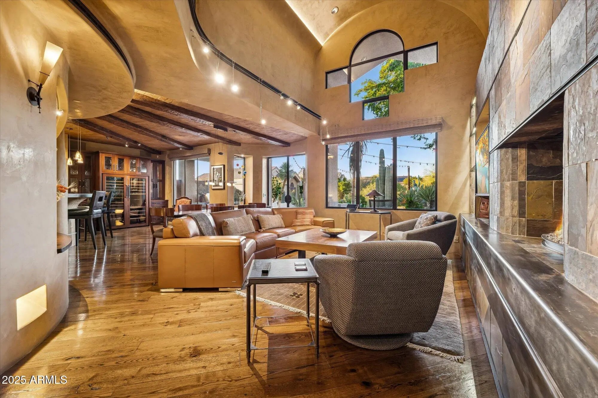 Live the Arizona lifestyle! This stunning residence has been reimagined by Internationally recognized architect Lee Hutchison of Urban Design Associates. known as a beacon of Southwest architecture, innovation and creativity, this home boasts unique functional spaces, meticulous attention to detail and commitment to excellence. A custom door by Sonoran Doors & reflecting pond with fountain welcomes you to this true desert gem that is a combination of custom details and artisanal craftmanship, Venetian plaster walls. a curved staircase and beam ceilings. 250 bottle Euro Cave wine refrigerator. Kitchen has Wolf appliances & steamer drawer. Desert Foothills designed outdoor landscaping seamlessly integrates on to a large northwest facing patio that encompasses the natural beauty and view Dramatic Fountain/Pool at Entry. Kitchen includes Wolf Appliances, Steam Oven (rather than Microwave), and 250-bottle EuroCave Fridge. Custom METAL windows and doors in Living Room. Creston Auto System Throughout. Custom Garage Door. 250 Gal Propane Tank Steam Shower in Master