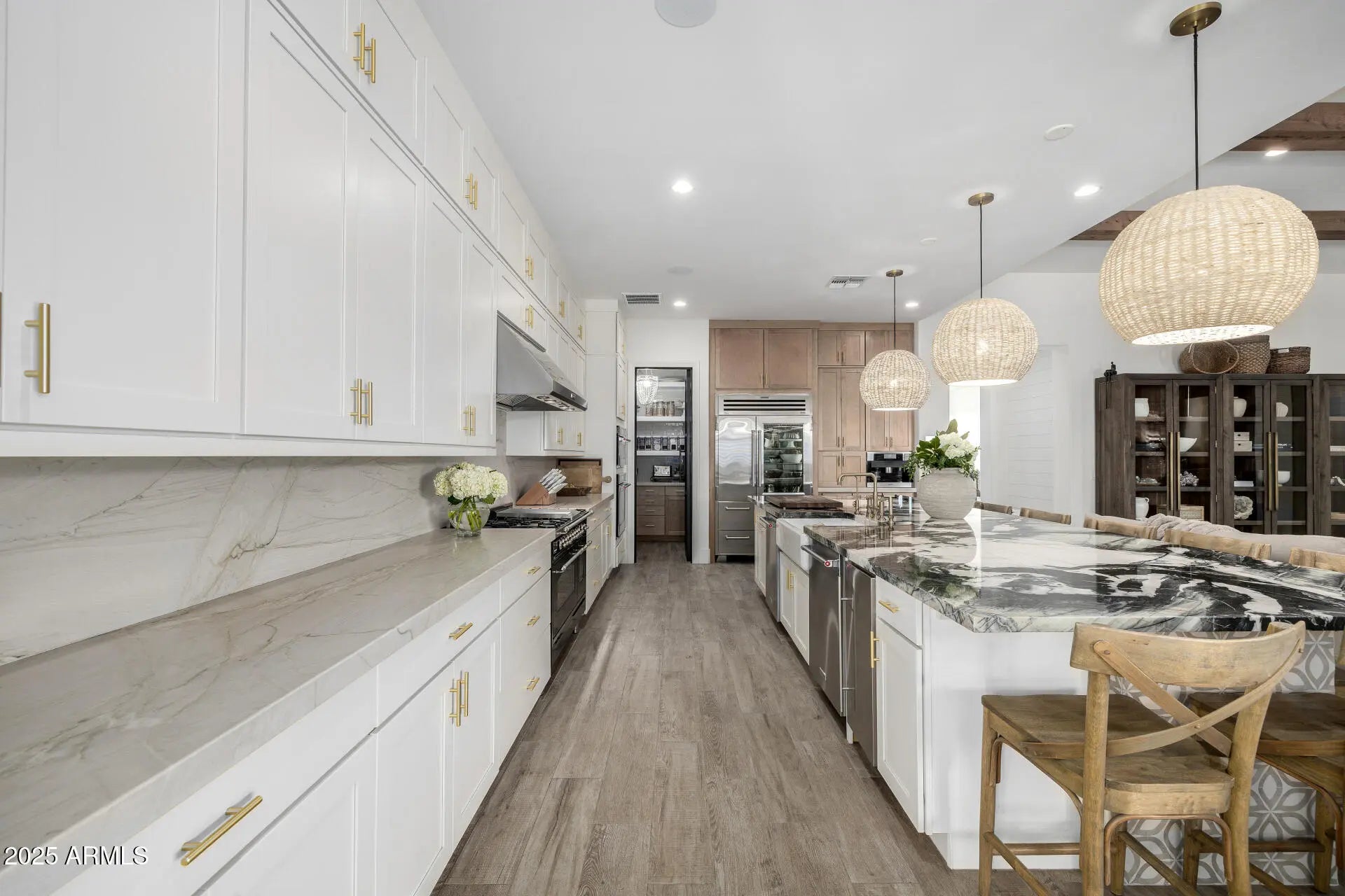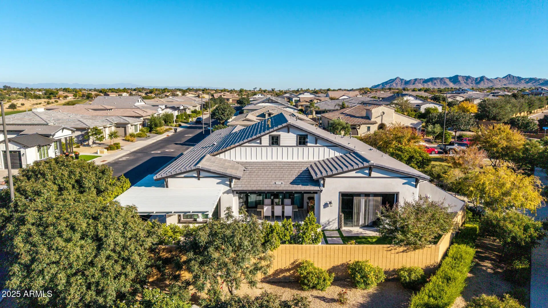 Discover a truly unique country club lifestyle at Seville Golf & Country Club. This 2019 stunning modern farmhouse offers exclusive access to The Club and is packed with premium upgrades. A private Dutch-door entry opens to a paver courtyard with surround sound. Inside, a wrought-iron glass door leads to a warm foyer and a gourmet kitchen with state-of-the-art appliances including Subzero pro 48 fridge, ILVE Italian range, Scotsman ice maker and a Miele built in coffee machine. The master suite showcases mountain views, spa-like amenities, and a spacious walk-in closet. Guest rooms each feature private en-suite baths. Home sits on the only lot in Legacy at Seville without any direct Neighbors. Thoughtful design and exceptional craftsmanship make this home truly unforgettable. EXTERIOR * entire house exterior paint 7/2025 * partial roof replacement 2024 * driveway remodel 7/2025 * pool renovation 6/2025 * iron/glass doors 5/2024 * multiple outdoor living areas with water and fire features * custom shed to match house on side yard * storage in garage w/Classy Closets cabinetry and Gorillas Rack System * Level 5 exterior whole perimeter seasonal and year round permanent LED lighting by Jellyfish with over 16 million color combos INTERIOR * custom tile work throughout * custom shiplap throughout * upgraded laundry w/built in appliances * custom built out panty w/natural quartzite counter * natural quartzite countertop on island and perimeter in kitchen * wood beams on ceiling throughout * upgraded appliances in kitchen ( scotsman ice maker, subzero pro 48 fridge, Ilve Italian range, Miele built in coffee machine) * Crestron complete smart home package including over 40 speakers * third car garage equipped with auto lift