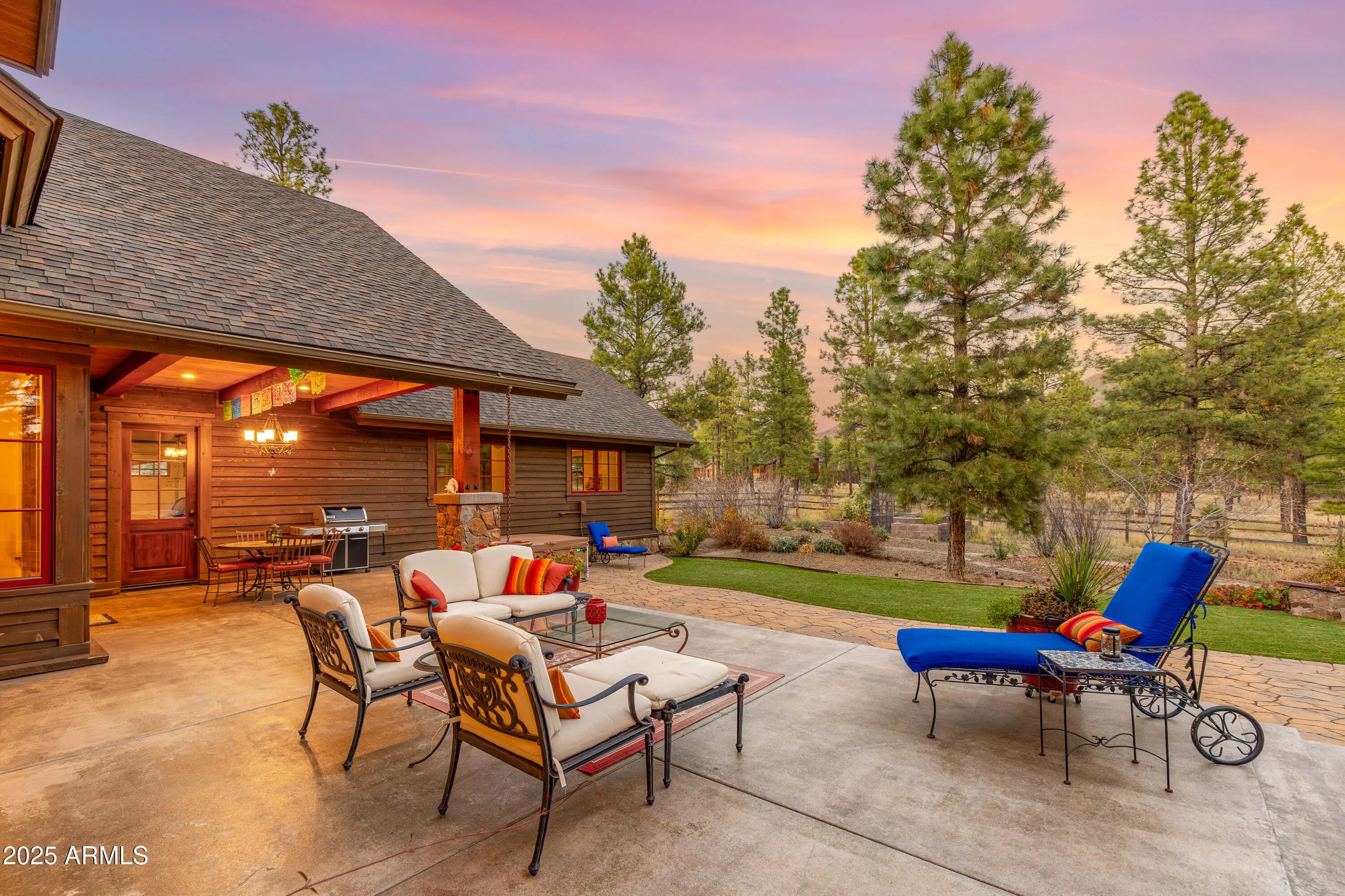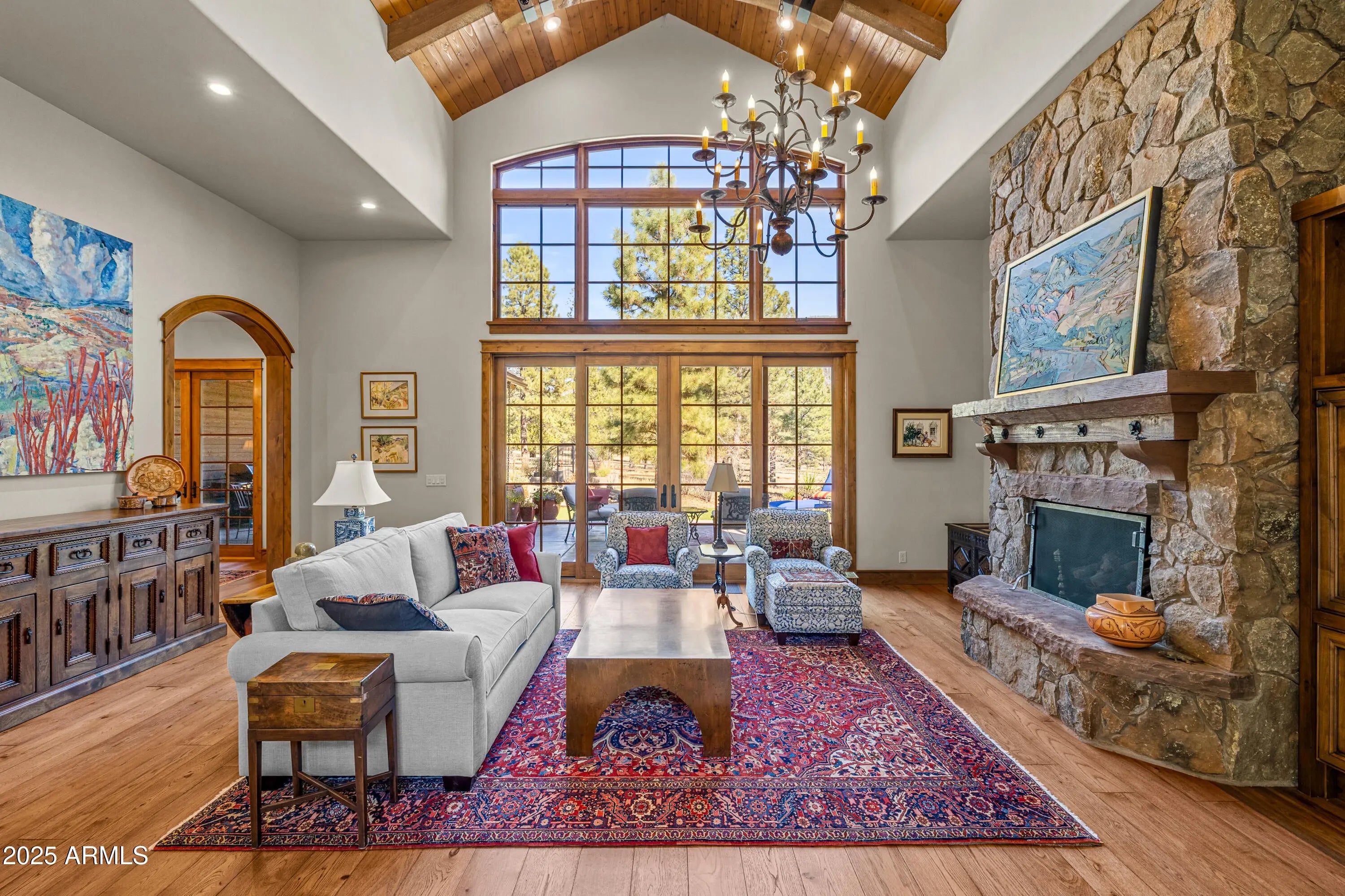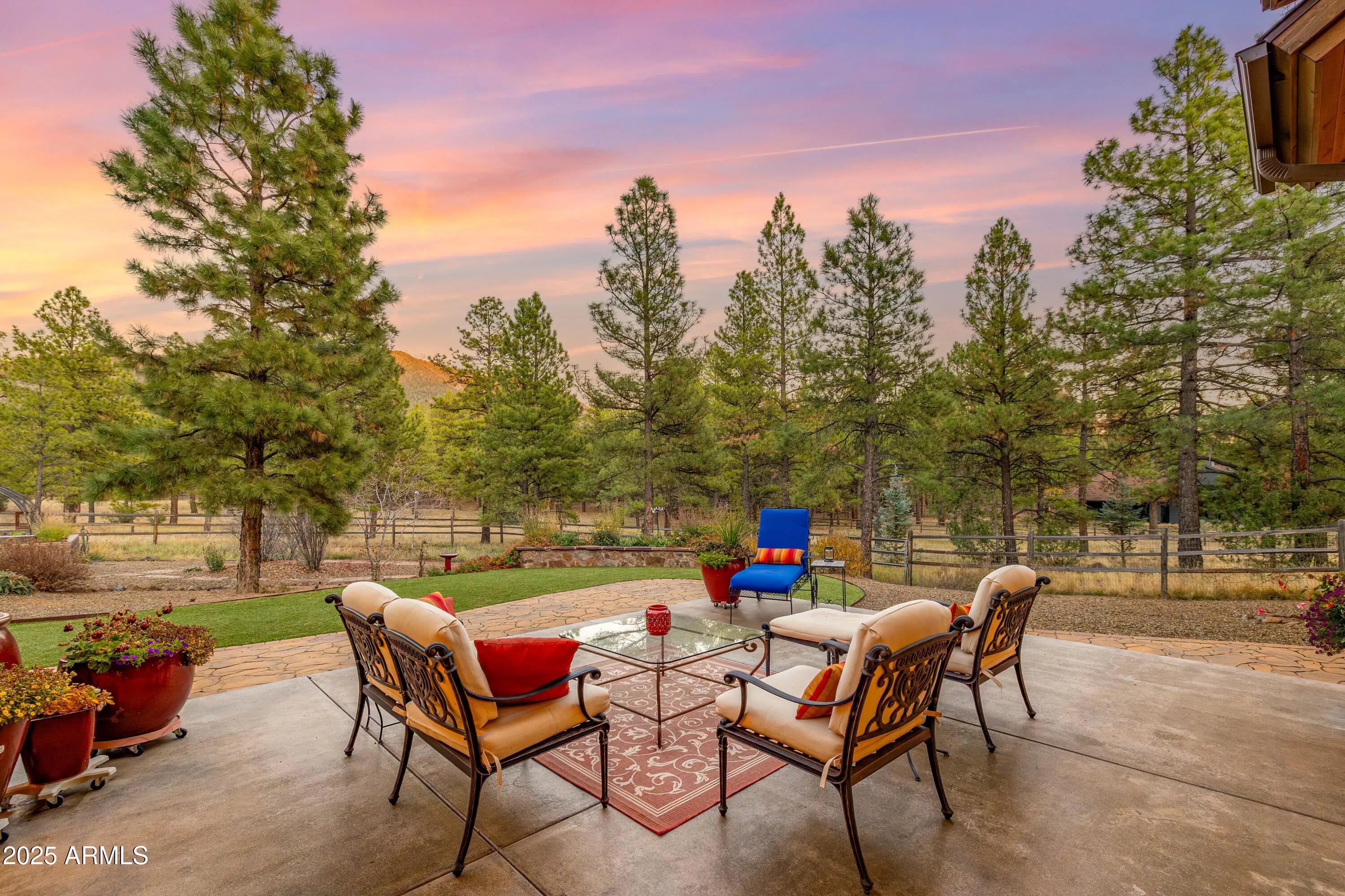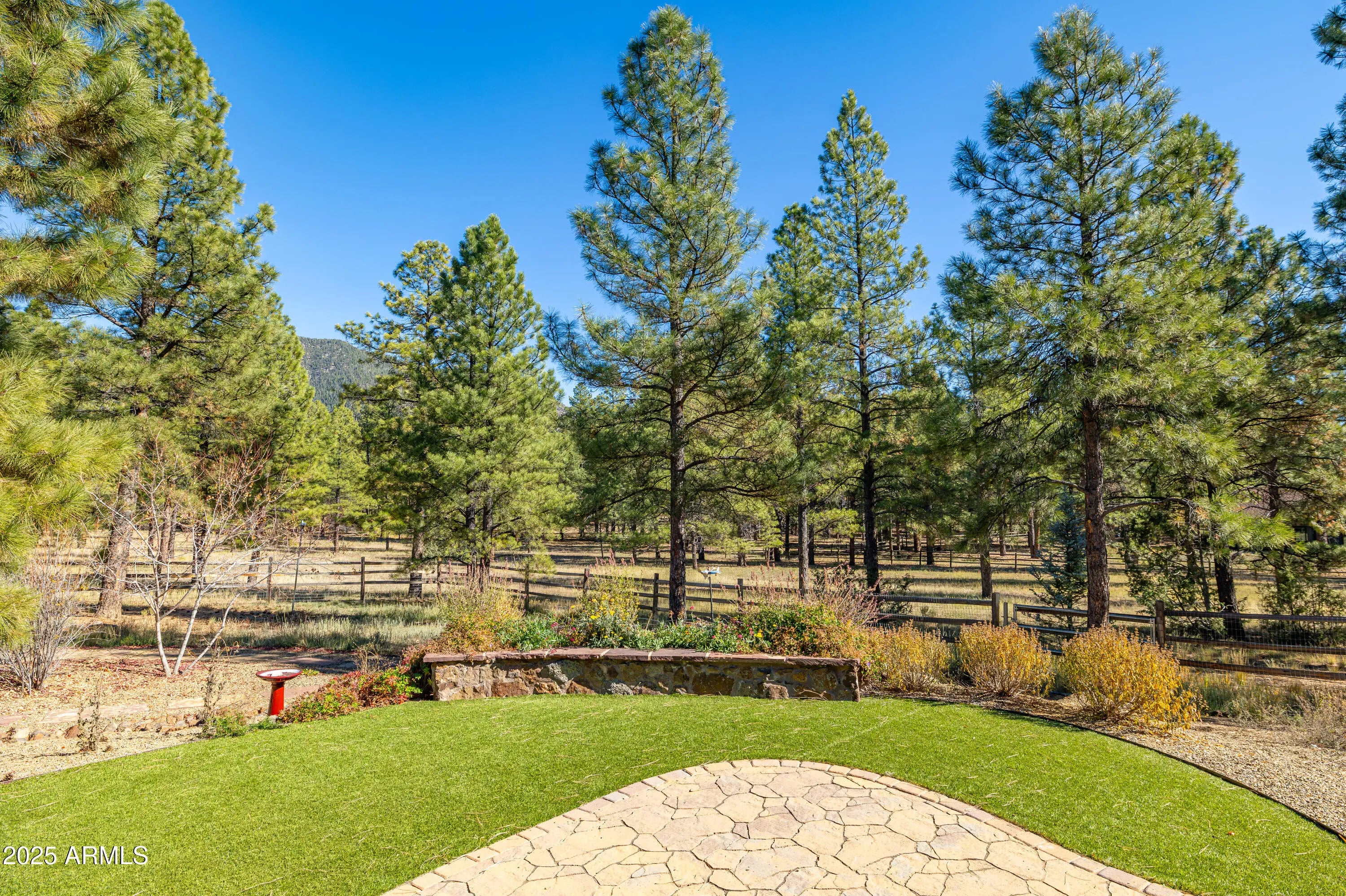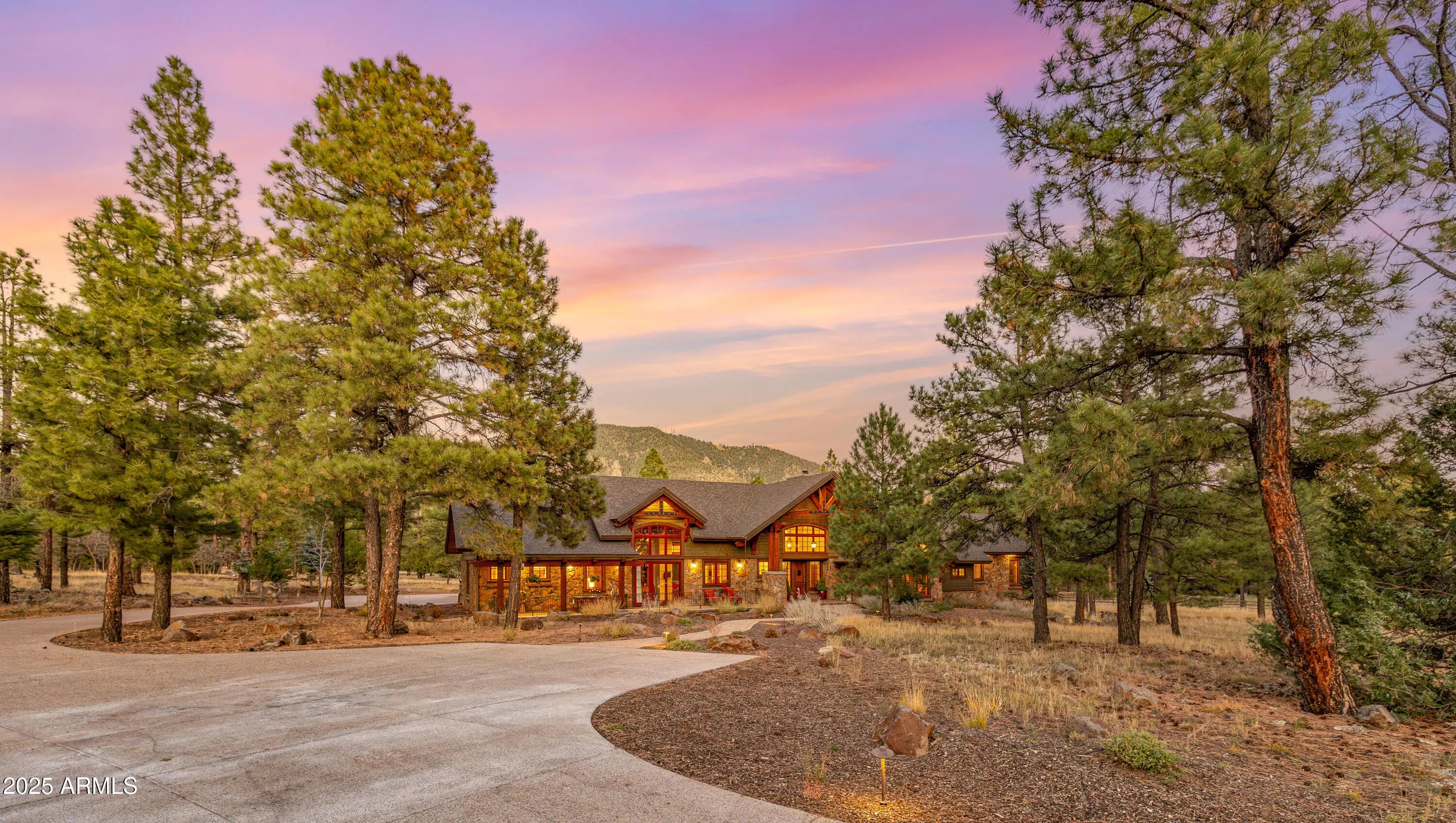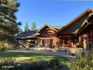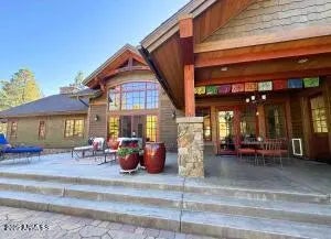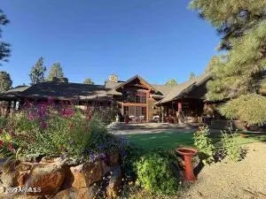 When the owners first wandered across this 4.4-acre homesite in Lockett Ranches, they felt the land speak—its sweeping pines, its quiet strength, its breathtaking beauty. Moved by that moment, they shared their vision with architect Christopher Alexander and together they shaped a home that rises from the landscape like a piece of art—luxurious yet grounded, rustic yet refined, infused with the soul of the Southwest. 550 Hattie Greene is a uniquely stunning single-level home on 4.24 forested and meadowed acres. Built by Flagstaff premier custom home builder, Harmony Builders, it is a blend of rustic luxury and traditional southwest charm. With 4 bedrooms, 4 bathrooms, radiant heat, a 3-car garage and a shared, deep-aquifer well, it's a magnificent home, mountain retreat or equestrian estate. A facade of malpais stone, bold timber beams, and vivid red windows welcome you with a presence both timeless and unique, even among the fine custom homes that surround it. Step into the great room and the outside pours in: colorful gardens, tall pines, light spilling generously through a wall of glass. Every detail throughout the home reveals the careful hand of an artisan - wide beam wood and terra-cotta floors, sculptural millwork, dramatic ceilings, gentle archways, and Southwest tilework that brings warmth, texture, and story to each room. At the heart of the home, the kitchen is warm and inviting,with its central island and breakfast nook, custom southwest tile accents and a stove with a rock-surround vent hood that stands as a beautiful tribute to the land that inspired it all. The spacious primary suite is a sanctuary where light dapples across a peaceful sitting area. Two additional ensuite bedrooms offer comfort and privacy for family and friends. Mirroring offices with built-ins and large windows are peaceful havens for work, exercise, yoga or art. One office is also designed as a fourth bedroom. Perfect. On the private back patio, the forest opens wide. Here, beyond vibrant gardens, the pines whisper in the mountain air. Mountains rise in the distance, their silhouettes shifting with each passing hour -blue at dawn, golden by late afternoon, and violet as evening settles in. This outdoor haven is a place to breathe deeply, relax, and entertain while deer and elk wander quietly through. It is a space where home and the land meet in perfect harmony, offering quiet mornings, star-drenched nights, and an ever-present sense of peace.