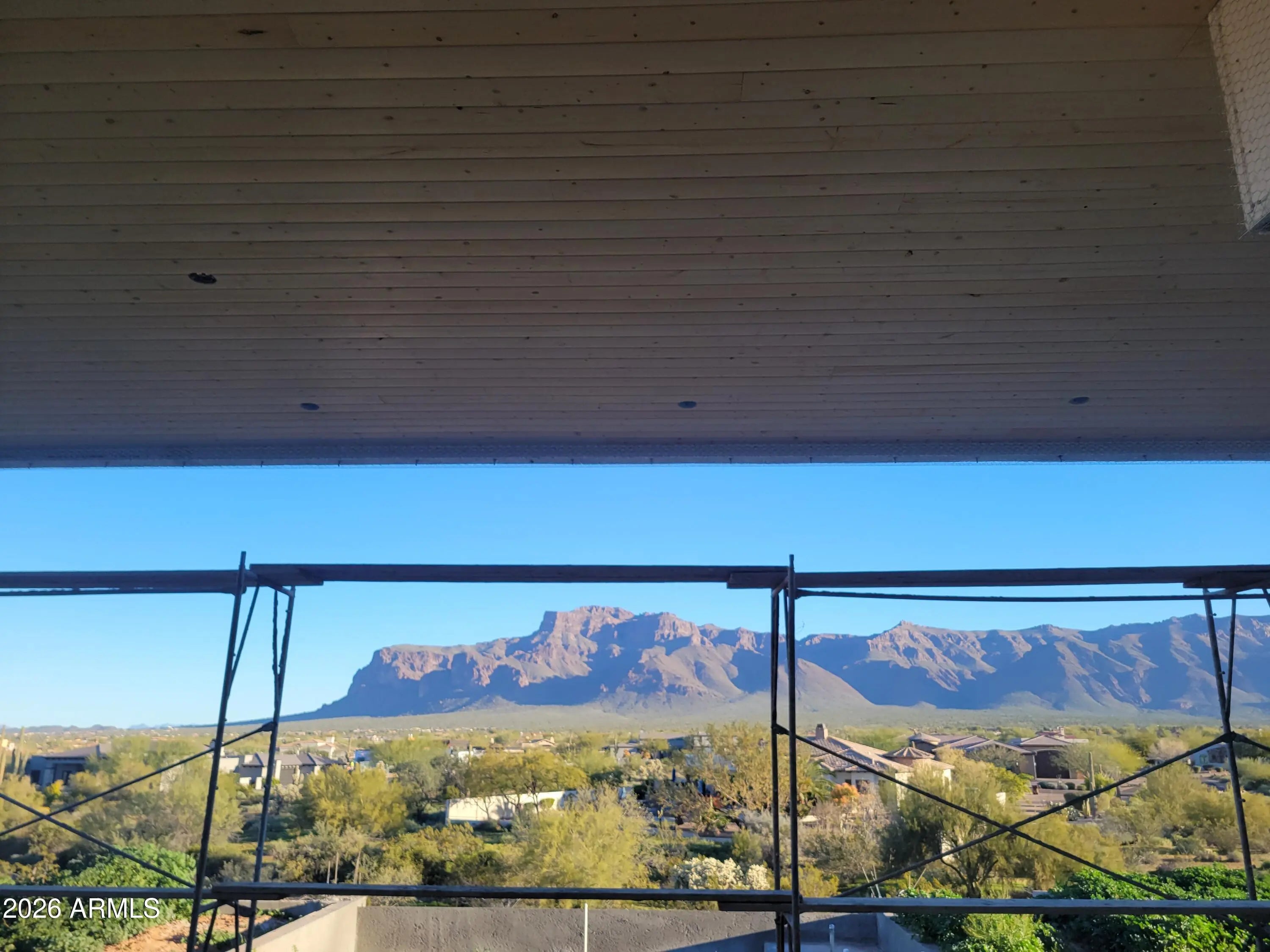 Luxury resort-style living on what is arguably the best remaining view lot in all of Gold Canyon, offering unobstructed views of the Superstition Mountains. This new custom home showcases T&G weathered gray ceilings flowing seamlessly indoors to out, floor-to-ceiling glass, motorized disappearing shades, and extensive integrated LED lighting throughout the home, landscape, and hardscape. Features include built-in misting systems, a $12,000 concrete soaking tub, pass through bar, and centralized smart controls for the negative-edge pool, raised spa, three fire features, and multicolor lighting. Additional highlights include a split, climate controlled 300-bottle wine room and tranquil Zen garden. The backyard is thoughtfully designed for elevated entertaining and relaxation, featuring an above ground poured concrete jacuzzi, full outdoor kitchen, 96-inch raised fire pit, and premier putting and chipping green. High-end luxury throughout. Completion scheduled for May 2026. Your opportunity to own a brand new custom estate and the lifestyle you deserve.