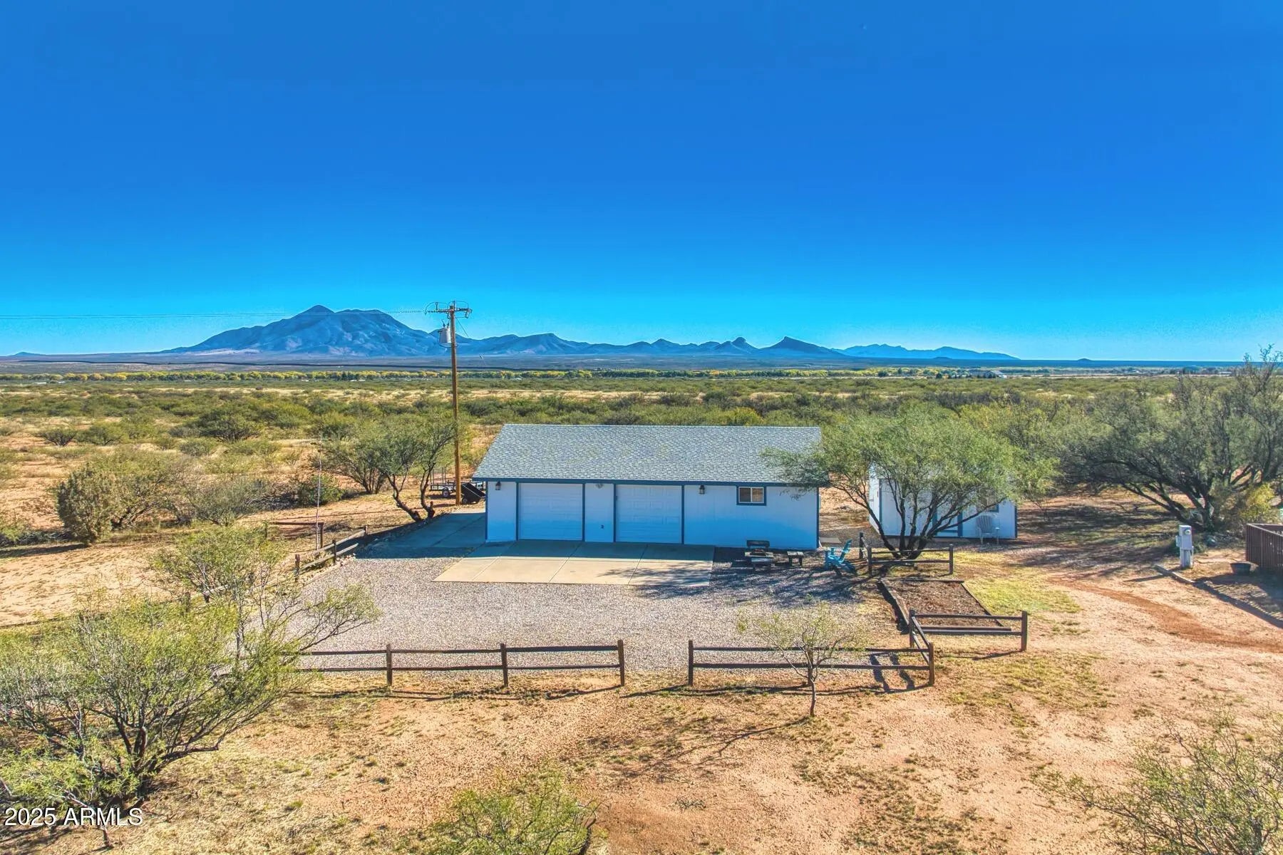 Fantastic 10 acre property with 360 views very well maintained with space for horses and more activities like riding your quads and room for many more pets. Home and garage has new paint. Three bedrooms split floor plan two full bathrooms. Bathrooms have new walnut vanities with granite countertops. Main suite double sinks, hallway one sink with new laminate flooing. Kitchen recently updated with nice Oak cabinetry ,granite countertops, flooring and stainless appliances. Kitchen nook large. Dream of garage insulated, drywall, with skylights for two cars plus separate side of work shop complete with electric and more. Also, has extra storage shed. Truly well maintained and move in ready.