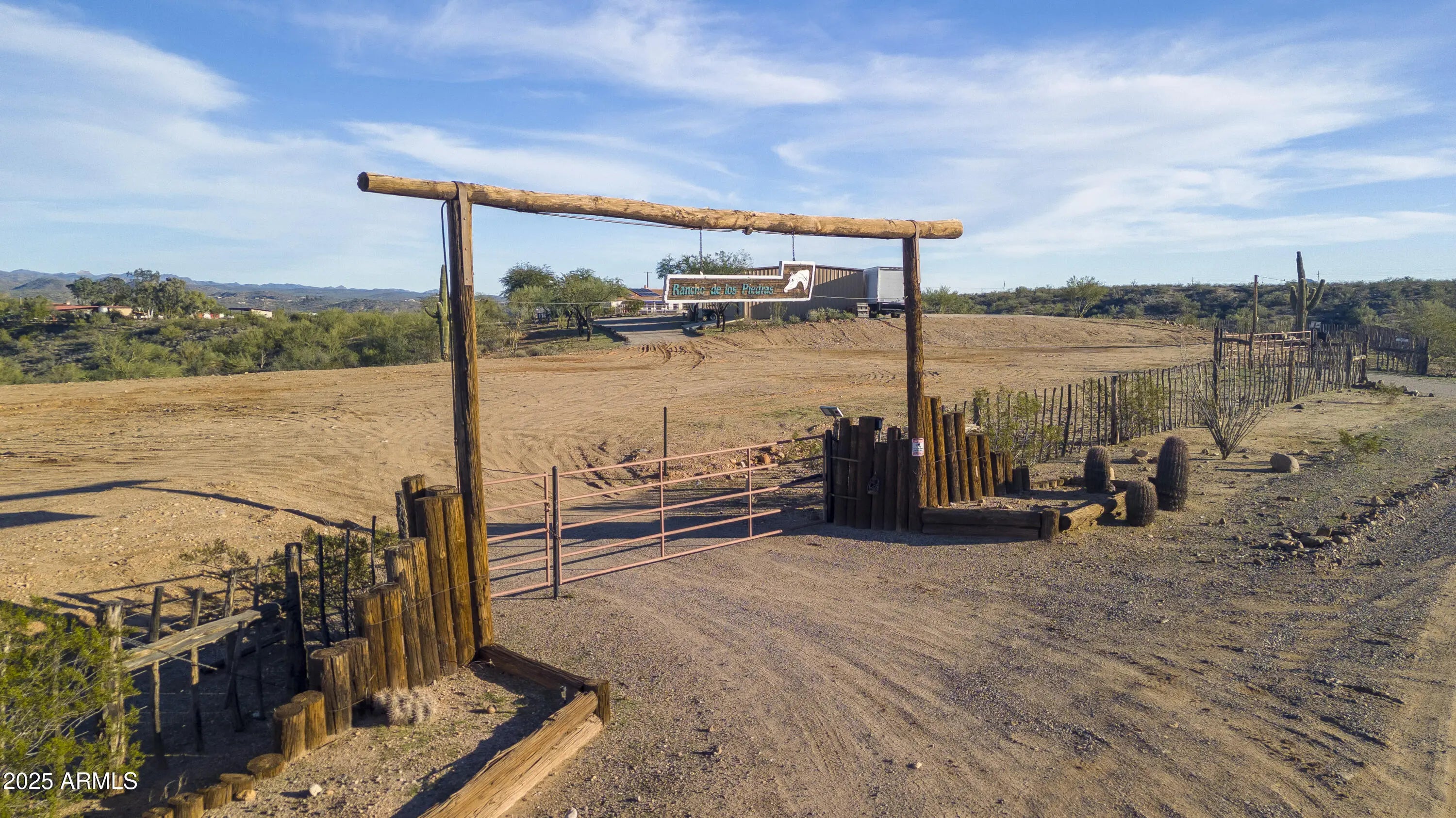 Discover the pinnacle of Arizona living with this elite equestrian estate, set on 8+ acres just minutes from the charm of downtown Wickenburg and surrounded by miles of scenic desert trails and breathtaking mountain views. This 2,736 sq ft custom home welcomes you with vaulted ceilings, warm fireplaces, and two private suites. Two AC units, a PRIVATE WELL and solar system are just a few of the thoughtful energy efficient upgrades to this custom home. Equine enthusiasts will love the 4-stall breezeway barn with hay storage, tack/laundry room, and a cozy barn casita, while a spacious shop and expansive grounds offer endless possibilities for hobbies or recreation. Every corner of this estate reflects craftsmanship, comfort, and luxury, creating a serene desert sanctuary.