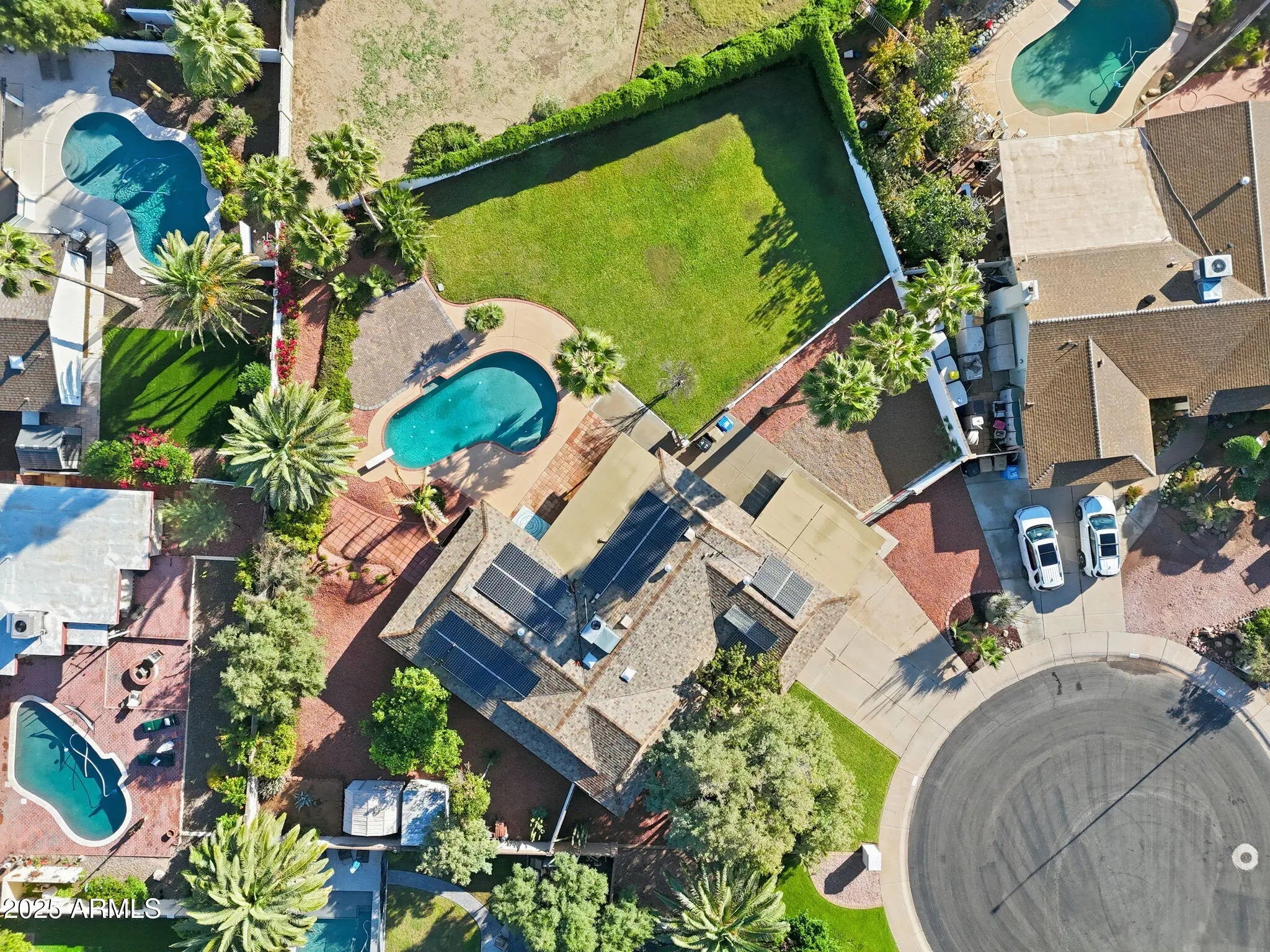 Set on an oversized cul de sac lot in one of the most convenient pockets of Scottsdale, this home offers a blend of comfort, updates and everyday livability. The layout feels open and easy, with natural light throughout and a remodeled primary bathroom that brings a fresh, modern touch. Recent upgrades, including newer windows and air conditioning, add peace of mind, and owned solar panels help keep energy costs in check. Out back, a generous yard with RV gate creates room to unwind and entertain with a newly added brick patio and a sparkling pool with an added diving board. There is plenty of space to relax, entertain or simply enjoy the privacy of the setting. All of this sits just minutes from Kierland Commons, Scottsdale Quarter and highly regarded schools, giving the home a location that truly elevates the lifestyle. This is a property that offers the breathing room of a quiet cul de sac combined with the convenience of being close to everything that makes this area so desirable.
