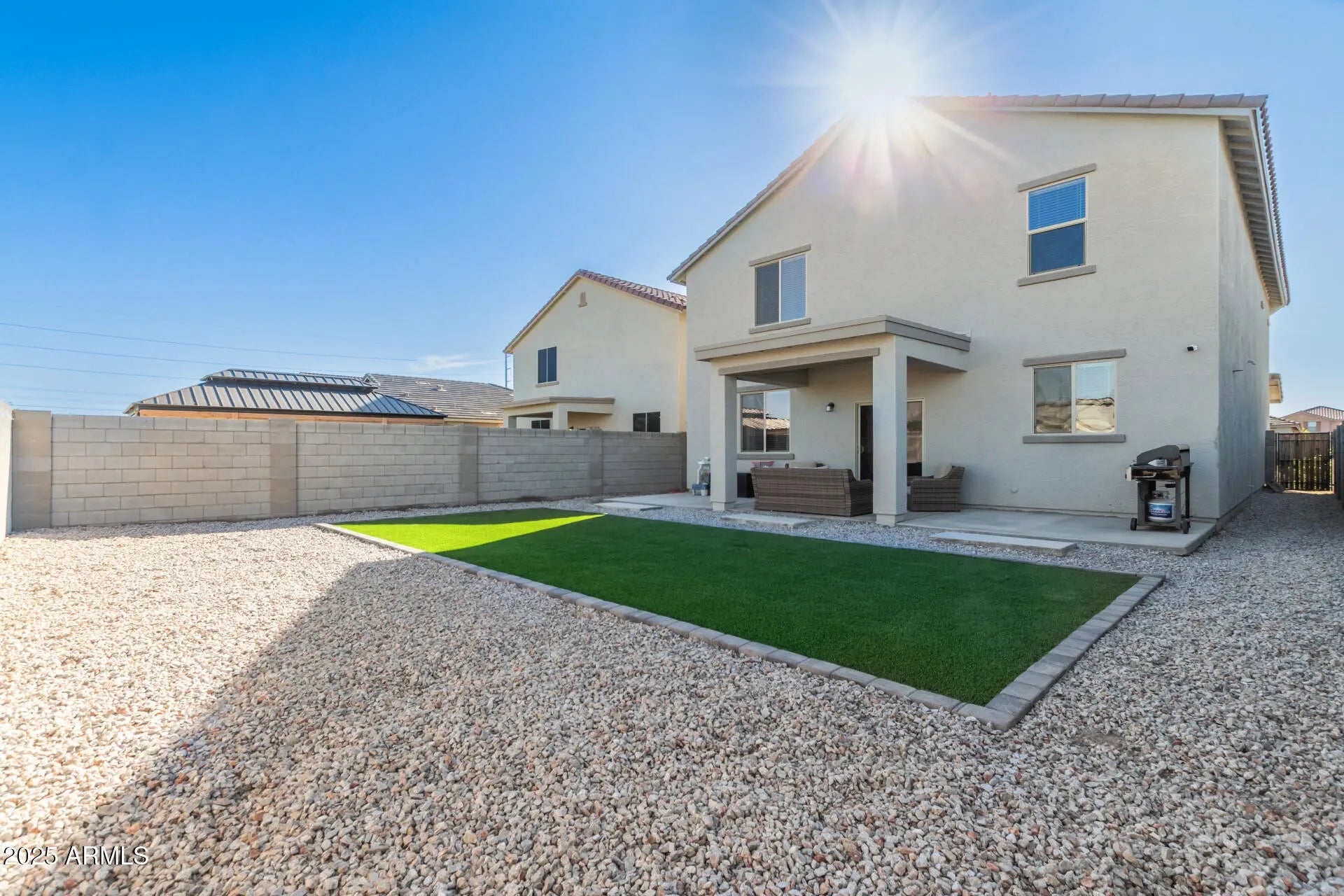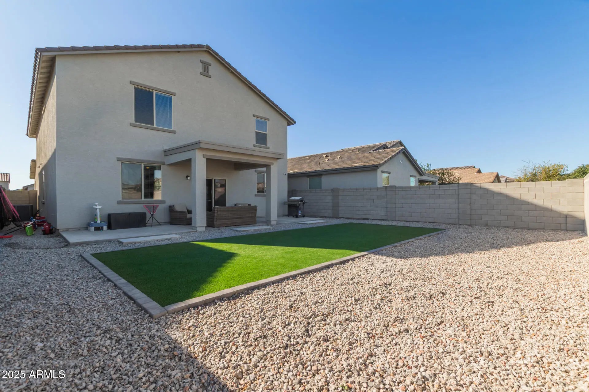 This stunning 4 Bedroom + Den, 3 Bathroom, 3,017 sq ft residence is only one year old and shines like new! Step inside to a bright, open floor plan that effortlessly blends modern style with sophisticated finishes throughout. Beautiful stair railings elevate the entry and create a spacious, airy feel. The chef-inspired kitchen is a true showstopper—featuring quartz countertops, stainless-steel appliances, and a layout designed for both everyday living and entertaining. Your backyard oasis awaits! The lush artificial turf, and no neighbors behind means unmatched privacy and the ideal setting for gatherings under the Arizona sky. Upstairs, a massive loft offers endless possibilitiesgame room, theater, playroom, or the ultimate lounge. Situated just moments from the Loop 303 and Northern Ave, this location combines convenience with exceptional community living.