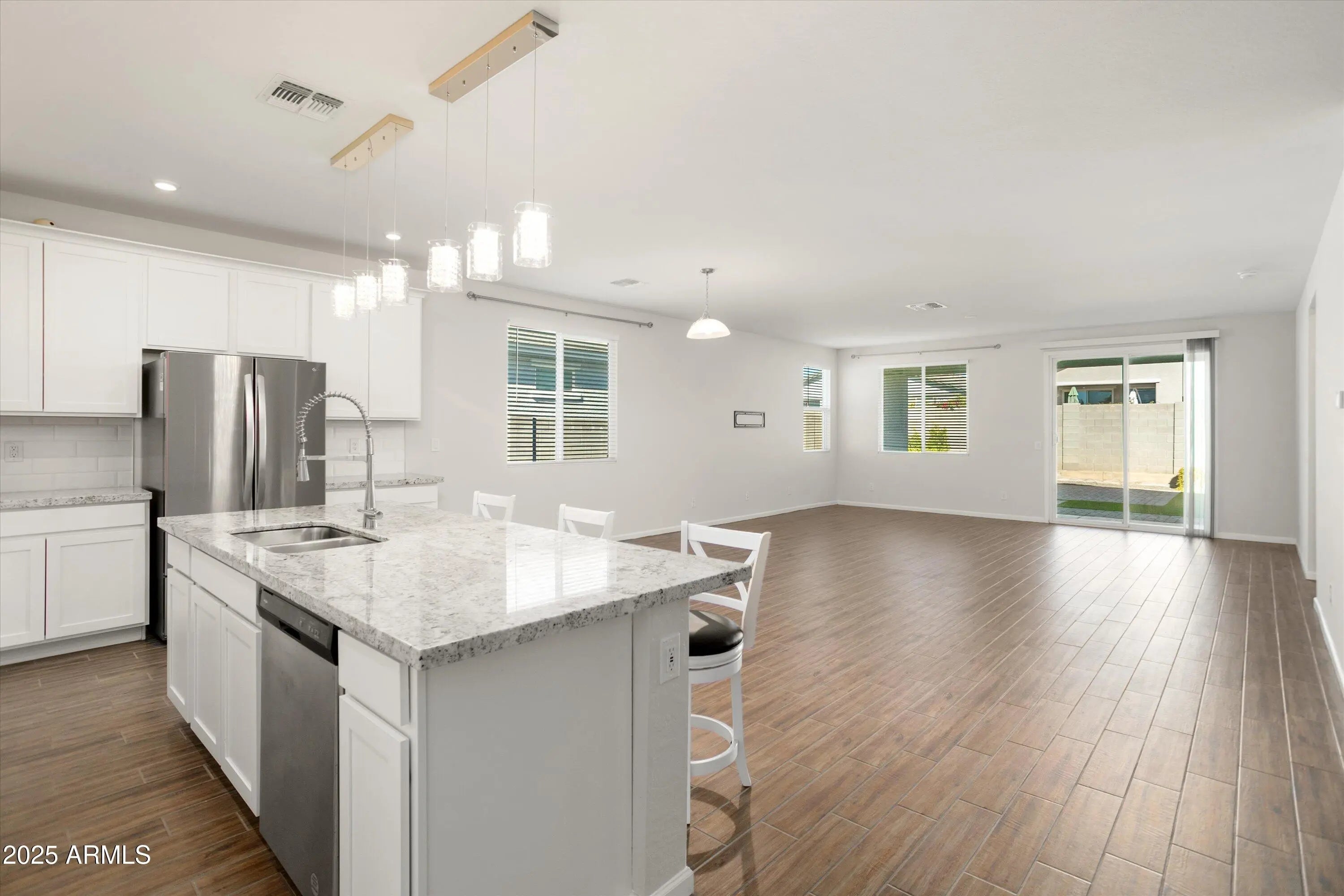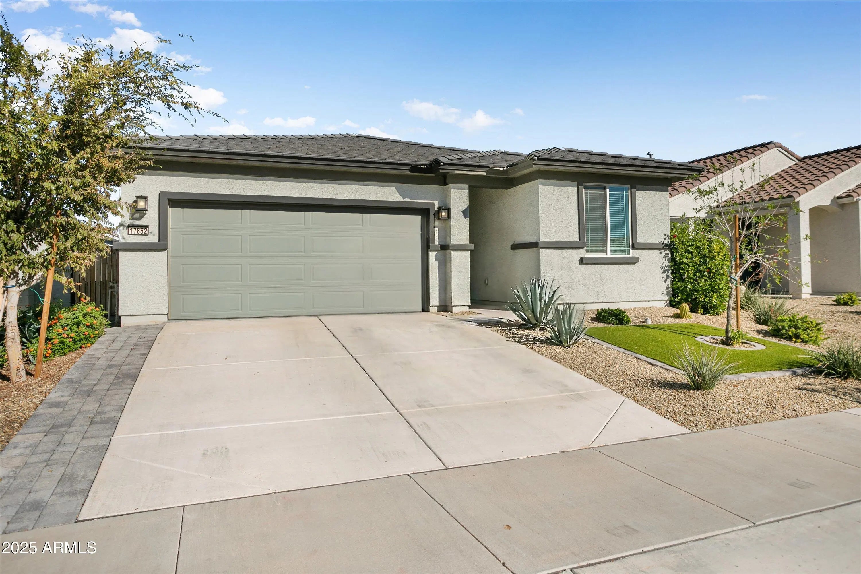 This beautiful 1782 sf home has been lovingly maintained, looks better than new and is located in the master planned North Copper Canyon community! The well designed 3 bed/2 bath open great room floorplan offers a cohesive living space. Warm wood-look tile flows through all footpaths with upgr carpet in bedrooms. The island kitchen has tall white cabinets, rich granite counters, white subway tile backsplash, stainless steel appliances, a nice pantry and pretty pendant lights over the breakfast bar! The bedrooms are split providing a private primary retreat. The North facing fully fenced backyard offers a covered patio, extensive use of pavers, the nice green artificial turf needs no mowing, and low maintenance plants. Plan to see this special home before it's too late!