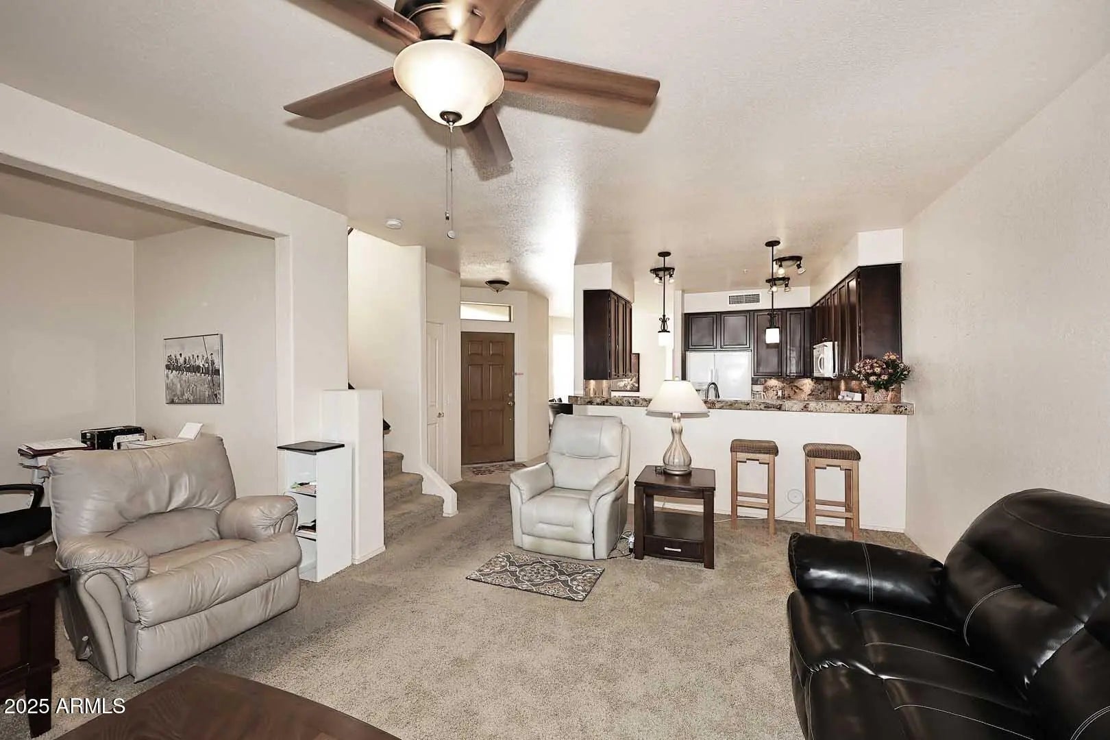 SEE THIS GREAT UNIT IN THIS GATED COMMUNITY. FANTASTIC BREATHTAKING VIEWS OF MOUNTAINS. 3 BEDROOMS WITH 2 1/2 BATHS, PRIMARY BEDROOM HAS PRIVATE BALCONY AND GREAT VIEWS OF 4 PEAKS. WITH PRIVATE BATH. UPDATED KITCHEN COUNTERS AND CABINETS. BOTH UPSTAIRS BATHS HAVE UPDATED COUNTERS. EXTRA SPACE IN THE LIVING ROOM AREA WOULD BE GREAT FOR OFFICE SPACE OR MISC. PATIO OFF LIVING ROOM/KITCHEN AREA.