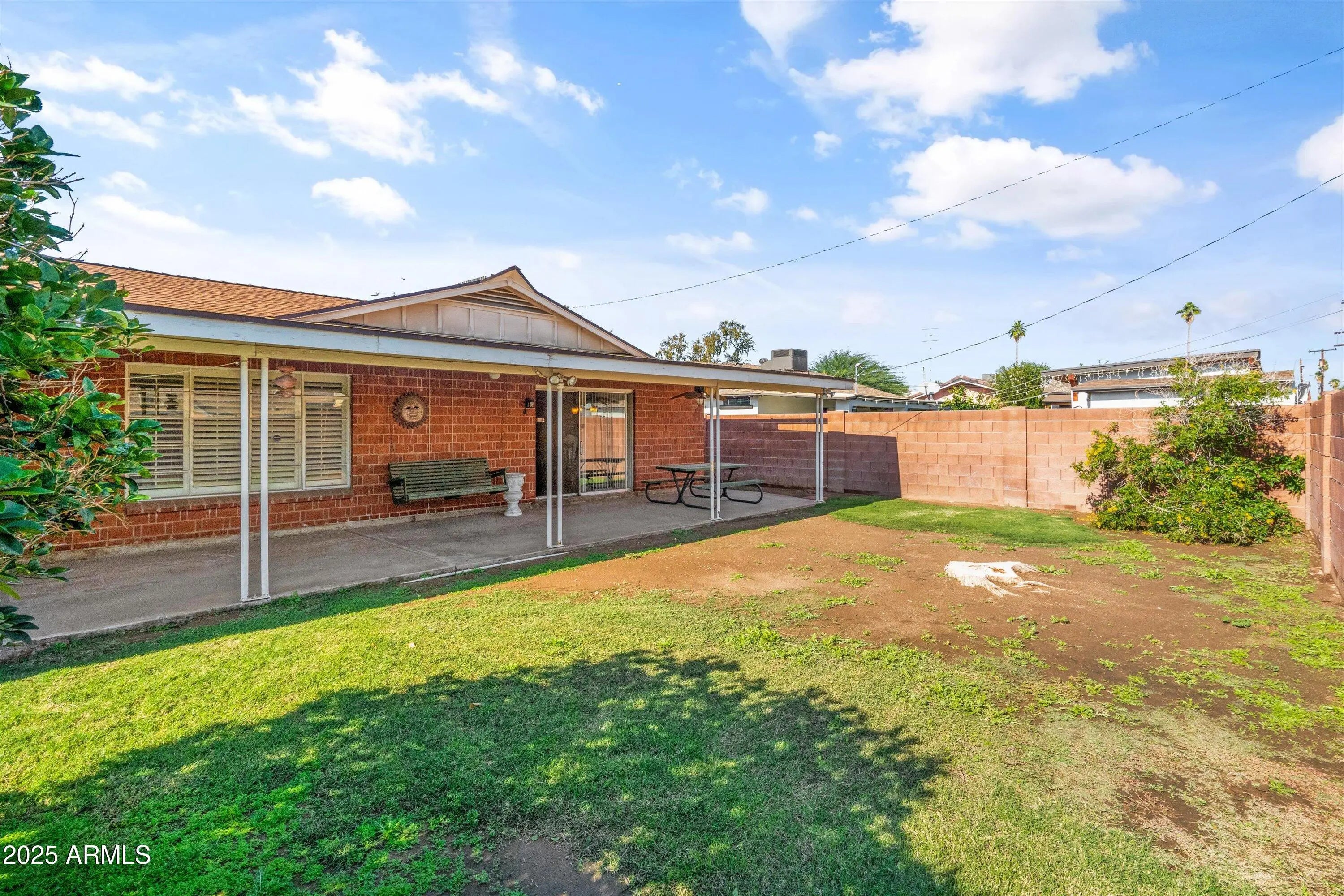 Charming 3 Bedroom 2 bathroom Brick Home that offers blend of comfort, functionality and historic appeal. The inviting floor plan features spacious living areas ideal for both everyday living and entertaining. The kitchen opens seamlessly to the main living space and offers generous counter space and ample cabinetry. Well-sized bedrooms provide comfort and privacy. Step outside to a nice sized backyard with plenty of space for outdoor dining, gardening, or relaxing under the Arizona sky. Large extended covered patio and backyard also boast a good sized storage shed. Conveniently located near schools, shopping, and major freeway access. This home delivers both comfort and convenience. Don't miss out!