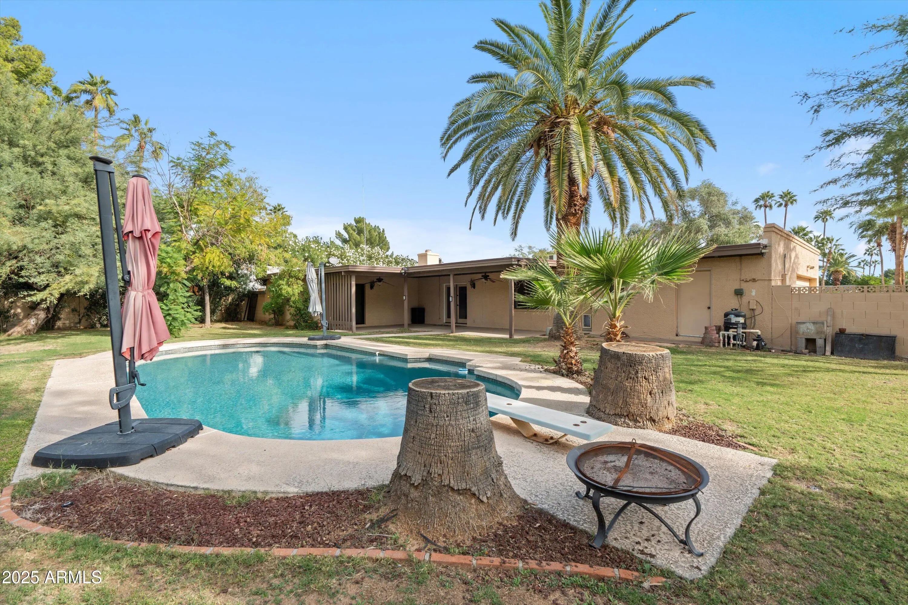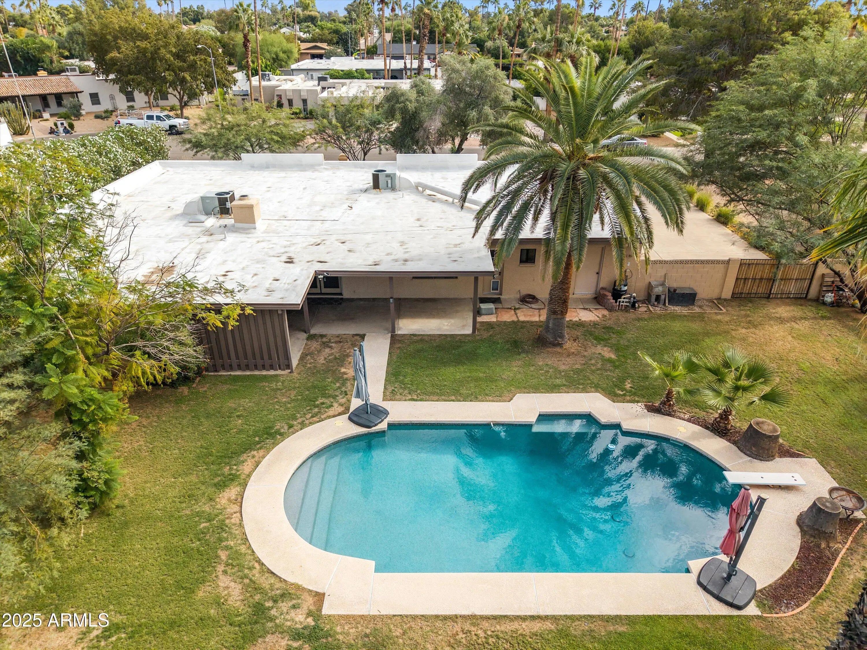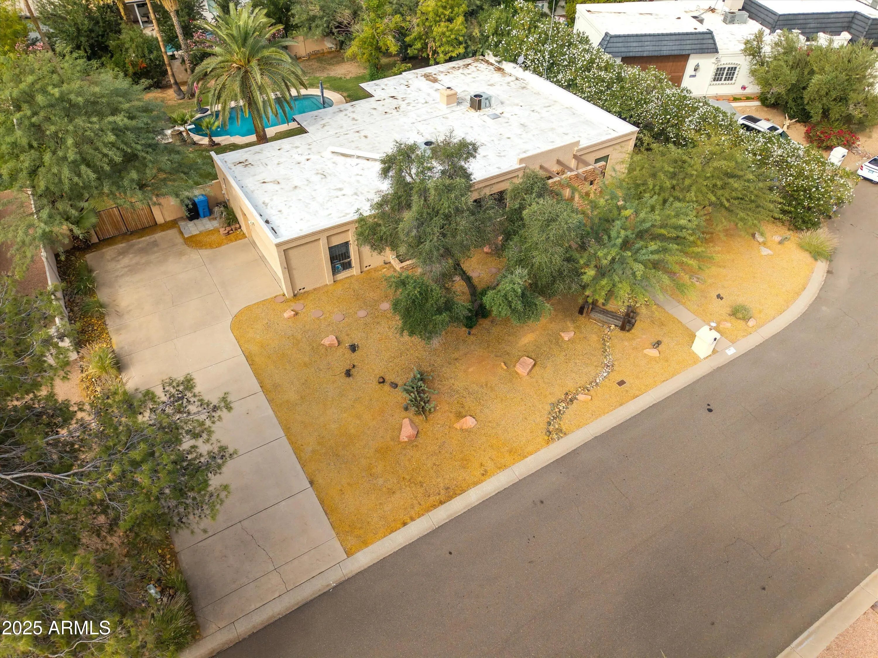 Beautiful single-level home situated on a large 0.347-acre lot on a quiet cul-de-sac in the highly desired 85254 ''Magic ZIP'' area. No HOA. This 2,465 sq ft home features 4 bedrooms and 2.5 baths, offering both formal living and dining rooms, along with a spacious family room with a stacked-stone fireplace. The remodeled kitchen includes an island, updated cabinetry, and countertops. Bathrooms and showers have also been tastefully updated. Tile flooring is found throughout the kitchen, family room, and bathrooms. RV gate allows for boat or RV access. The expansive backyard offers tall palms, a diving pool with a newer Pebble Tec finish, and generous space to design your ideal outdoor living environment. New roof in 2024. Attached 2-car garage with additional storage. Conveniently located near top-rated Paradise Valley schools, dining, and shopping. A great opportunity to personalize and finalize the finishing touches to match your architectural style and vision.