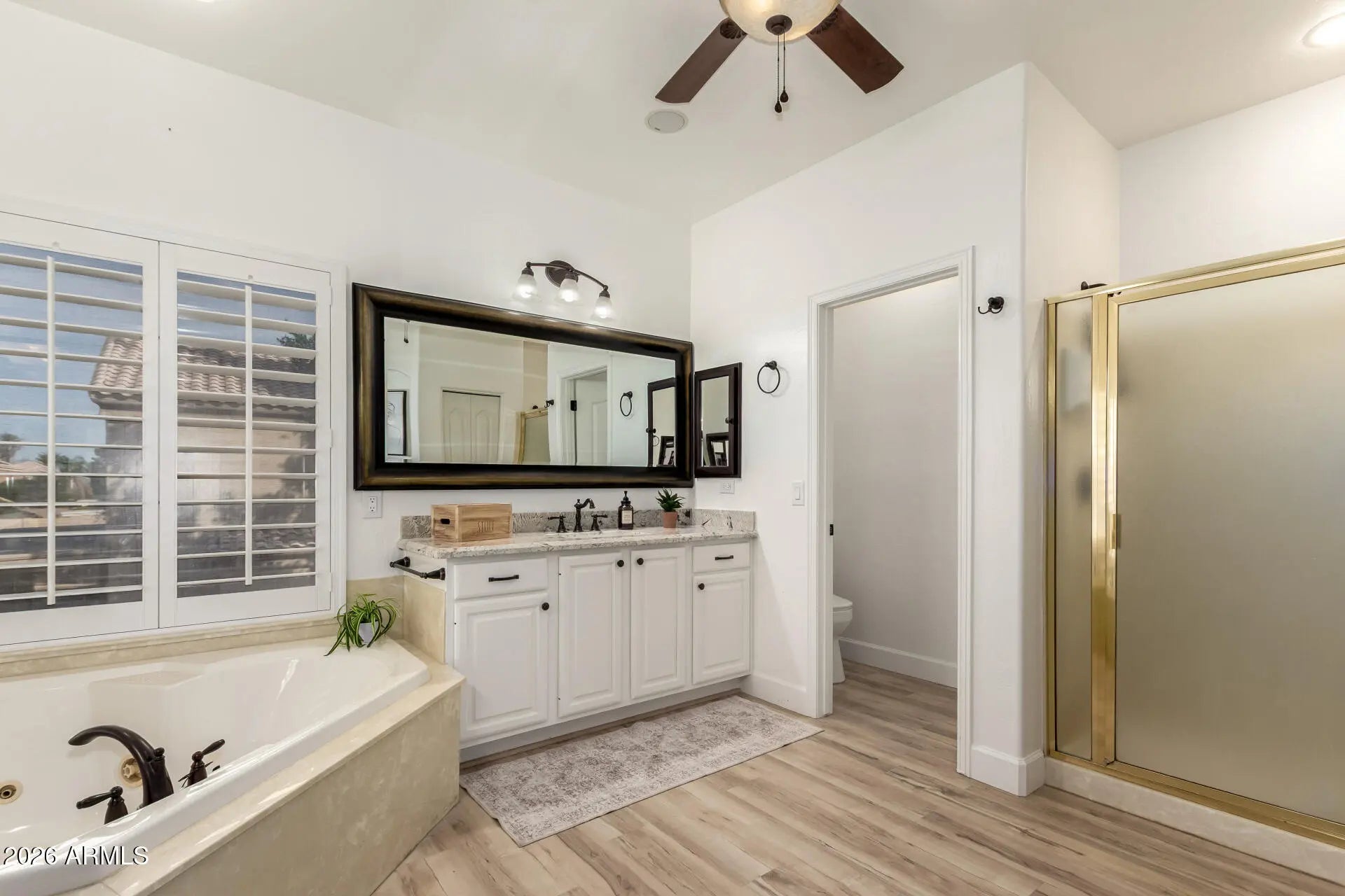 BEST VALUE IN THE NEIGHBORHOOD! Recently reduced $20,000 and SELLER WILL PROVIDE up to a $15,000 concession toward buyer's interest rate buy-down or closing costs with acceptable offer! BEAUTIFULLY REFRESHED 4-bedroom home with LARGE LOFT and extensive NEW upgrades: WOOD-like flooring, Plantation Shutters, Granite Counters, NEW AC units, and PREMIUM synthetic turf front and back. Soaring ceilings, bay window, and fireplace create a warm welcome. Ideal floorplan includes a sought-after DOWNSTAIRS BEDROOM with private ensuite bath. Spacious family room with indoor-outdoor flow. Oversized owner's suite with dual sinks. Price improved + seller credit = unmatched value. Move fast. With Separate Tub & Shower! Spend peaceful afternoons in the enchanting backyard, which includes a full-length covered patio, a storage shed, and pristine artificial turf, and beautiful Citrus Trees. Make this gem yours today!