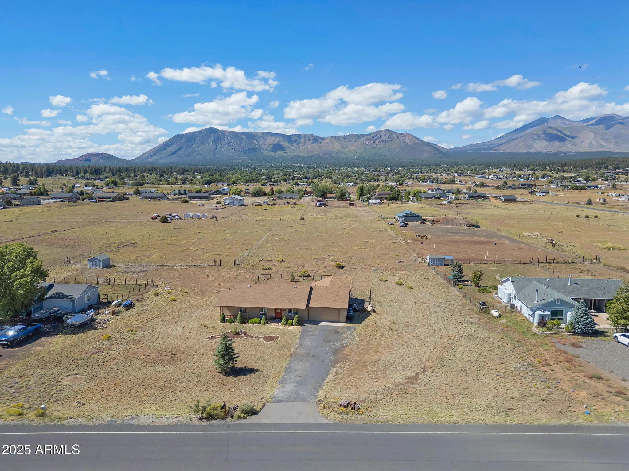 This is it! Super cute and updated 3 bedroom, 2 bath home that is totally move in ready. Just perfect at 1,340 sq ft of living space and sitting on 2.39 acres with a 2 car garage. The covered patio offers unobstructed views of the peaks. Primary bedroom has 2 walk in closets, dual sinks in bathroom and ceiling fans are installed throughout the home. A bonus office, located just off the laundry room and garage, makes the perfect space for working from home, having an art space, game room or managing daily projects. A few recent home improvements include a new on demand water heater, a home water filtration system, updated dimmable recessed lighting in kitchen and hallway, newer furnace and stylish hallway sconces that add a nice warm ambiance. Step outside to your partially covered patio where you can sip your morning coffee, watch the sunset, or just take in the peace and quiet of nature. Located in a friendly neighborhood close to Timberline Tavern, Old Caves Crater, Elden Pueblo Ruins, and endless hiking and ORV trails leading into the Coconino National Forest adventure and relaxation are always within reach. Come see why this home is the perfect blend of country charm, modern convenience, and Flagstaff beauty.
