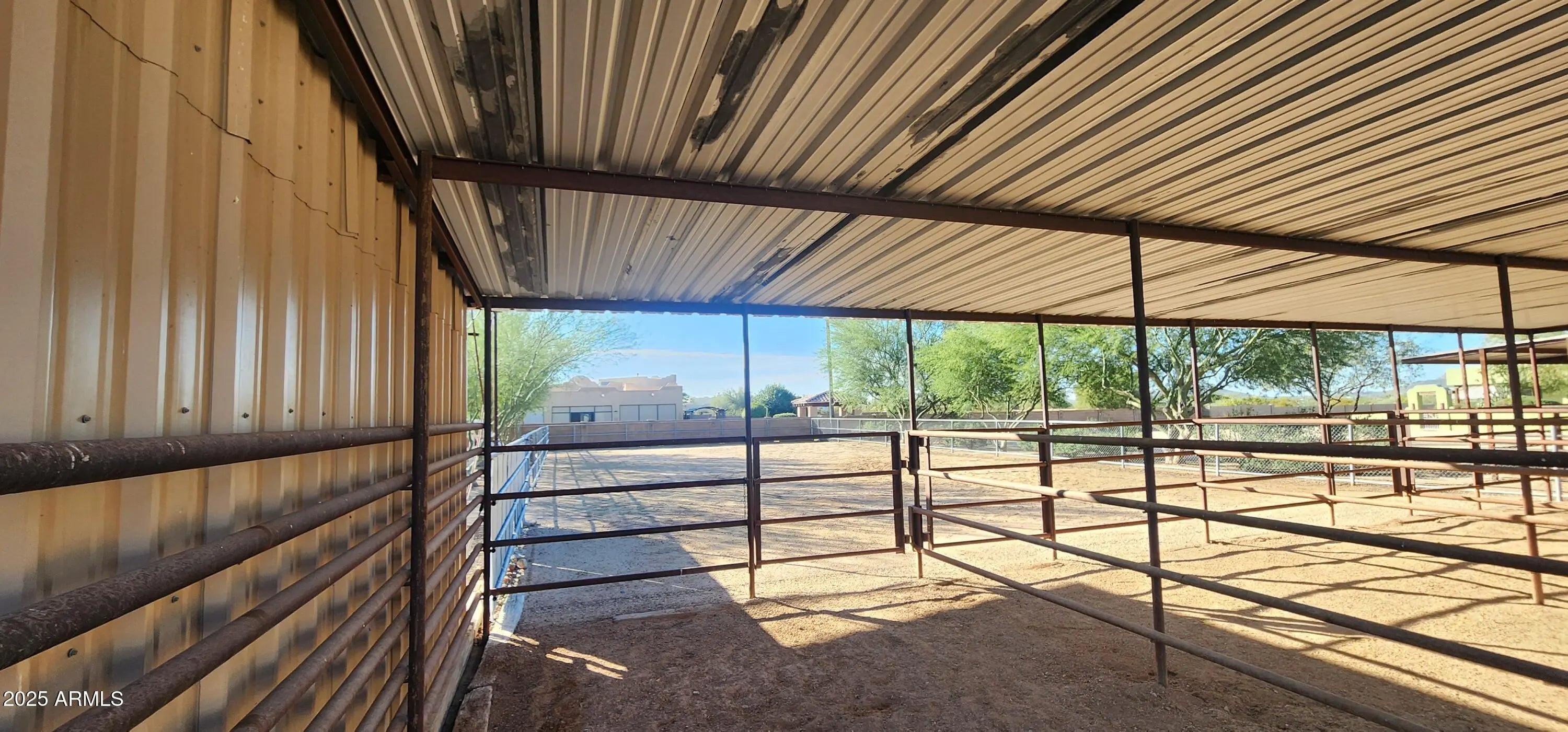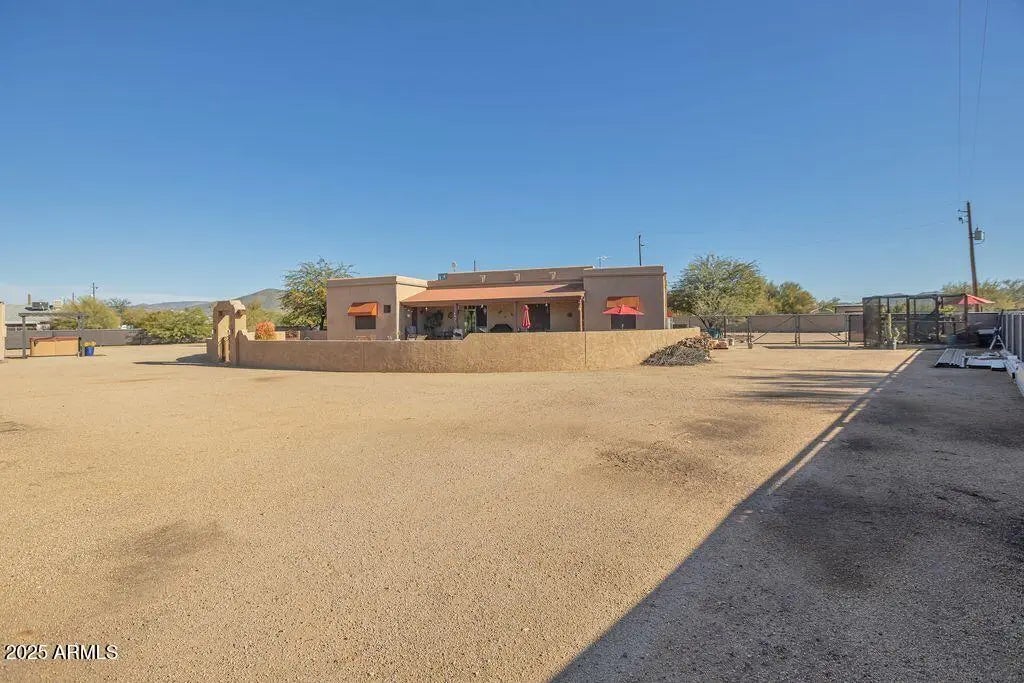 Exceptional Desert Hills property offering space, privacy, and unmatched versatility! This beautifully maintained home sits on an expansive lot and features a 700 sq ft fully equipped casita, ideal for multigenerational living, guests, or rental income (currently Airbnb). The main residence showcases an inviting open floor plan (12' ceiling great room), granite counters and travertine floors. Open kitchen. Several fruit trees. Equestrian lovers will appreciate the lighted 4 horse stalls w/auto water, large turnout area with sprayers for horses, hay barn. Plenty of room for trailers and equipment with easy access. The property also includes RV parking for up to 3 units plus a full 50 amp RV hookup (water, sewer, and electric) for an additional RV—perfect for visitors or extended stays The casita offers its own kitchen, living room, bedroom, bathroom, laundry and private entrance. Main house additional items: bedrooms have 10' ceilings, surround sound inside and outside, shade covers for back patio, custom wrought iron gates, mister system on patio. Interior recently painted. Located in the highly desirable Desert Hills community, this home offers quiet rural living just minutes from shopping, dining, and freeway access. A rare opportunity to own a truly flexible property with room for family, animals, and all your toys. There are 5 250 gallon tanks to collect rainwater. 20 minutes to TSMC, 45 minutes to Wickenburg, and just minutes to dozens of riding trails. See list of upgrades in the documents tab.