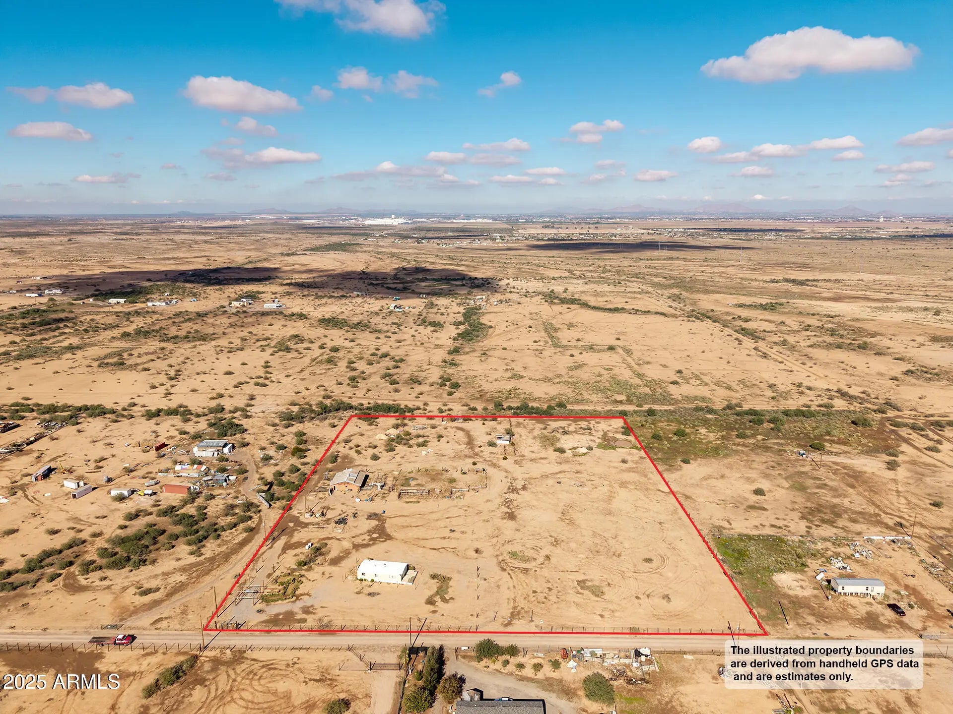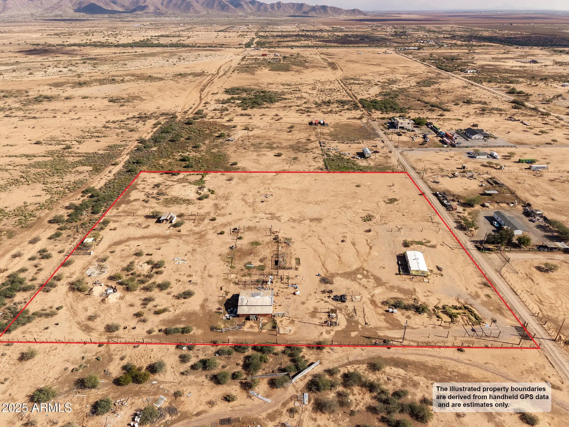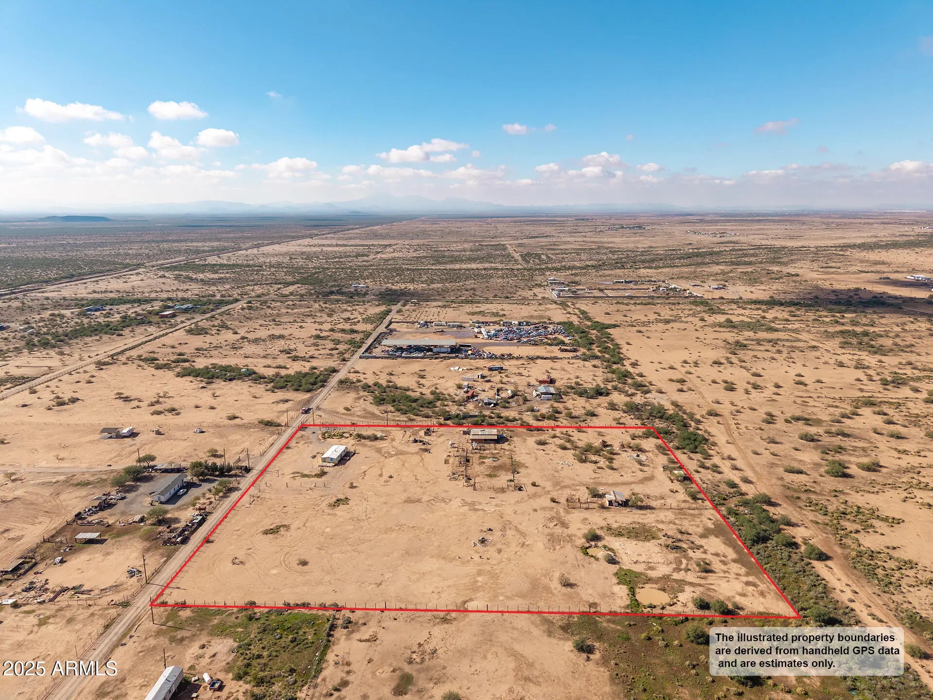 Discover the wide-open possibilities of this 7.8-acre property, offering peaceful desert living with stunning mountain views and a quiet, rural setting. Existing mobile home and old barn structures are in as-is condition and given no value—the opportunity is truly in the land. With open terrain, natural desert vegetation, and plenty of room for animals, toys, or a custom build, this parcel is perfect for those seeking space and seclusion. Minutes to I-10 & I-8. Boundary lines shown are approximate; buyer to verify all details.