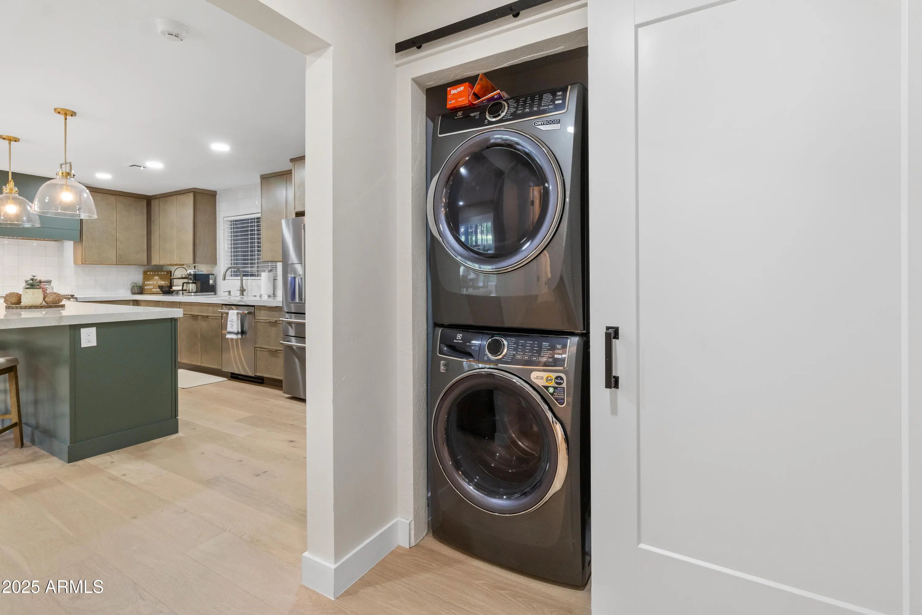Stacked Washer/Dryer, Dryer, Washer, Refrigerator, Built-in Microwave, Dishwasher, Disposal, Gas Range