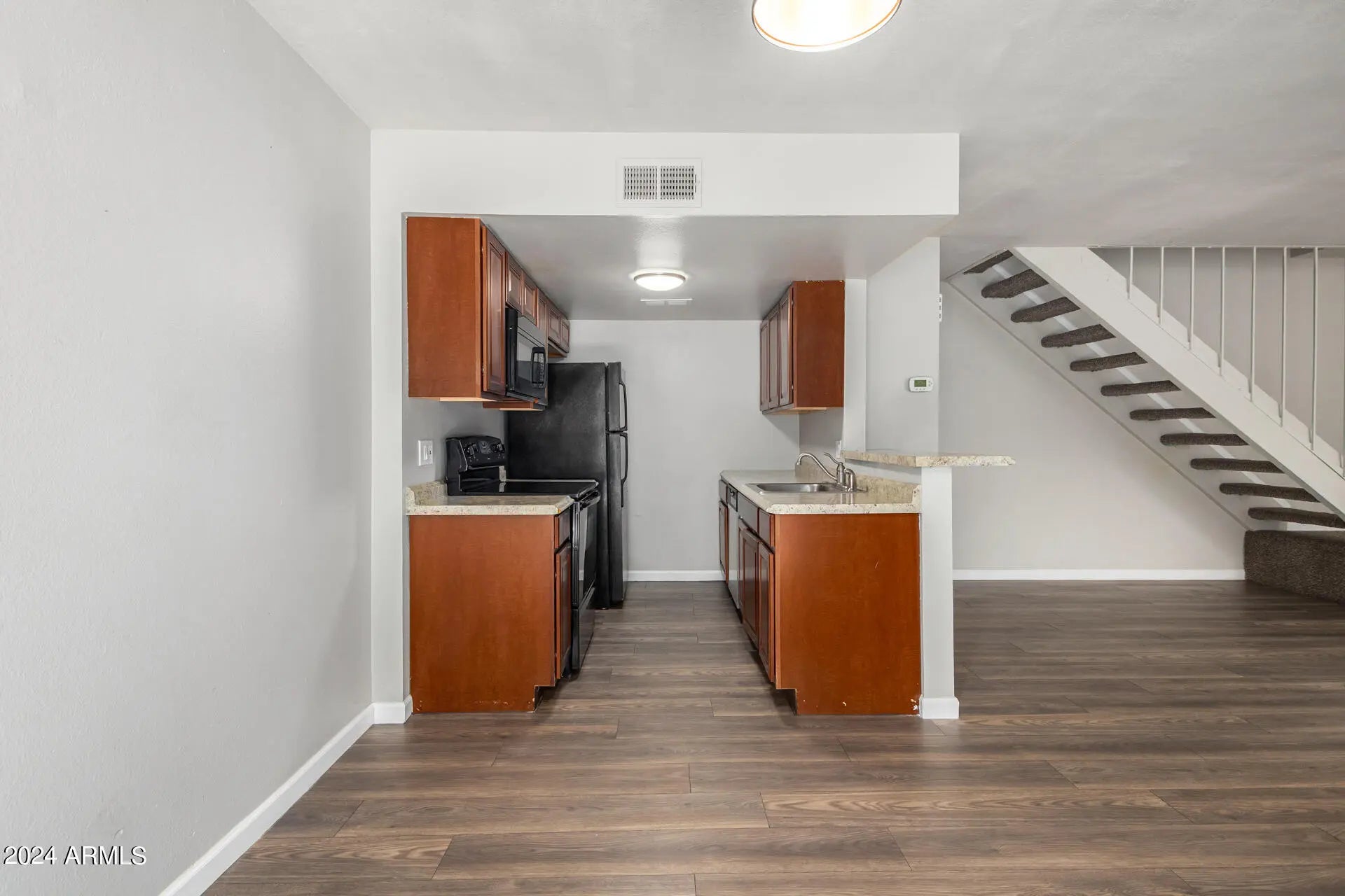 Upgraded 2 bed/1 bath unit. Both bedrooms upstairs. Pleasant patio for your morning coffee, playtime or gatherings. Kitchen is open to great room. Carport has a storage area. For your convenience a coin operated washer & dryer plus a community pool! Owner/Agent