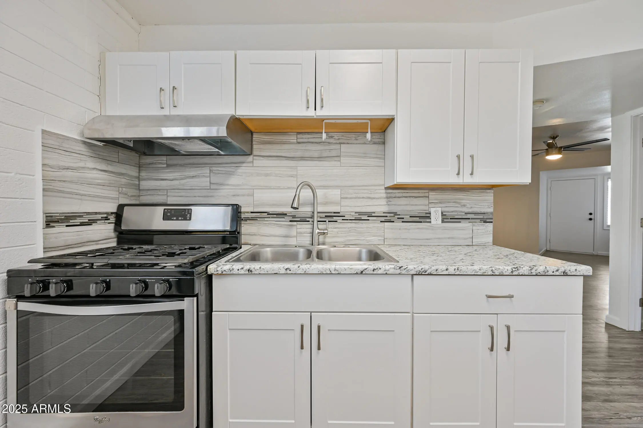 Cozy remodeled 2 bedroom 1 bath charmer in the Granada Terrace Apartments. Beautiful white kitchen cabinets, new flooring, stainless steel appliances and gorgeous tiled bath surround. Ceiling fans will keep you cool all summer! Grassy barbecue area where you can BBQ with friends and family. Don't miss out on this sweet deal! Coin operated Laundry on-site. $100.00 Flat fee for water and gas per month.
