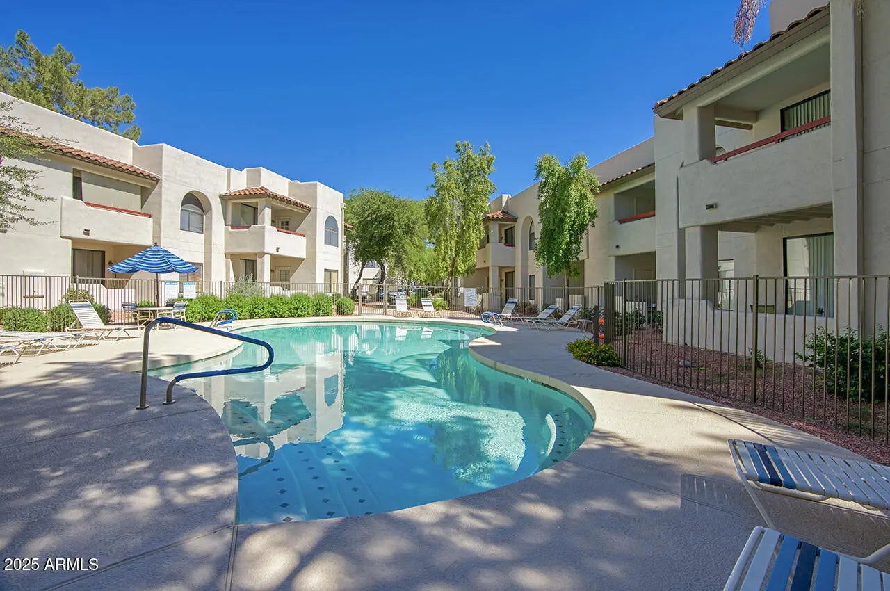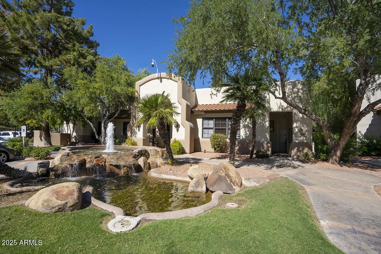 A rare find in Las Brisas, this ground level one bedroom offers the comfort and convenience everyone wants but seldom becomes available. Tucked in a quiet interior location, it features mature trees, peaceful courtyard views, BBQ and a relaxing private patio. Inside, the open layout feels bright and welcoming with a cozy fireplace, dining space, a well planned kitchen and a generous bedroom with a walk in closet and direct bath access. Enjoy easy single level living in one of North Central's most popular gated communities with three pools, spa, fitness center, tennis and pickleball courts, plus direct access to the canal path. A wonderful opportunity to enjoy a comfortable lifestyle in a prime location.