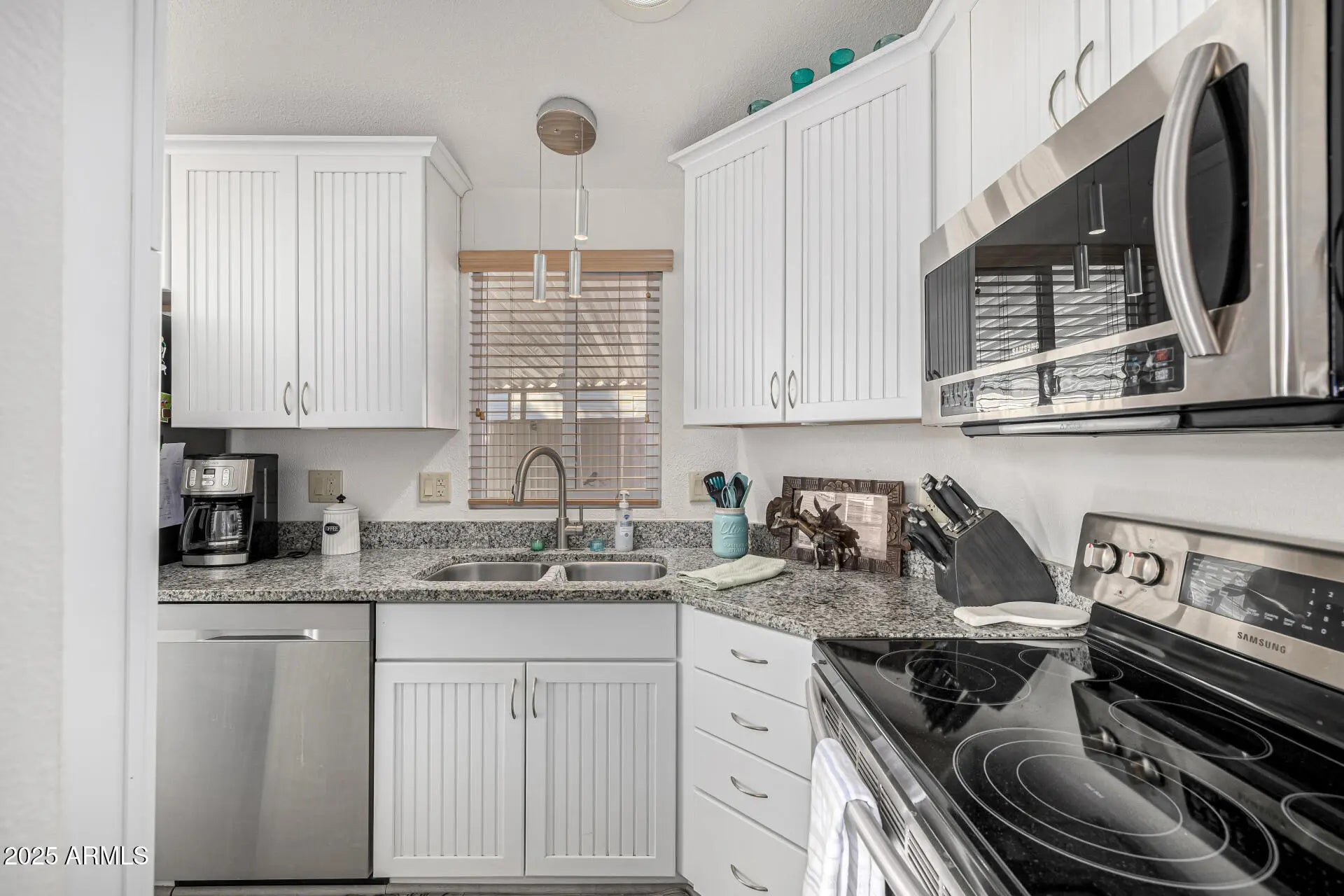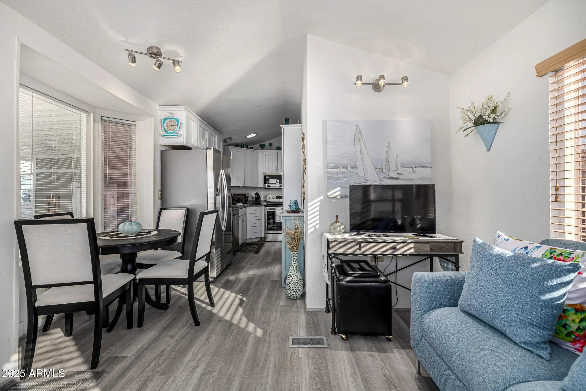 Charming Updated 1 Bedroom Home in Lost Dutchman Park - Move-In Ready! Discover comfortable, low-maintenance living in this beautifully updated 385 sq ft manufactured home located in the desirable Lost Dutchman Park community. Thoughtfully designed to maximize space and natural light, this home feels bright, airy, and welcoming from the moment you step inside. The living area features large windows, modern blinds, and stylish finishes that create an inviting space for relaxing or entertaining. The updated kitchen is a standout with its crisp white shaker cabinets, granite countertops, and stainless steel appliances, including a sleek range, microwave, and dishwasher. Contemporary lighting and well-placed pendants brighten the space and add a modern touch. The cozy bedroom offers great natural light and vaulted ceilings, while the bathroom has been refreshed with clean, modern finishes. Outside, you'll enjoy your own private back patio perfect for quiet mornings, grilling, or soaking in the sunshine. Residents of The Reserve at Lost Dutchman Park enjoy fantastic amenities including a community center, 2 swimming pools, 2 spas, pickle ball, fitness center and shuffle board all contributing to a relaxed, resort-style lifestyle. Whether you're looking for a full-time residence or a seasonal retreat this charming home is ready for you to move in and enjoy.