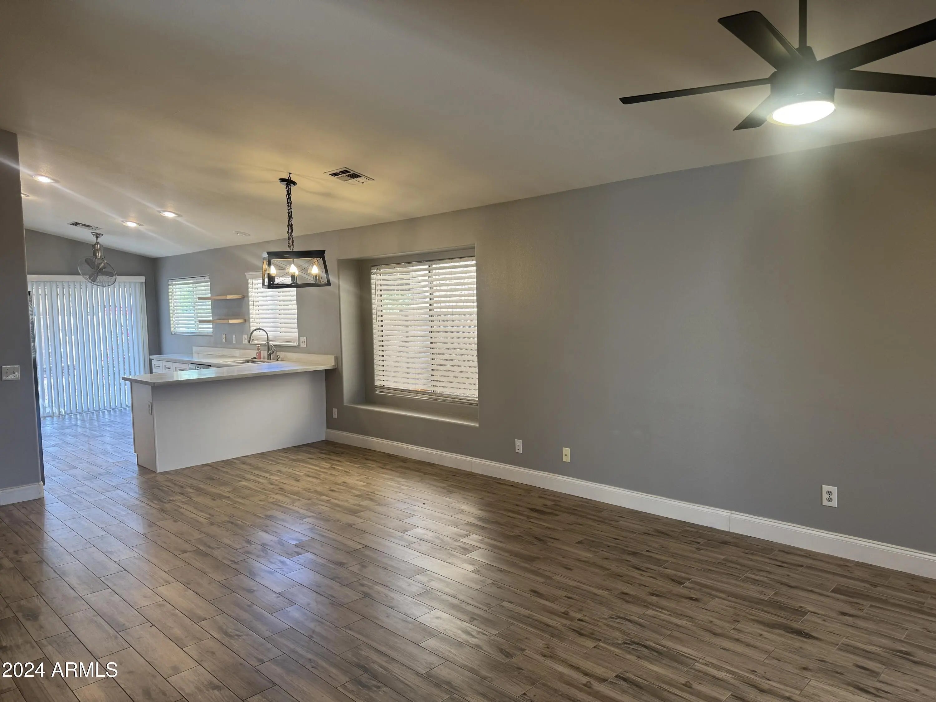 Great rental with 3 beds 2 baths and an open great room floor plan. Kitchen has been beautifully remodeled and is light and bright with white quartz counters and tons of natural light. Backyard features a long covered patio to enjoy our amazing weather. Other amazing features: no carpet in the home, fridge, washer and dryer included, landscaping included with rent, upgraded hardware and light fixtures throughout the home, and a beautiful walk-in shower in primary bath.