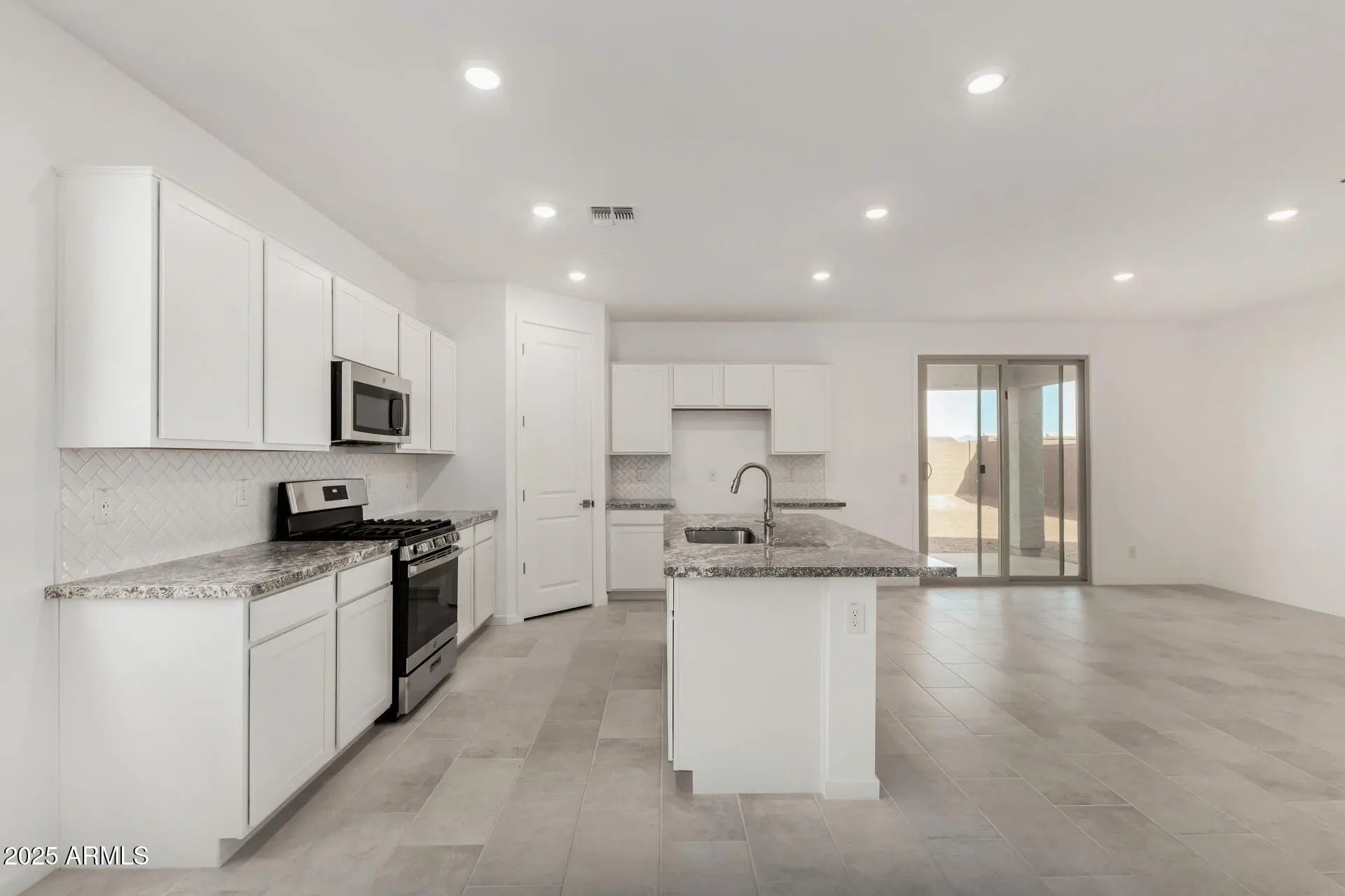 An opportunity you won't want to miss! This brand-new 3-bedroom, 2-bathroom home in Bella Vista Farms, offers an open-concept floor plan designed for modern living. This gorgeous home features 8' interior doors, white shaker cabinets, granite countertops, elegant white herringbone backsplash, large 12x24 tile throughout with carpet in only bedrooms and closets! Upgraded tile shower in primary! Anticipated for completion in August 2025! Residents will enjoy access to community amenities including a swimming pool, picnic area, splash park, playground, basketball court, volleyball court, and soccer field. Conveniently located near San Tan Mountain Regional Park, Queen Creek Marketplace, and local schools, this home provides a perfect blend of comfort and convenience in a vibrant community.