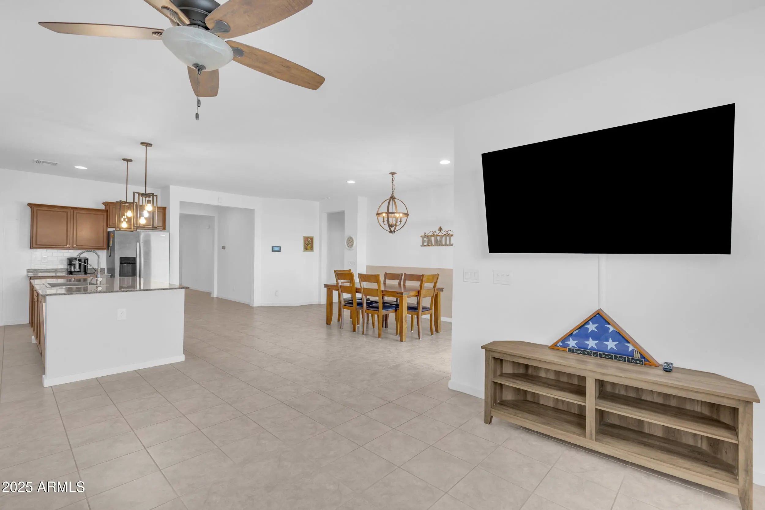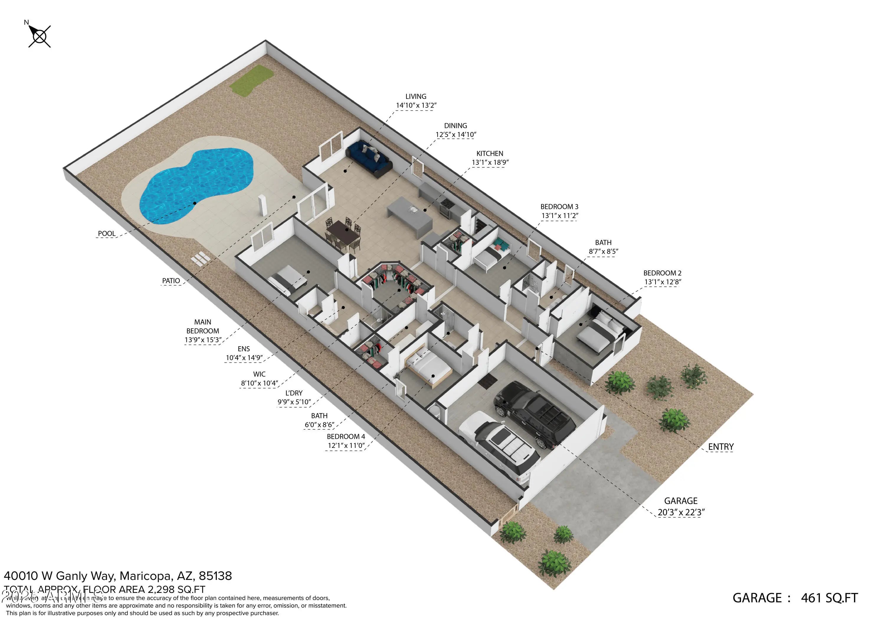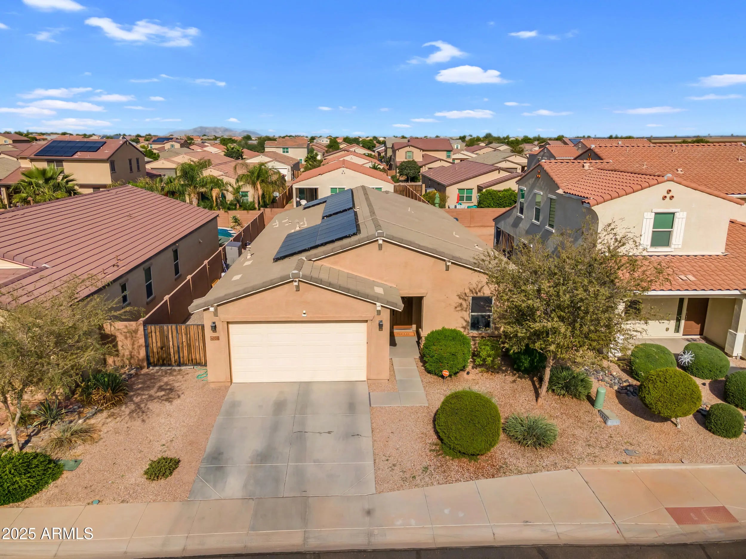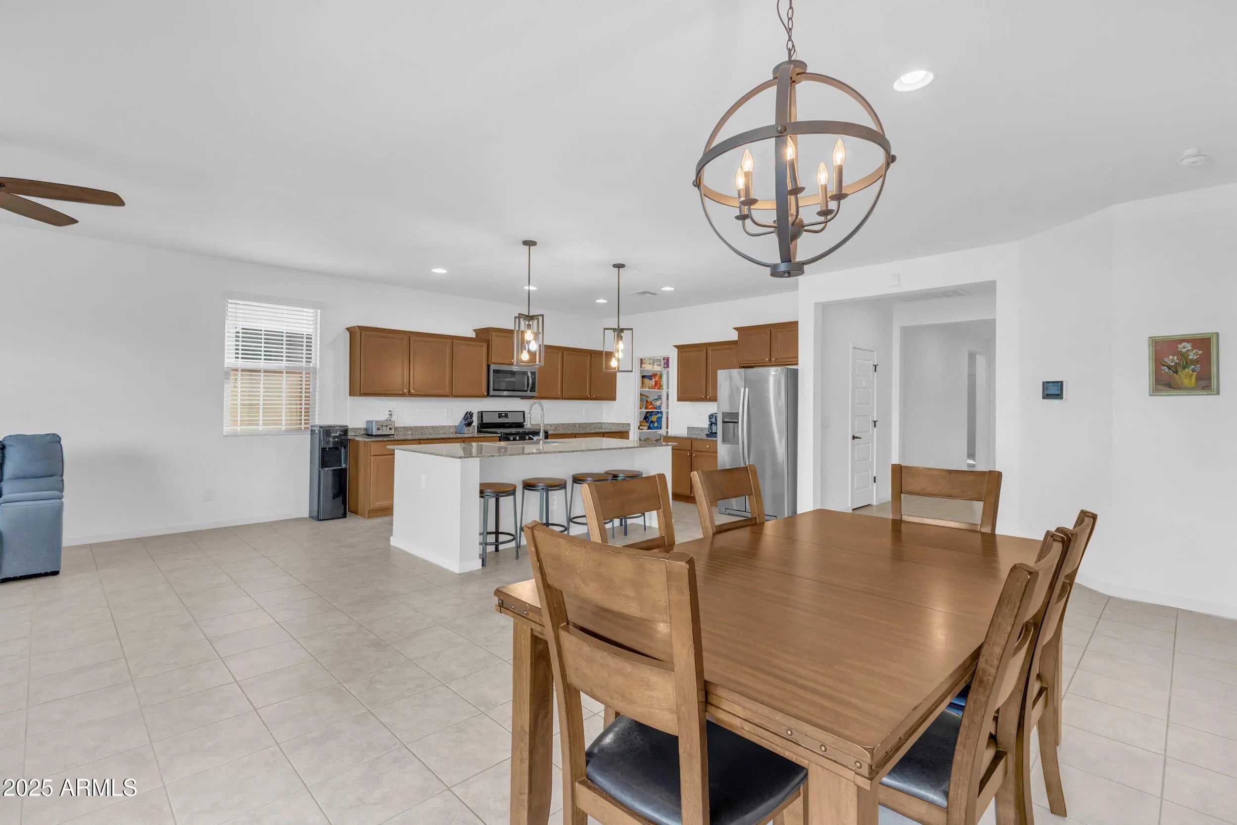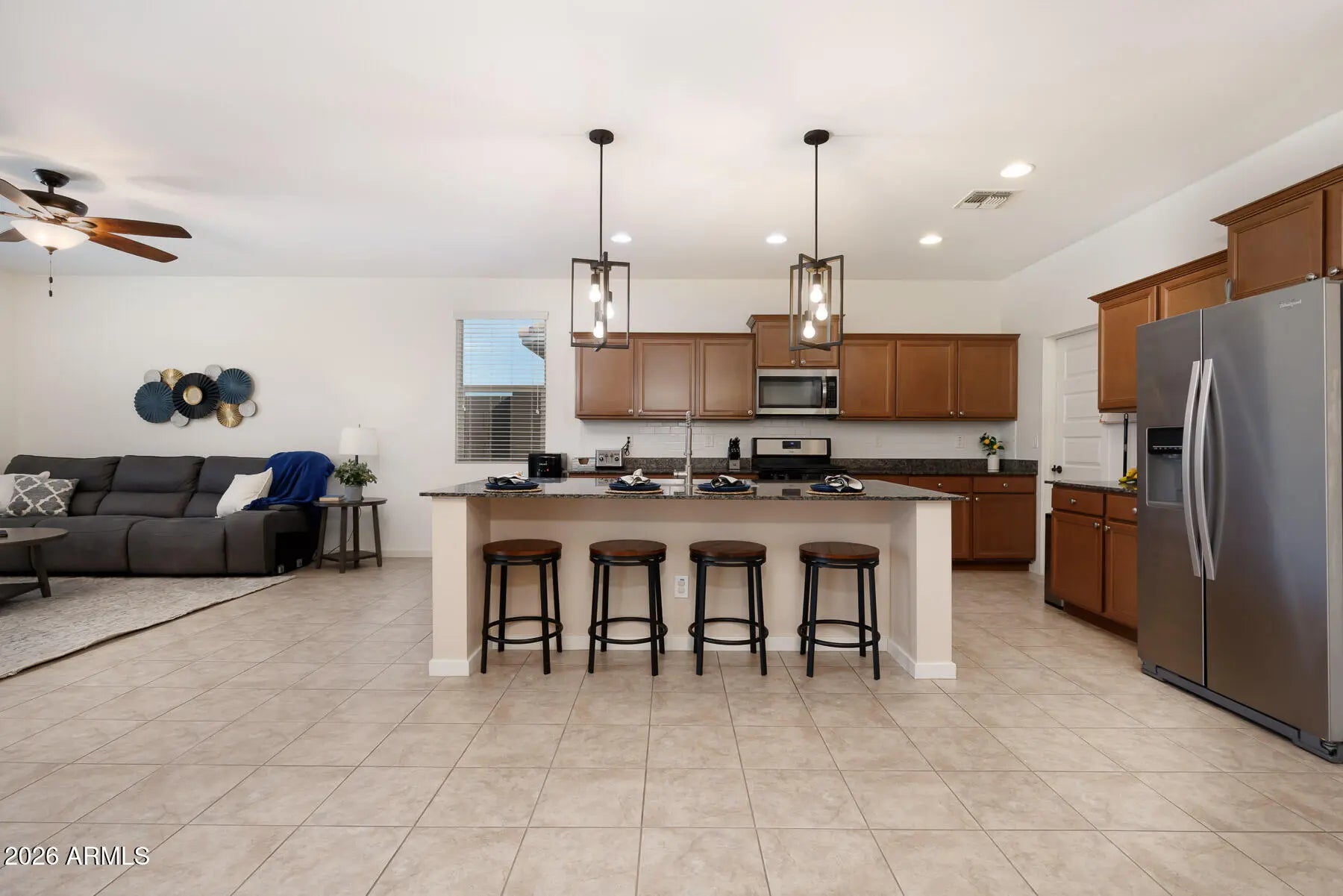 If a home with a PRIVATE POOL is at the top of your list, this one is a must see. This SINGLE STORY home offers 4 bedrooms, 3 bathrooms, and over 2,200 square feet of living space, built in 2018 with a modern and functional design. As you step inside, you'll appreciate the 9+ FOOT CEILINGS, oversized tile in all the right areas, and an OPEN CONCEPT FLOOR PLAN that's perfect for entertaining. The kitchen features GRANITE COUNTERTOPS, stainless steel appliances, a tile backsplash, and an OVERSIZED ISLAND that anchors the space beautifully. The home sits on a desirable lot with a SPARKLING POOL and COVERED PATIO, creating the ideal backyard for relaxing or hosting guests. Located in the highly sought after City of Maricopa, one of the FASTEST GROWING communities in the Greater Phoenix. area, you'll enjoy easy access to great restaurants, shopping, and healthcare, all just 35 minutes from downtown Phoenix.