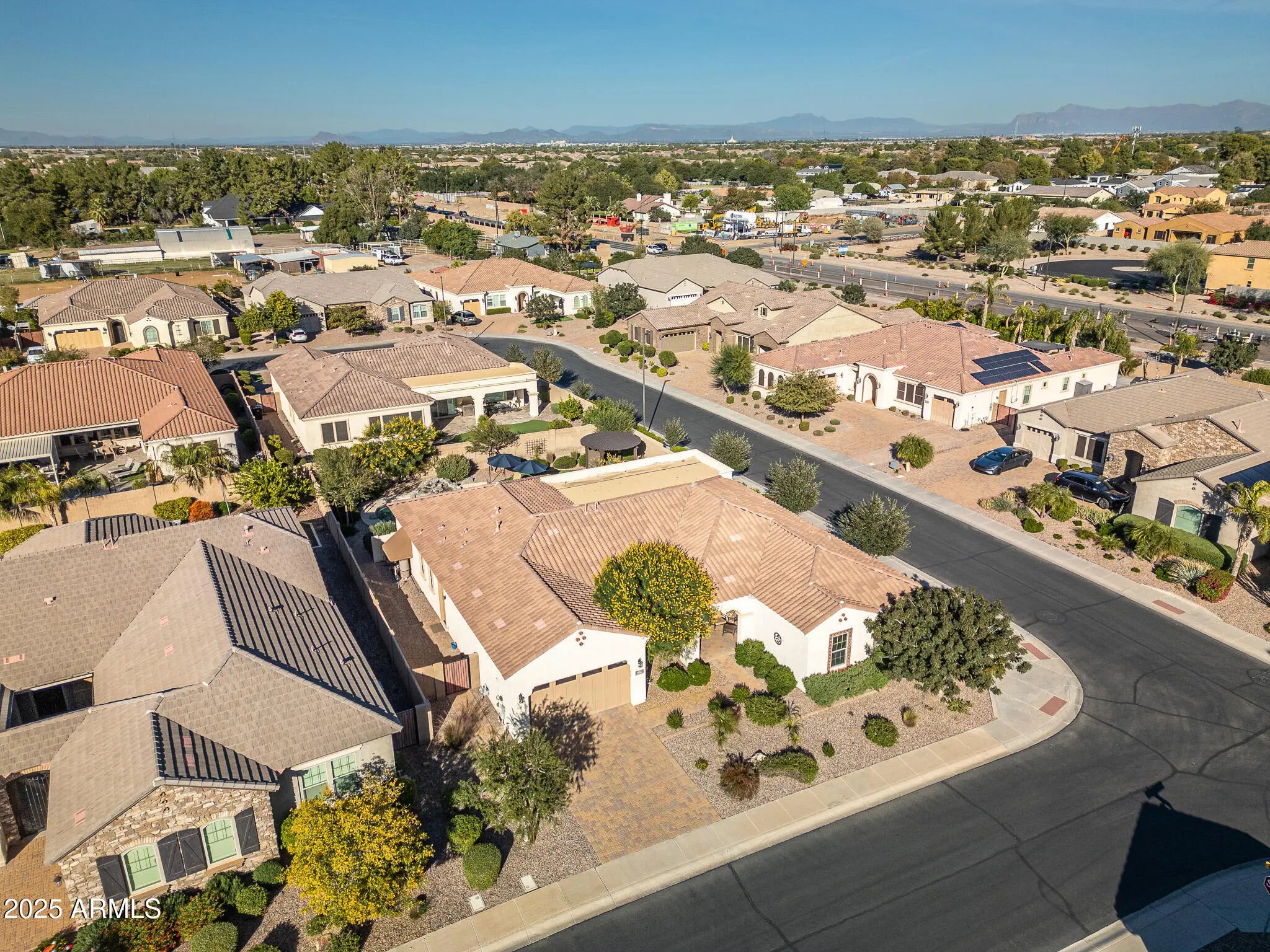 Original owners offer this model-perfect gem in an ideal Chandler location known for A+ schools and effortless convenience. This single-level luxury home sits behind the gates on a premium corner lot, designed for the way you live. The 4-bed/3.5-bath layout includes a private ensuite and a serene primary retreat. Vaulted ceilings with faux wood beams create warmth as expansive windows frame a resort-style backyard—PebbleTec pool, lush turf, pergola/ramada, and a screened-in patio perfect for Thanksgiving dinner or Sunday brunch bug-free. A chef's kitchen inspires gathering with a 36'' gas cooktop, double ovens, granite counters, SS appliances, and butler's pantry. LVP floors, 8' doors, formal dining, breakfast nook, and a flexible office/living space complete the lifestyle.