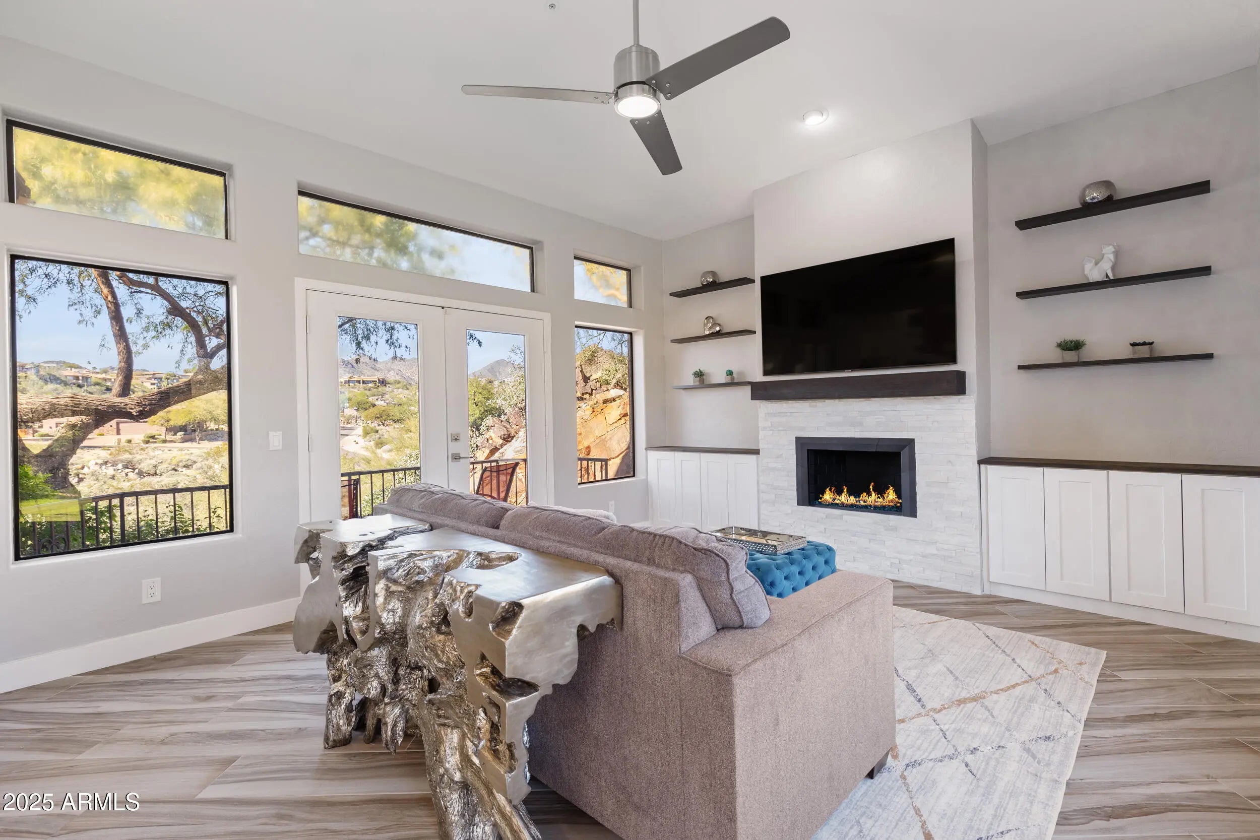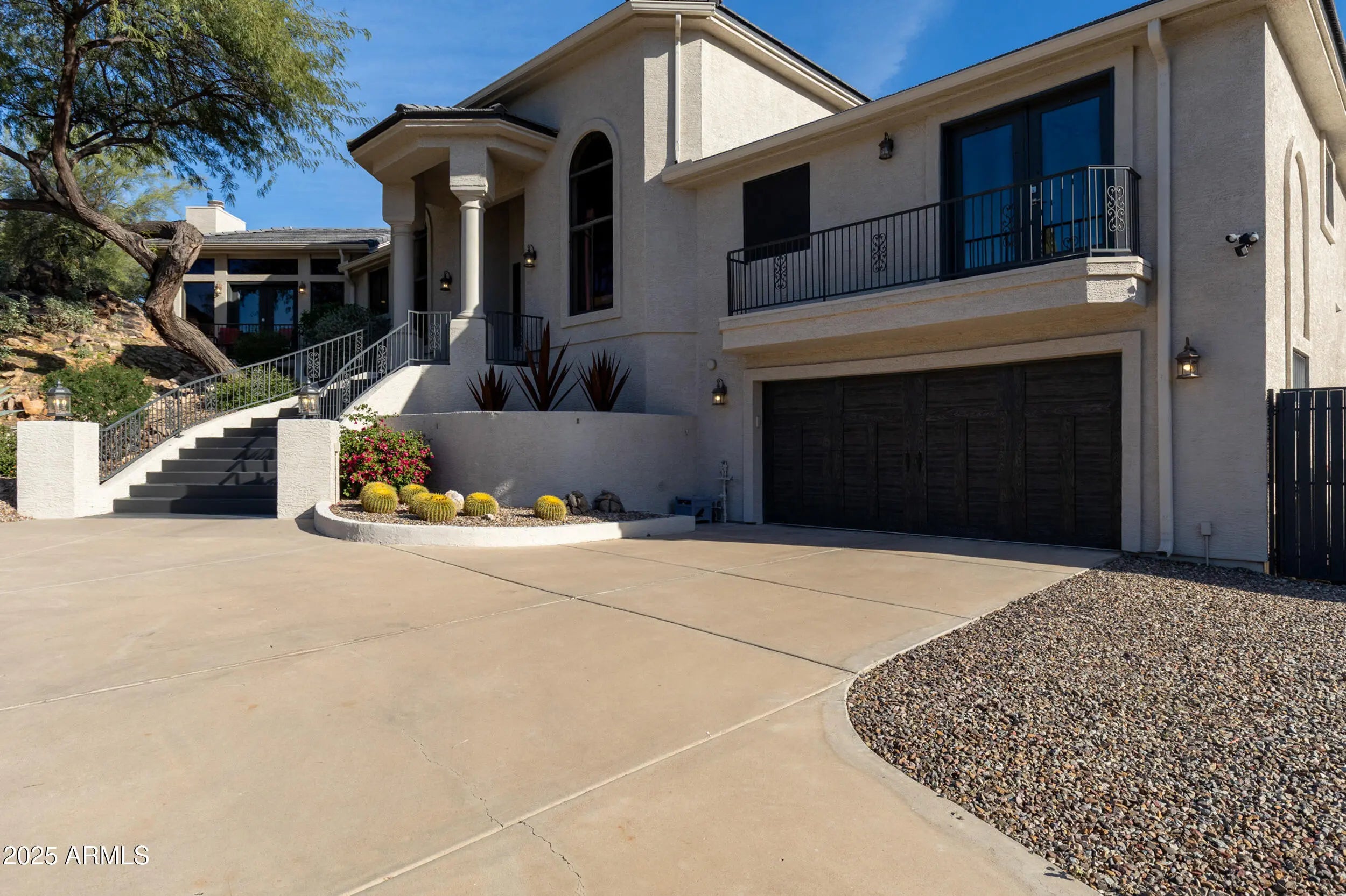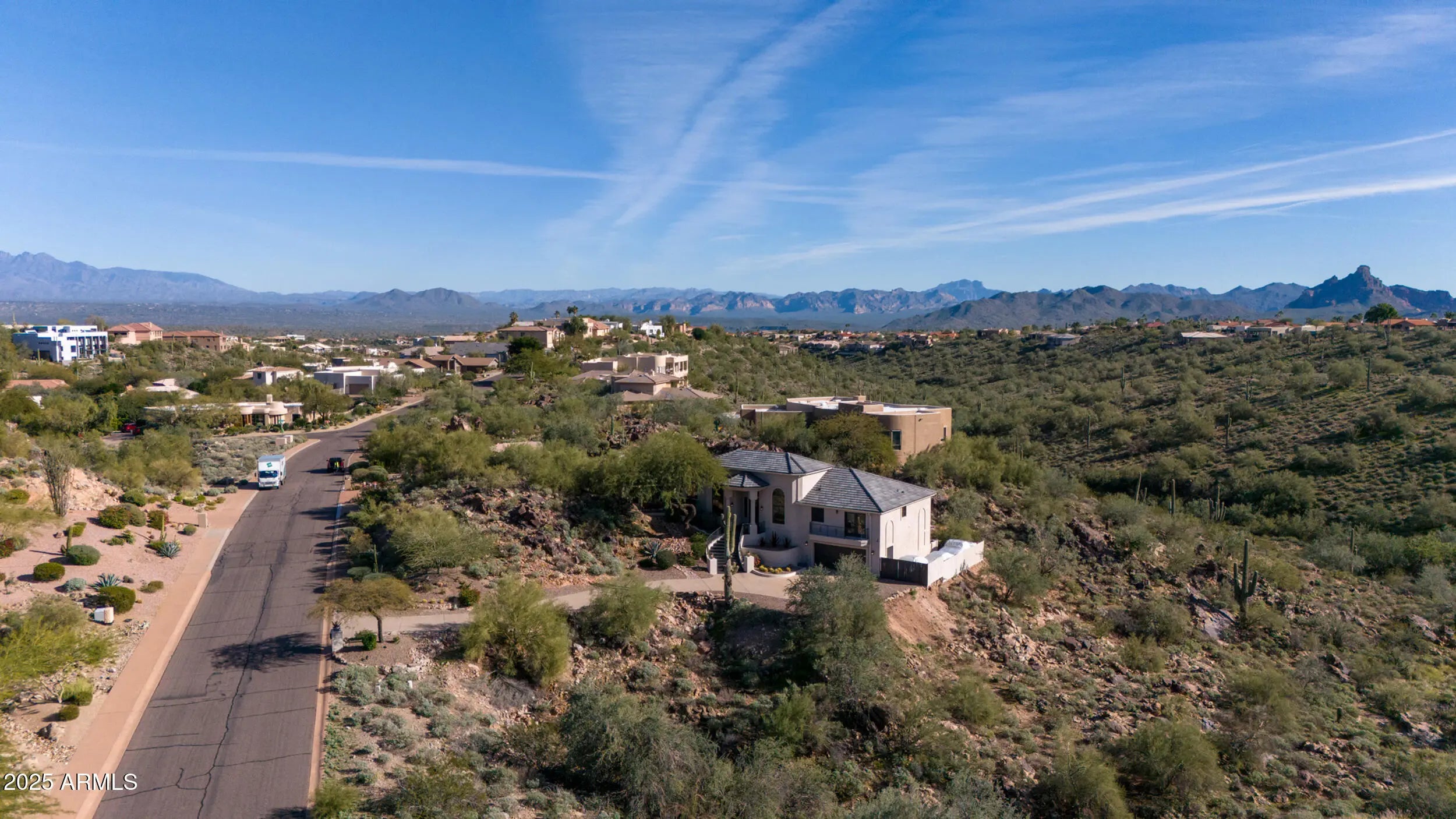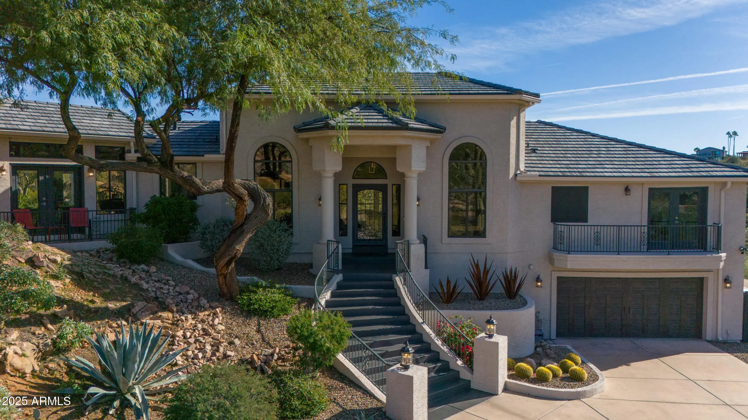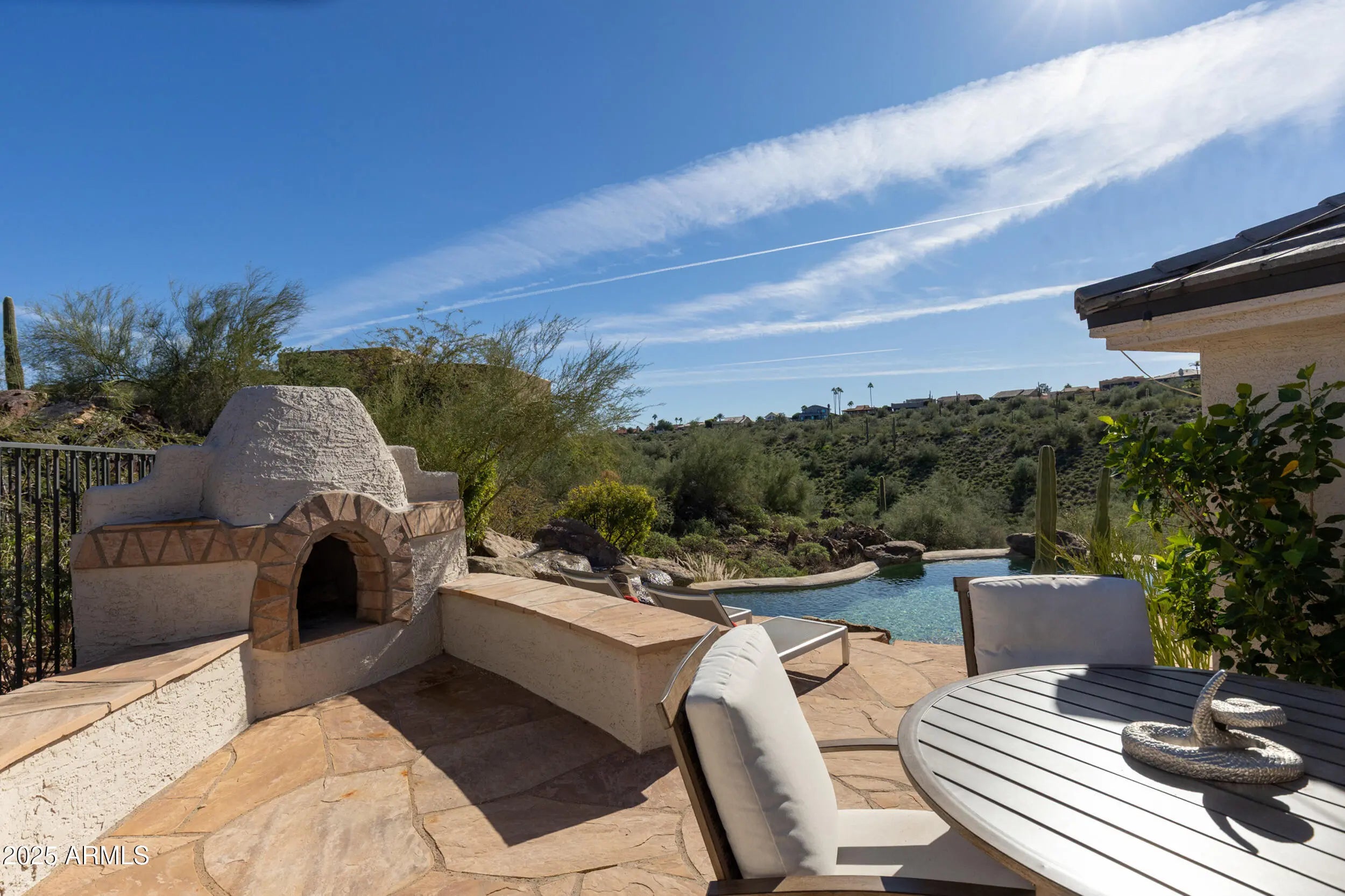 A home that feels like it was discovered, not built. Perched amid massive rock outcroppings, this one-of-a-kind home located on the prestigious street of Sunburst Drive rises naturally with the desert unfolding around it like a private sanctuary. From the moment you arrive, the setting feels cinematic: sun-warmed boulders, endless mountain silhouettes, and the kind of quiet you can feel. Step inside and the views follow you—framed in the plethora of windows are mountain views, open desert, and majestic sunsets. This fully remodeled home boasts soaring ceilings, and plenty of room to share its beauty with family and friends with 4 bedrooms and 2.5 baths along with a formal dining room, living room, eat-in kitchen, huge granite kitchen island with waterfall that seats 6, a family room with fireplace, hardwood flooring throughout (no carpet), and beautiful marble slab shower and marble counters in all the bathrooms. Choose your view from the multiple balconies and patios, watch the sunset over the McDowell Mountains, or gaze at the iconic Red Mountain out your bedroom window. The beautiful finishes are just the start, this home also has a brand new roof including new tiles, fresh paint and much more (check out the updates list in the documents tab). The acre lot gives you endless room to breathe and relax. And with this much space, you can expand the home or choose to build an additional dwelling unit, the possibilities are endless. Enjoy the rare privacy that comes from having nature as your closest neighbor, but still so close to Scottsdale. A retreat, a statement, and a piece of the desert's quiet majesty, all wrapped into one unforgettable Stoneridge property. View it today before this one of a kind home is sold.
