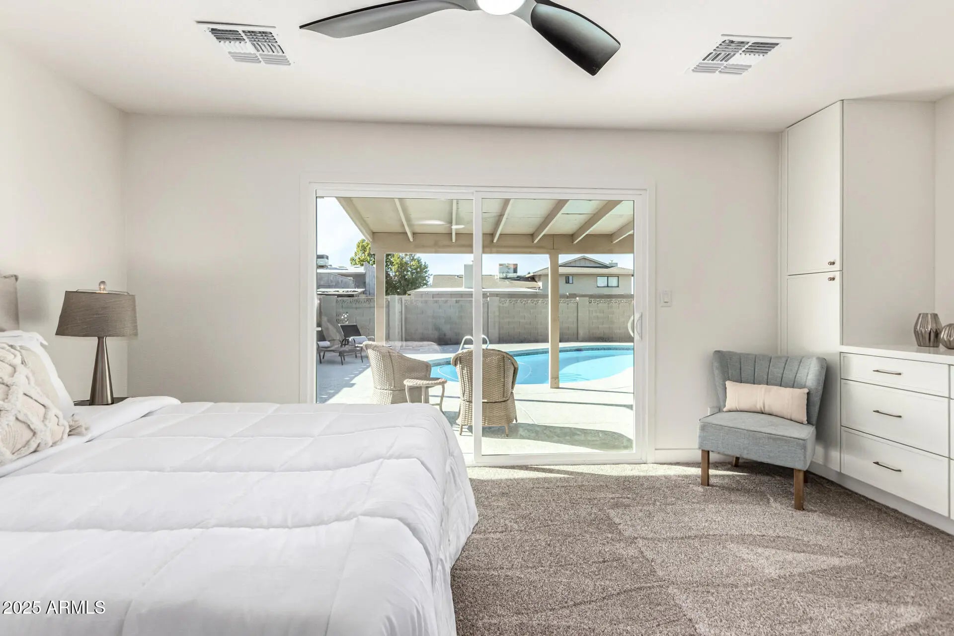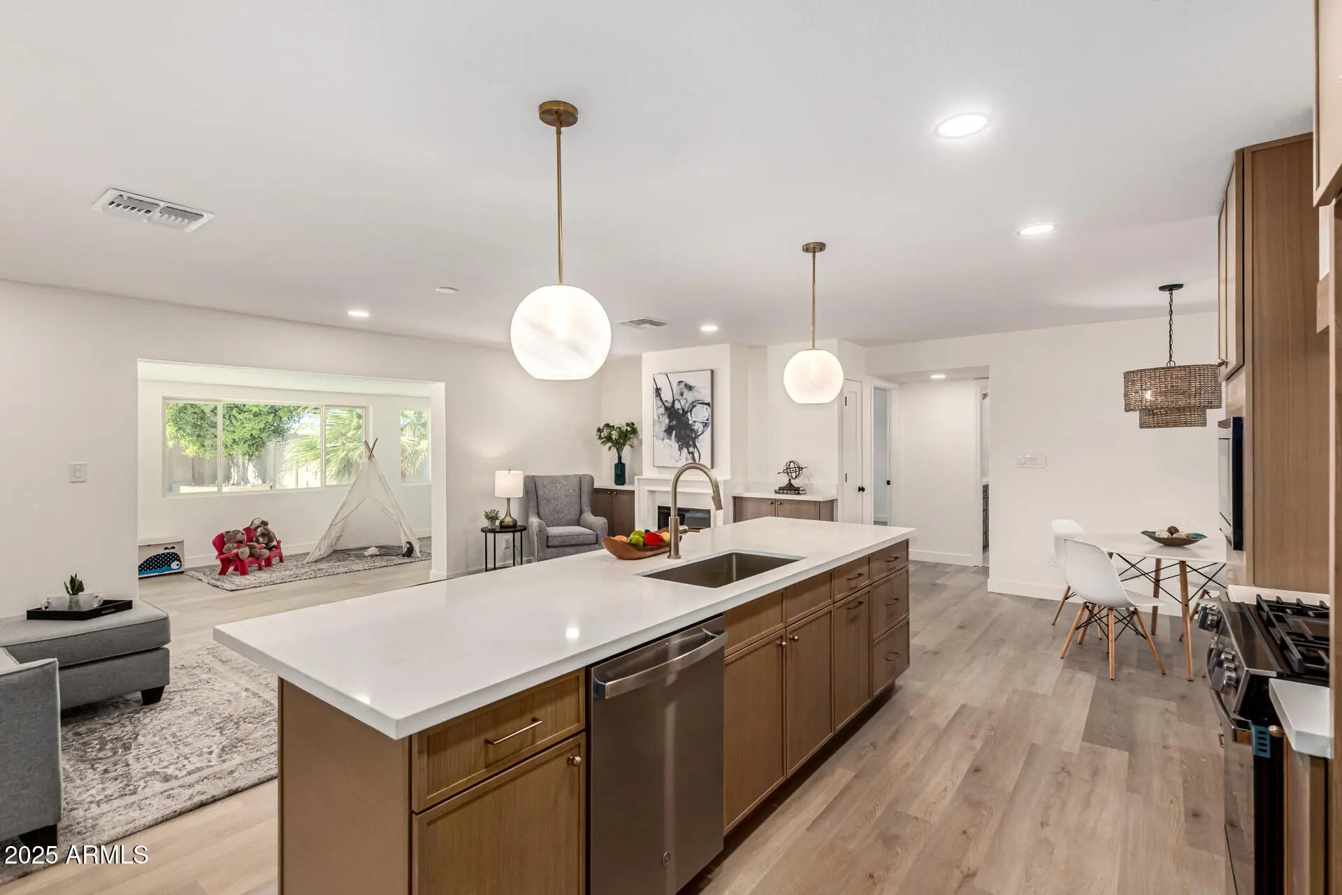 Beautifully updated single-level Tempe home offering flexible living spaces and an inviting indoor-outdoor lifestyle. The open-concept kitchen anchors the home with generous cabinetry, a large island, and seamless flow into the main living areas—ideal for both everyday living and entertaining. A spacious bonus room overlooks the backyard and pool, providing a versatile space for a playroom, home office, or secondary living area. The private primary suite features backyard and pool views, built-in cabinetry with a media niche, a walk-in closet, and a well-appointed bath. Three additional bedrooms are served by an updated hall bath. Step outside to enjoy a covered patio, sparkling pool, grassy play area, and RV parking with a 12' gate. Additional highlights include a large laundry room with built-in cabinetry and utility sink, modern finishes throughout, and a functional layout designed for today's lifestyle. Conveniently located near parks, schools, shopping, dining, and easy freeway access.