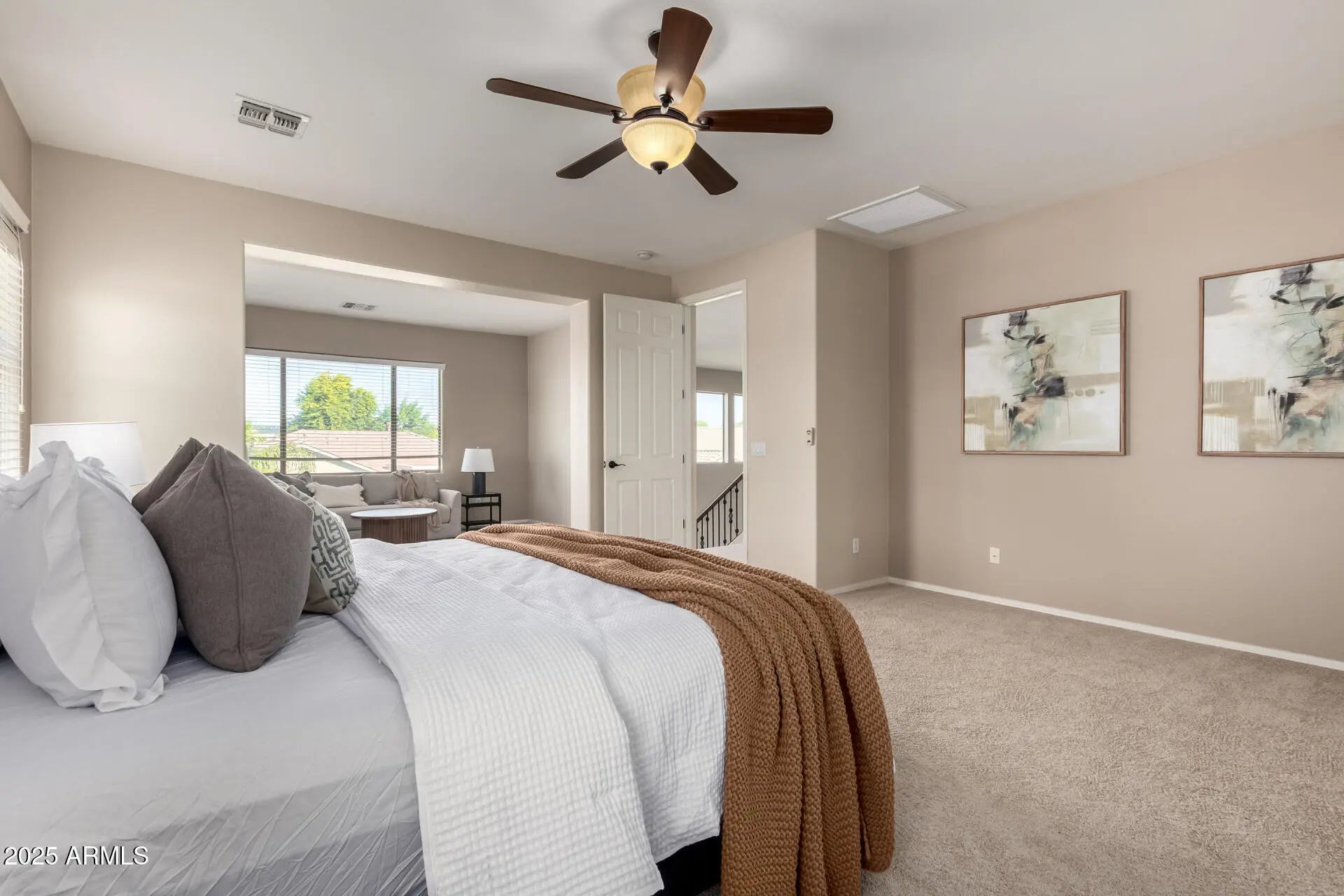 Located in a quiet cul-de-sac next to a large greenbelt in Chandler's desirable Shadow Ridge Estates, this beautifully maintained home delivers the perfect mix of space, comfort, and an unbeatable location within an A+ rated school district. Offering 4 bedrooms plus a large den/bonus room and an expansive 3,705 sq. ft. floor plan, there's plenty of room for everyone. The home welcomes you with soaring vaulted ceilings, bright formal living and dining areas, and a spacious kitchen featuring granite countertops, a tiled backsplash, stainless steel appliances, a center island, and abundant cabinetry. The kitchen opens to the warm, inviting family room with a gas fireplace and breakfast bar, ideal for everyday living and entertaining. Newer HVAC (2021), and brand-new carpet throughout make this home truly move-in ready! Upstairs, the oversized primary suite includes its own sitting room, two huge walk-in closets, and a generous ensuite with a soaking tub, step-in shower, and dual sinks. The backyard offers a covered patio, citrus trees, and large grassy area perfect for relaxing, playing, or hosting friends. All of this close to Veterans Oasis Park, shopping, dining, golf, Intel, and more!