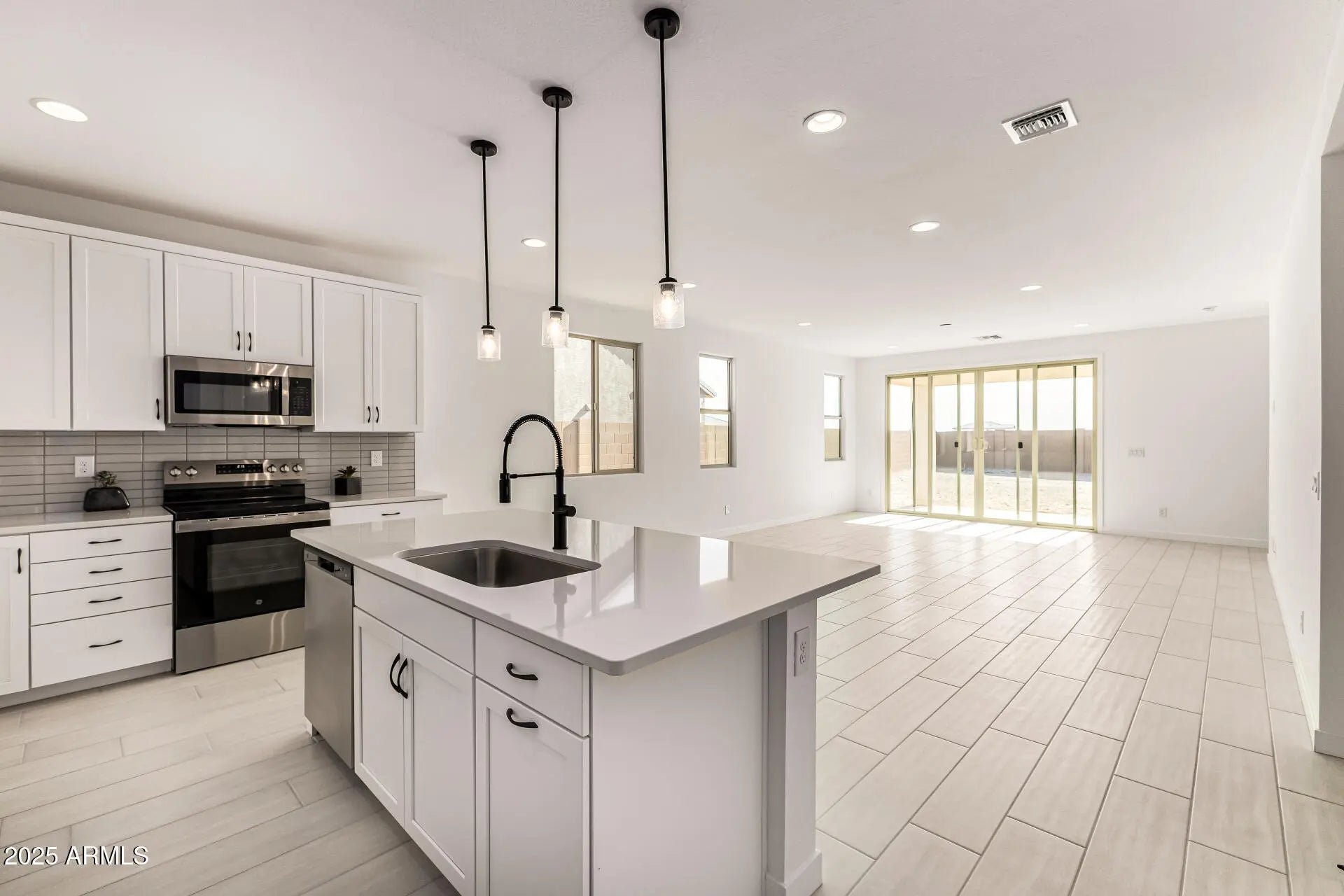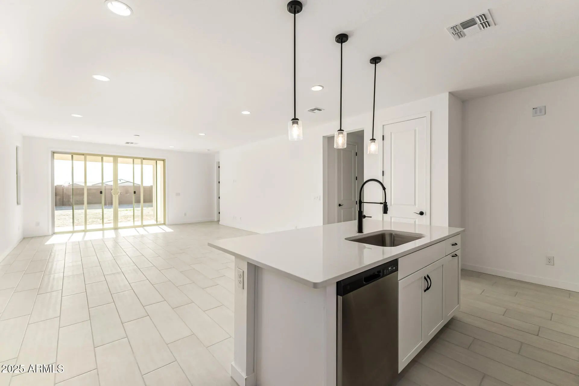 Discover the popular Alexandrite floorplan, designed for modern living with an open and spacious layout. This home features a front study, perfect for a home office or flex space. The large kitchen includes a sleek center island, 42'' upper cabinets, quartz countertops, and a stylish tiled backsplash, all connected to the main living area with 9 ft ceilings and 8 ft doors for a bright, airy feel. A large center-meet sliding door opens to the backyard, blending indoor and outdoor living. The rear primary bedroom offers privacy and comfort with an ensuite bath and a walk-in closet. With its thoughtful layout and modern finishes, the Alexandrite floorplan is ideal for residents looking for style, function, and value.