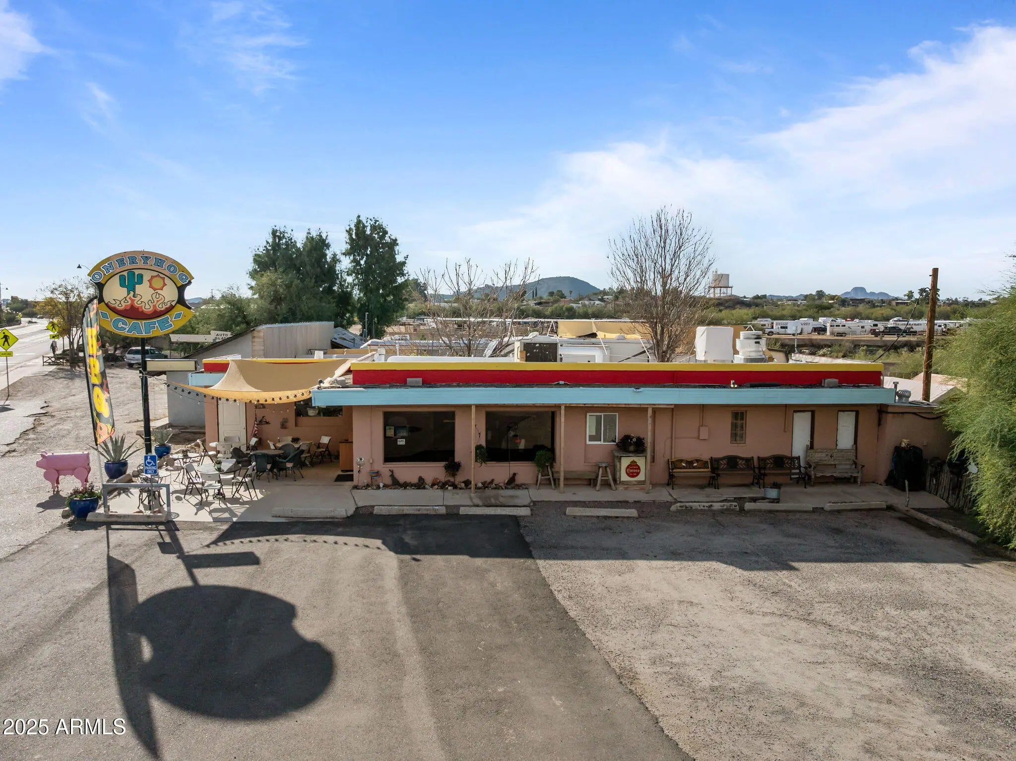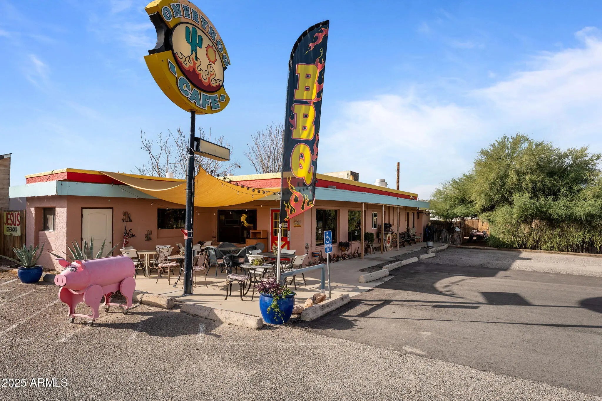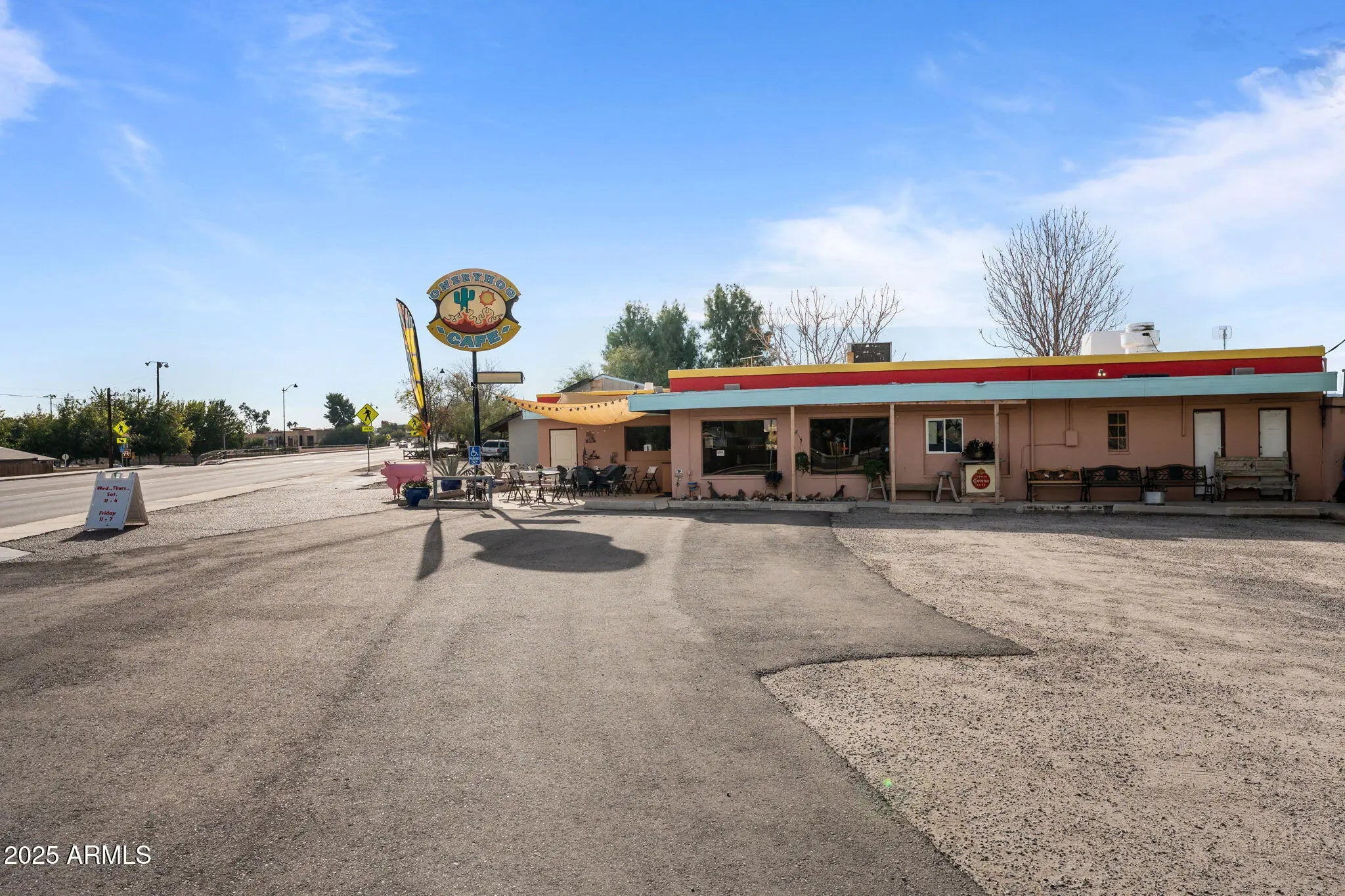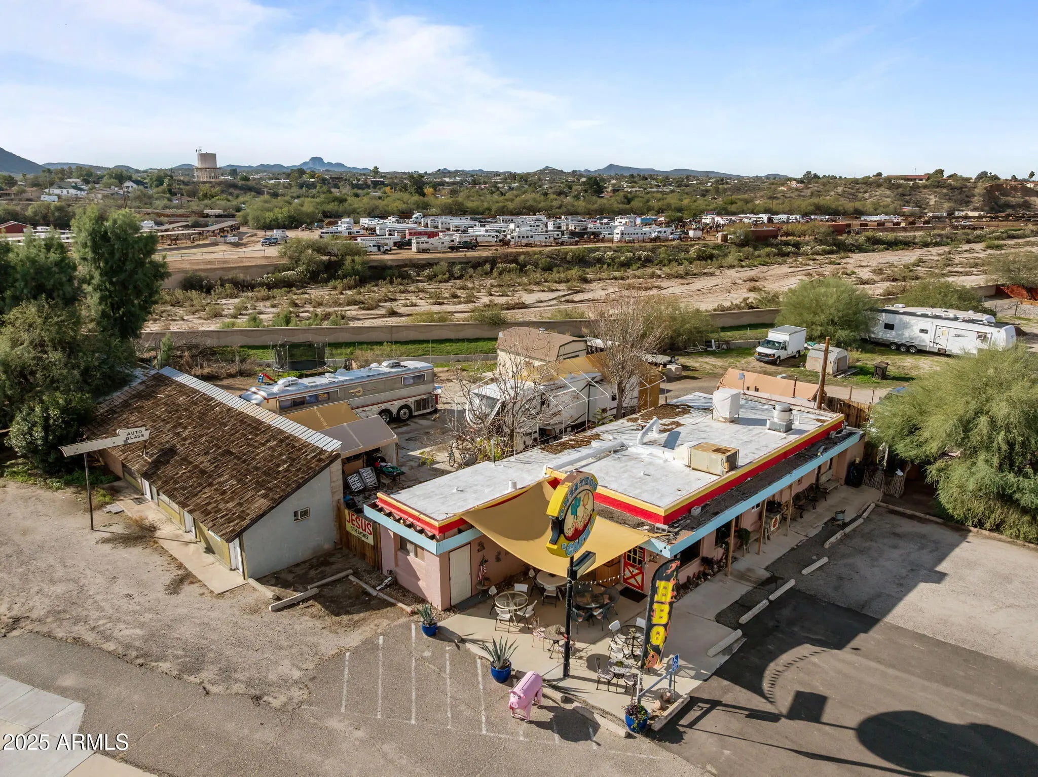 Prime Commercial Investment Opportunity in Historic Downtown Wickenburg! Discover a rare chance to own 1.5 acres of prime commercial real estate in the heart of Wickenburg, AZ— a nationally recognized hub for team roping, tourism, and year-round visitors. This high-visibility corner lot attracts both local and out-of-town traffic, ideally positioned near a major roping arena, shopping and the town park, ensuring strong daily activity and consistent foot traffic. The property features 2,178 sq ft of total building space, including a charming, fully operational restaurant currently leased and operating as a successful BBQ establishment. With its western character, mature shade trees, and spacious layout, the restaurant offers incredible long-term potential for continued rental income or future owner-operation. Above or adjacent to the commercial space sits a separate, 1-bedroom apartment, also tenant-occupiedproviding additional rental revenue and expanding the versatility of the investment. Adding to the functionality of the property are three separate office/storage spaces, ideal for management, supplies, storage, or future expansion opportunities. The large on-site parking lot comfortably accommodates customers, staff, and event traffican invaluable feature in Wickenburg's bustling downtown corridor. Whether you're an investor looking for income-producing property, a business owner seeking a flagship location, or a visionary ready to shape the next standout destination in Wickenburg, this commercial parcel offers unmatched potential and flexibility. Opportunities like this rarely hit the marketsecure your stake in Wickenburg's thriving historic district today!