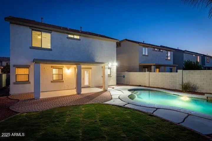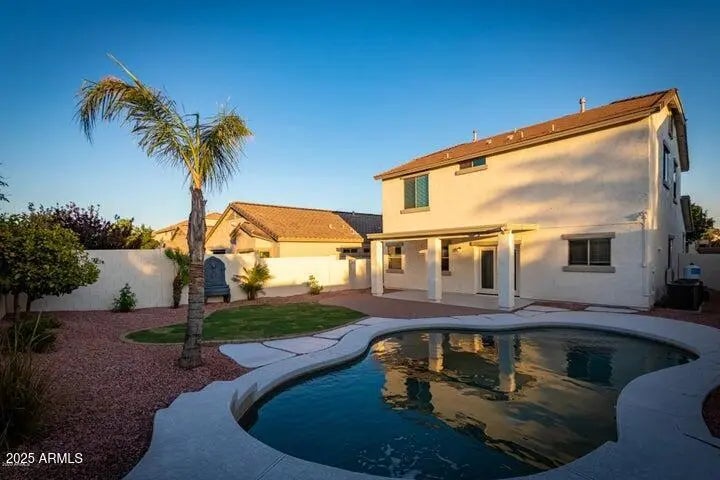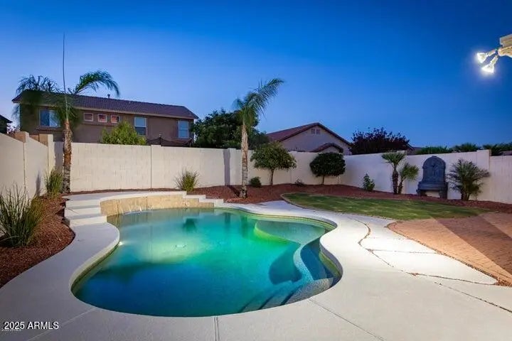 Nestled in the masterplanned community of Cortessa, this 4BD, 2.5BA is sure to please. Settle into this backyard sanctuary including a SPARKLING POOL, new pool fence, grass area, FULL COVERED PATIO, mountain views, fruit trees, paver seating area & fountain. Home includes FRESH INTERIOR & EXTERIOR PAINT, NEW CARPET & PADDING, updated landscaping & loft. The kitchen has SS appliances, an island, custom backsplash & granite countertops. Travertine floors downstairs (look for the fossils in the powder room) and NEW TILE at the kitchen. Garage storage cabinets, surround sound prewire & FRENCH DOORS leading to the patio. Walking distance to parks, Mountain View Elementary School, and SRHS. Close to 303, LAFB, Spring Training, and Prasada Shopping/Dining.