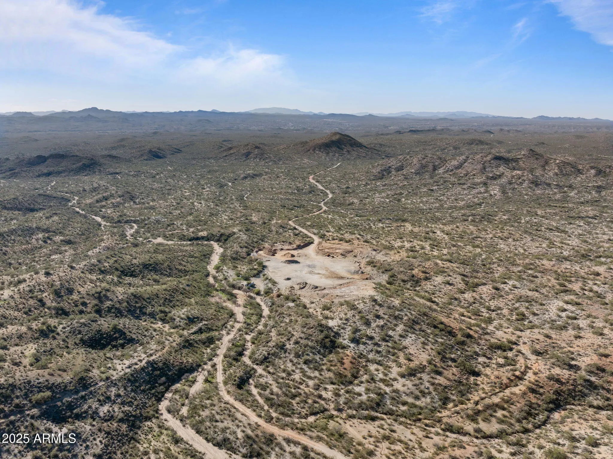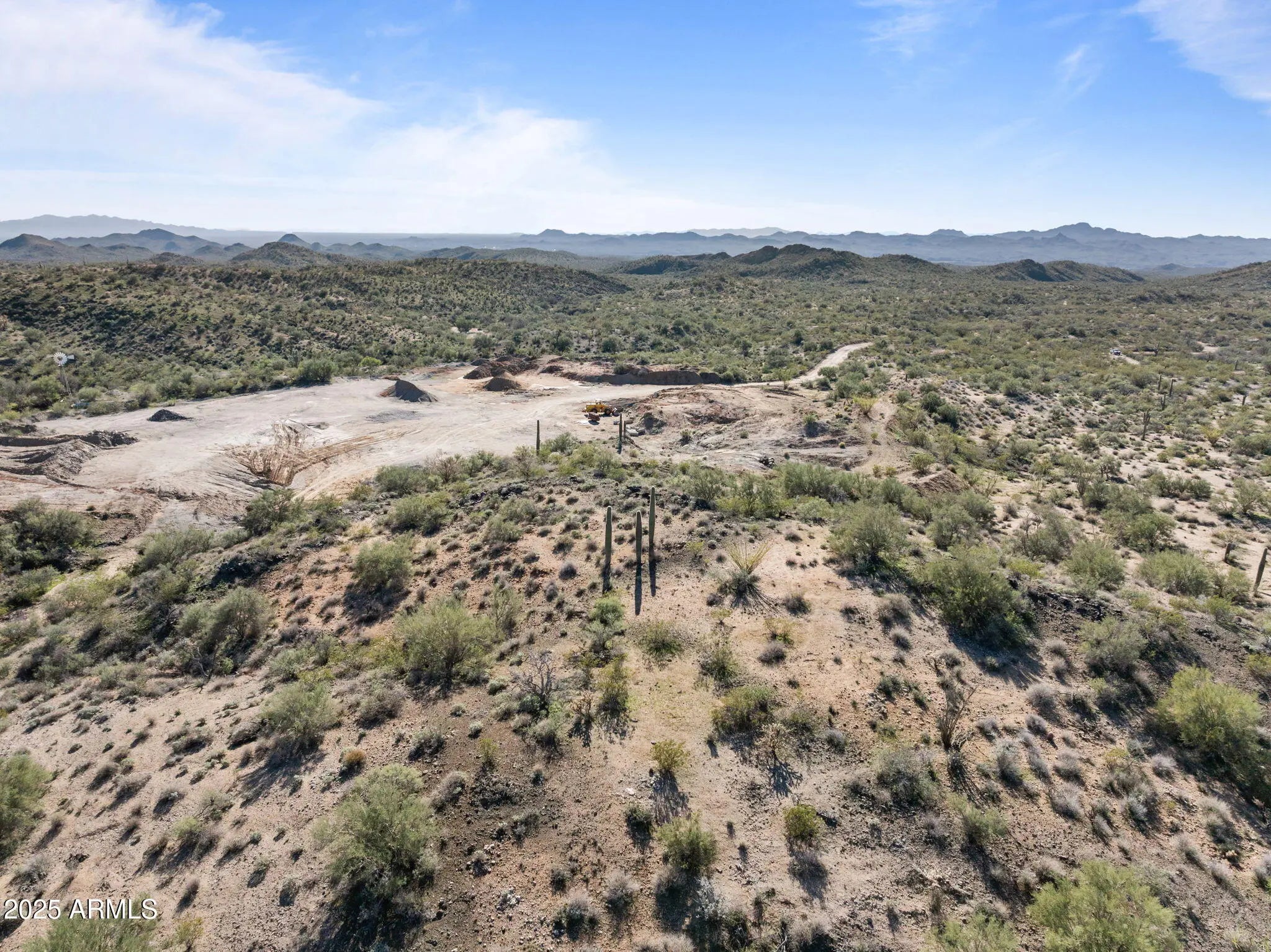 Rare opportunity to own 41.3 acres in Wickenburg, offering endless potential and unmatched privacy. An additional 20 acres just down the road is also available—ideal for establishing the main headquarters or expanding your operations. Currently used as a gravel yard, this versatile property is zoned RCU-2A, allowing for a wide range of residential, ranching, and commercial-style uses. Enjoy gorgeous mountain views, open desert surroundings, and the benefit of being surrounded by State Land for ultimate seclusion. Property includes a private well powered by a generator, and offers plenty of room to build a main home, guest house, large shop, arena, horse barns, hay barns, or storage barns. If a homesite isn't your goal, this acreage is perfect for a storage yard, ranching setup, workshop space, or other functional uses. Additional value comes with mining claims Prosperity Number Four & Prosperity Number One, located in the Blue Tank District (MS No. 4015). Whether you're looking for a private ranch, investment acreage, headquarters for your operation, or a property with mining potentialthis land provides flexibility and wide-open opportunity.