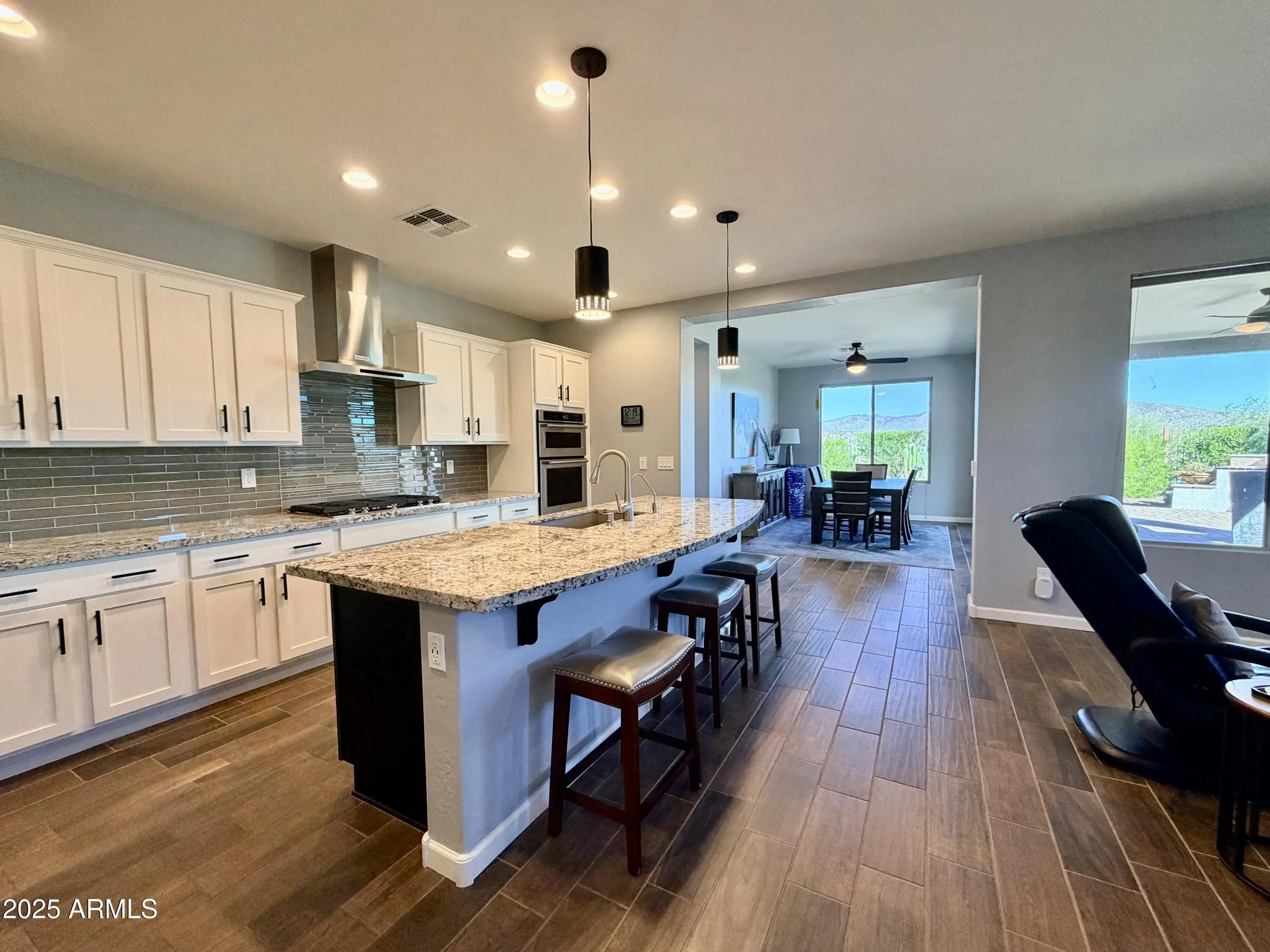 Seller Financing Available for two years with 30% Down at 4% Interest. Low Yavapai County Taxes. Stunning mountain views! Shea 3 bedroom, 2 bath home. Tile flooring & 8 ft solid doors, chef's kitchen w/ SS Kitchen Aid appliances, gas 5-burner cooktop plus beverage fridge, granite countertops & two-tone cabinets w/pull-outs. The Living Room is enhanced w/custom built cabinets & an electric fireplace while the dining room opens to the patio w/stacking slider. Bathrooms include quartz countertops & tile showers w/glass enclosures. Main bath offers dual vanities & private water closet. Extended paver patio w/built-in BBQ, raised gardens, beautifully landscaped, completely fenced, private backyard. Mini-Split in 2 car garage + golf cart garage w/ storage. Partially furnished + 4 TVs stay.