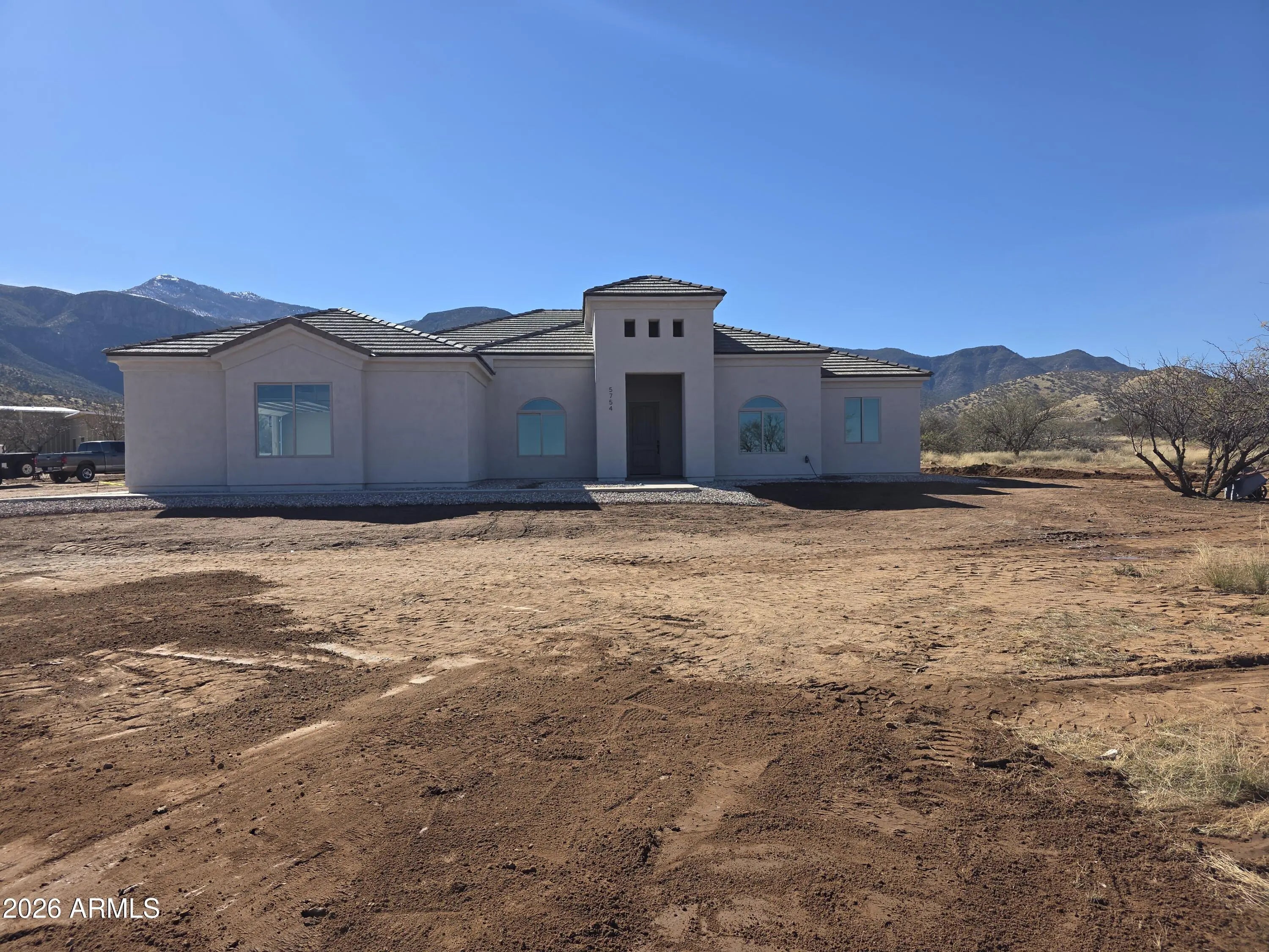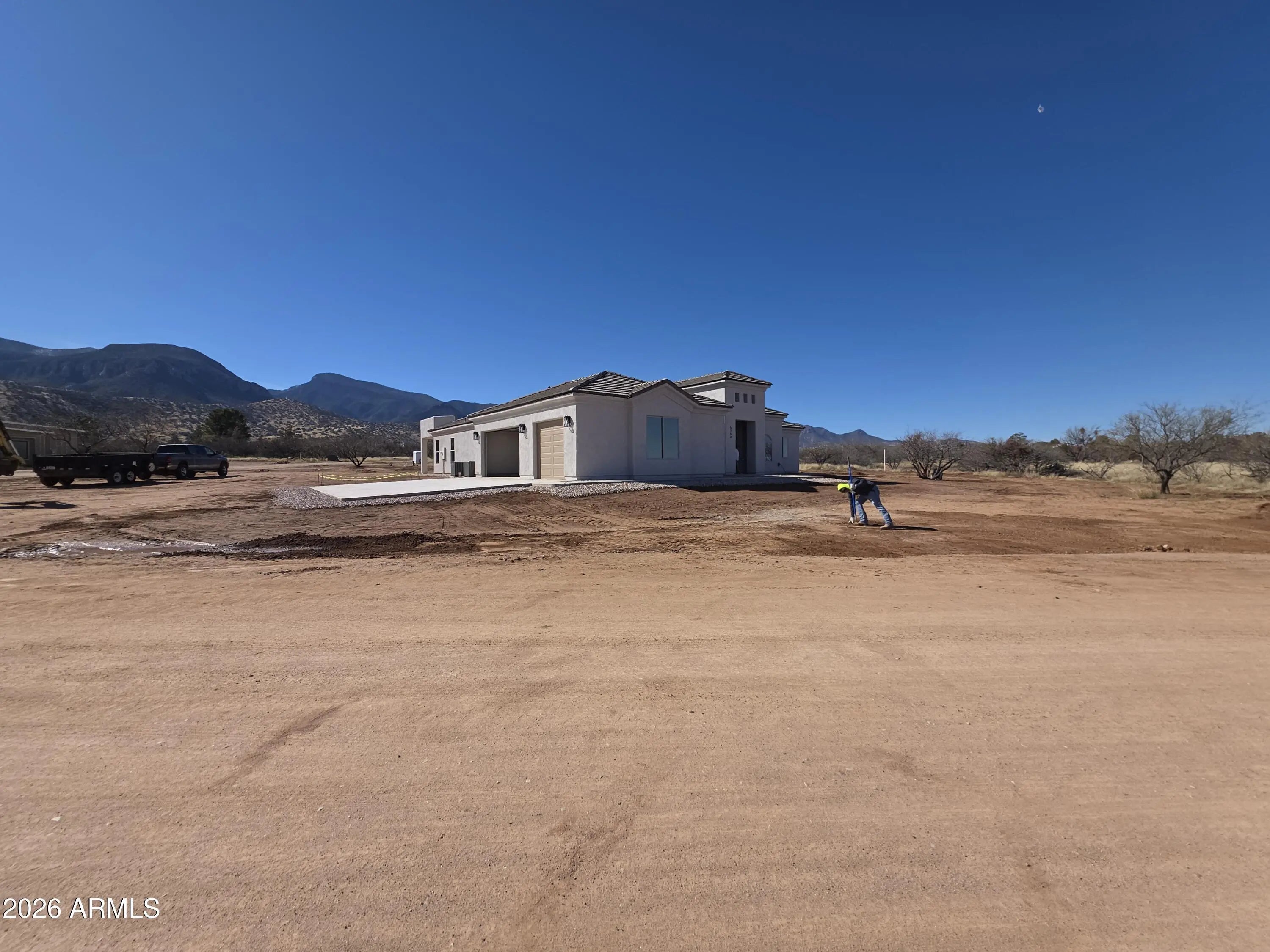 This New Construction Home, right off of Ramsey Canyon Rd, sits on a 1.18 Acre Corner Lot and has Amazing Mountain Views. At 3,131 sq ft this Open Floor Plan has an Abundance of Space, Including a Formal Living Room, a Formal Dining Room, an Office, 4 Bedrooms, 3 Bathrooms, an Extended Garage and a Covered Back Patio. The Matching Wood Look Tile Flooring Throughout and Beautiful Stained Knotty Alder Custom Wood Cabinetry Elevate the Attractiveness of this Homes Interior.
