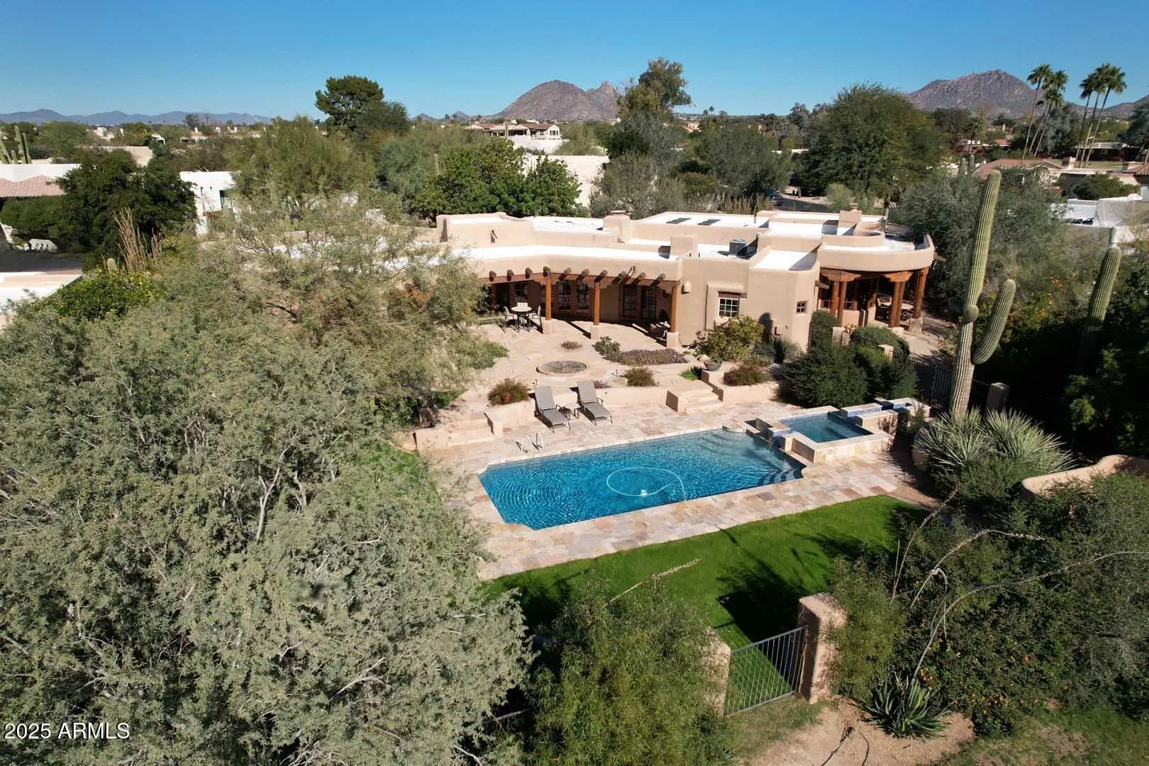Experience the magic of your own private, enchanting retreat located in the coveted community of Pinnacle Peak Country Club Estates!! Charm and character abound in this tranquil sanctuary from the moment you drive up the circular driveway and enter the private gated courtyard to experience the gorgeous southwest architectural details and your beautiful, oversized backyard oasis overlooking the 13th fairway with a much desired southern exposure. The living room with Viga and Latilla ceiling has a fireplace and opens to the dining room, while the gourmet kitchen offers a Wolf range, island, granite countertops, walk-in pantry and breakfast nook. In addition there is a large family room with sit down wet bar which opens to its own patio, a powder room and separate office space. Split floor plan has Primary suite with access to the backyard, two closets and bathroom with double vanity and walk-in shower, two guest bedrooms with shared ensuite bathrooms and an additional hall bath. The spacious backyard, perfect for either entertaining or enjoying quiet time, has a covered patio, fireplace, pool and spa. all located in an incredible Pinnacle Peak location close to shopping, dining hiking, golf and the loop 101.