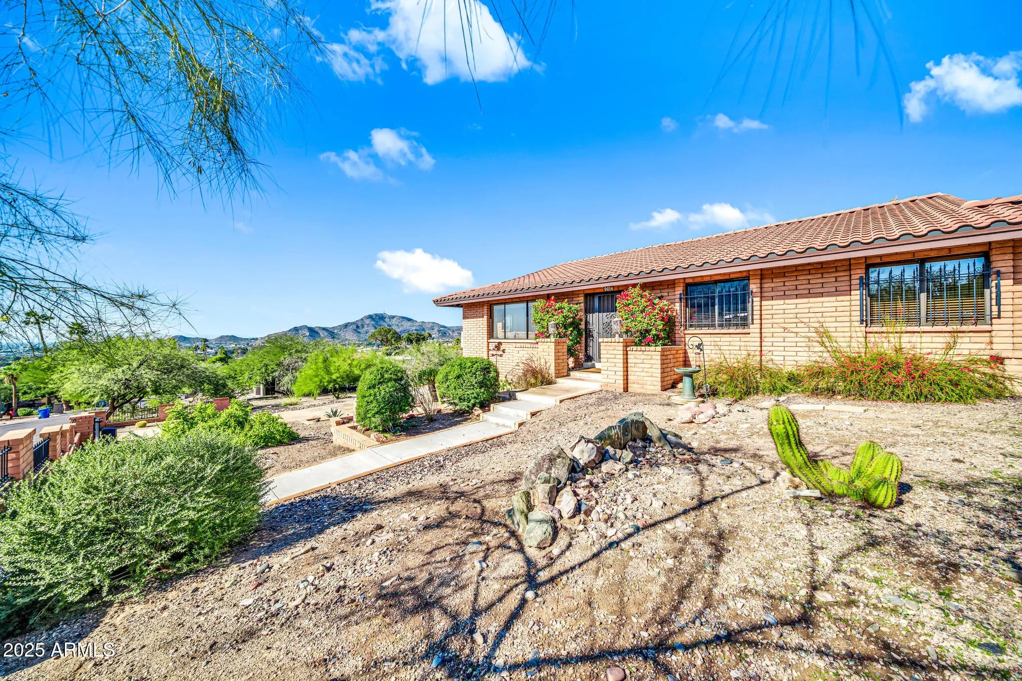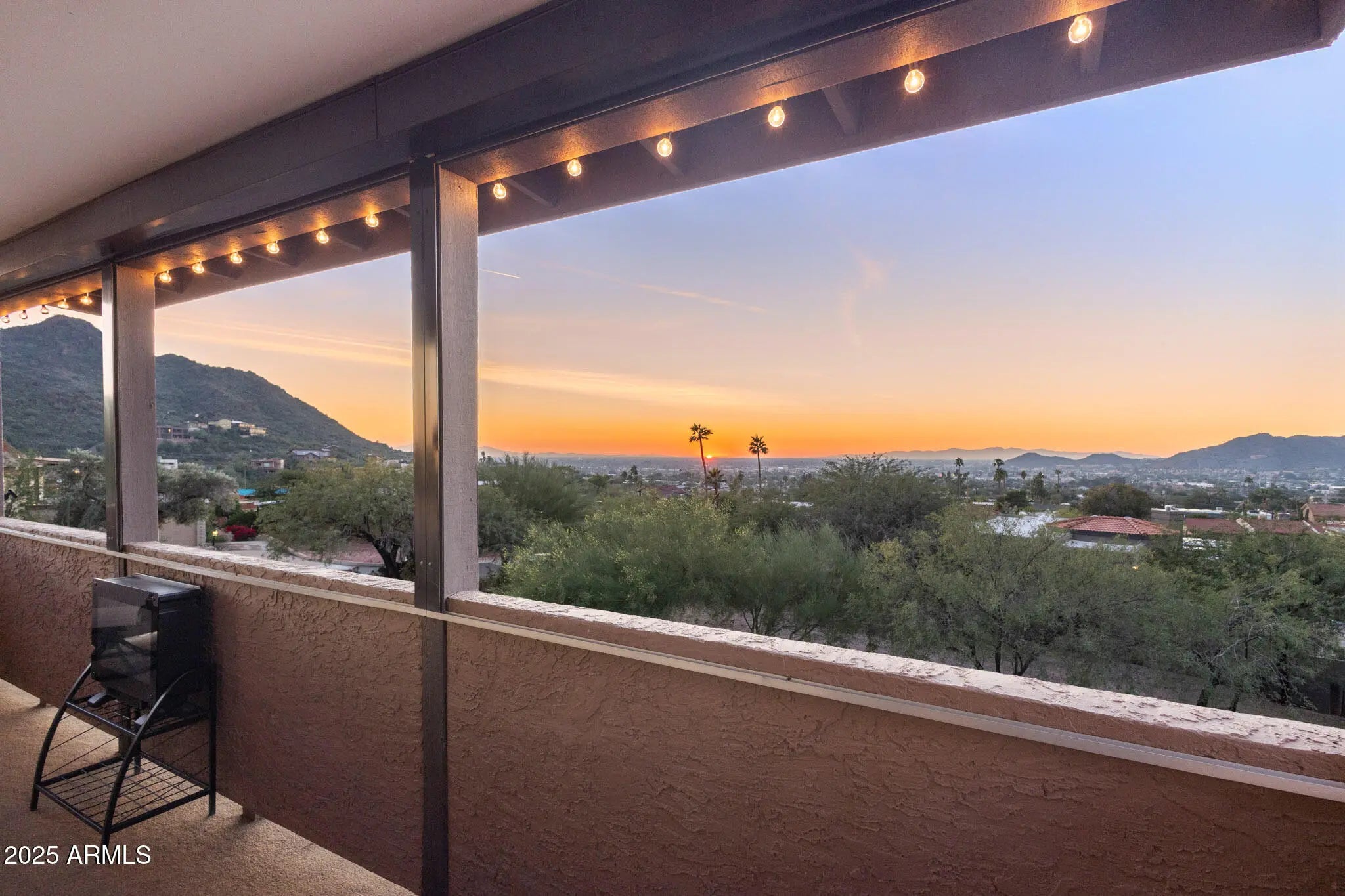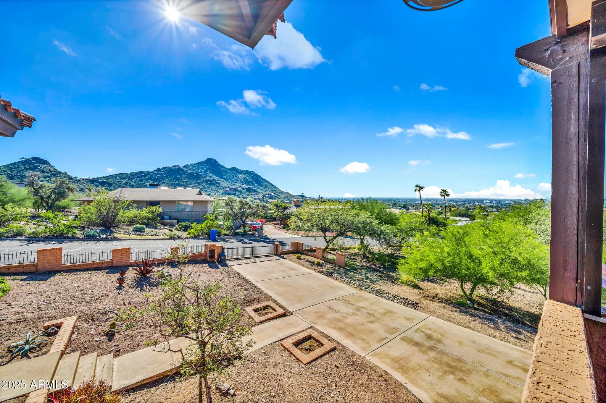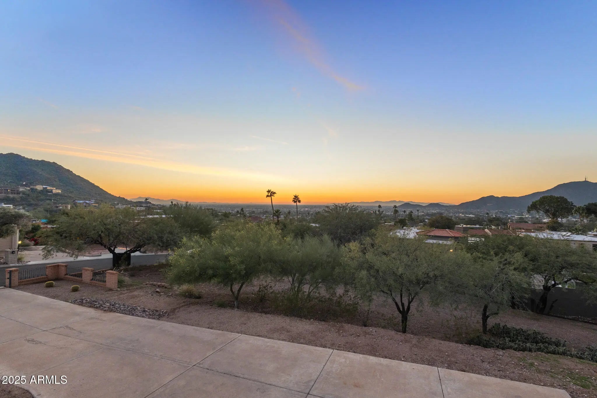 Spectacular panoramic mountain and city light views surround this custom hillside home in a quiet North Phoenix enclave with no HOA. Sitting on an oversized and elevated lot with mature desert landscaping, this property offers rare privacy and unobstructed scenery in every direction. The elevated setting creates a quiet, park-like setting never to be obstructed as the land below is yours as well. The kitchen is the true centerpiece of the home. The picture window spans the entire wall and creates a one-of-a-kind cooking and dining experience with uninterrupted city views. The layout offers extensive counter space, abundant cabinetry, and a wide island that functions as both a workspace and a gathering place. The custom quartz adds depth and character with rich veining and warm tones that complement the wood cabinetry. The kitchen flows into both the dining area and the living room, making it ideal for everyday use and for entertaining. Large windows capture the dramatic views from the living room, filling the home with natural light. The luxurious primary bedroom is connected to a private bath, a large walk-in closet, and direct access to an outdoor space that overlooks the surrounding mountains. The en-suite bathroom includes upscale elements like dual vanities, bidet, and a custom dual shower. The private patio provides a personal outdoor space directly connected to the bedroom thru sliding glass doors that span the entire wall, ideal for morning yoga or evening relaxation. The garage has a level 2 EV charger and a storage area with enough space to be used as a workshop. This is an exceptional opportunity to own a true view property with timeless character. Perfect for a buyer seeking privacy and some of the best mountain scenery in North Phoenix. Just minutes from hiking trails, dining, and freeway access. 2015 roof replacement 2017 AC replacement